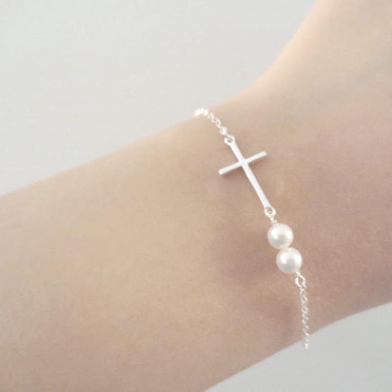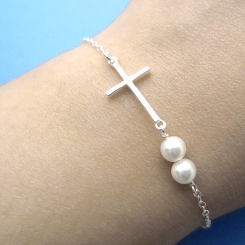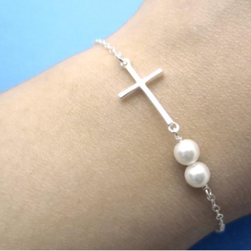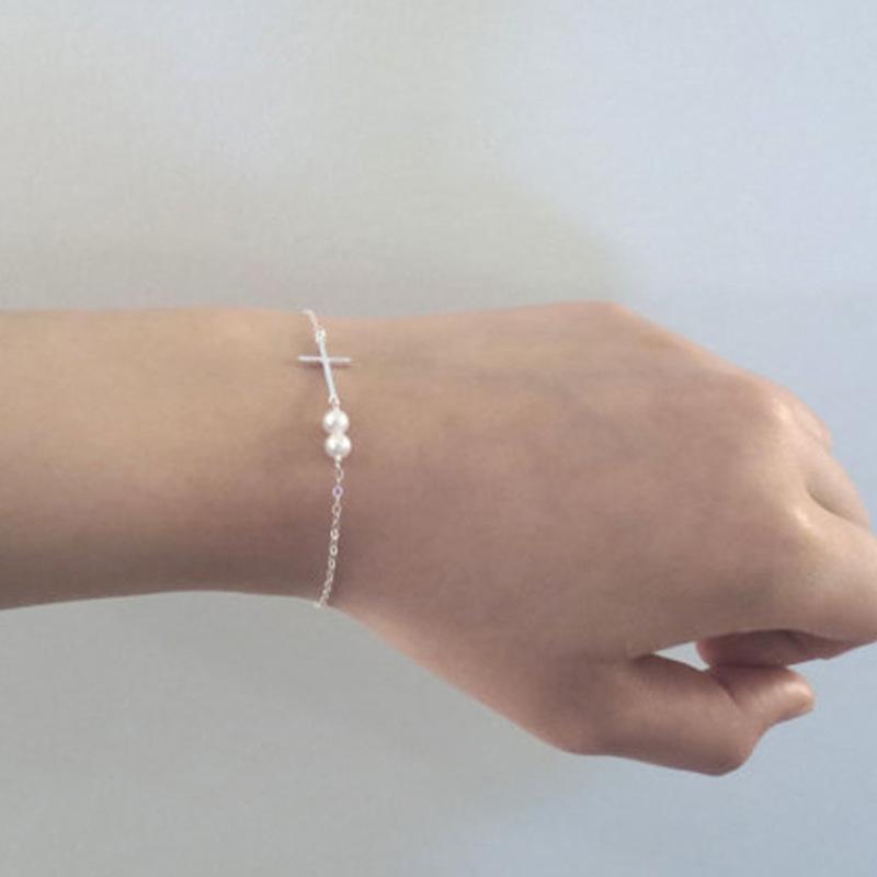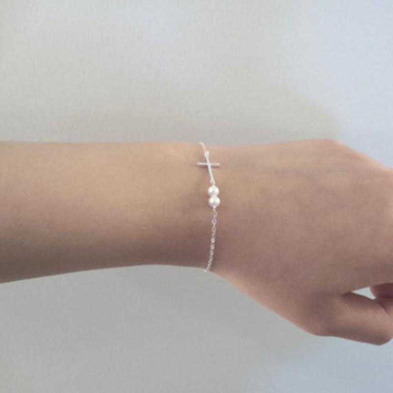 Joyería de moda para comercio exterior europea y americana, pulsera de temperamento elegante para mujer, simple pulsera de cuentas de perlas con cruz