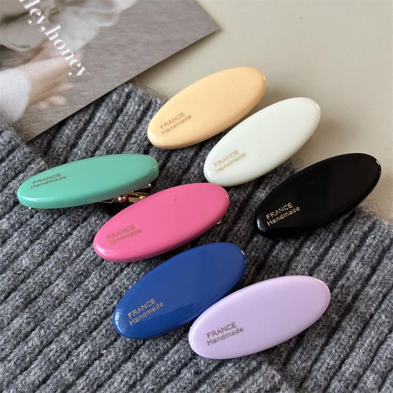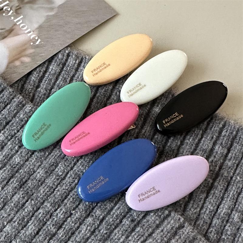 Pinza Ovalada Etiqueta Dorada Flequillo Pequeño Geométrico Simple Color Sólido Pinza Pequeña de Pico de Pato Clip Lateral Pasador Accesorios para el Cabello Tocado