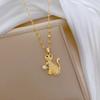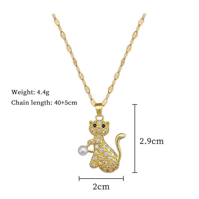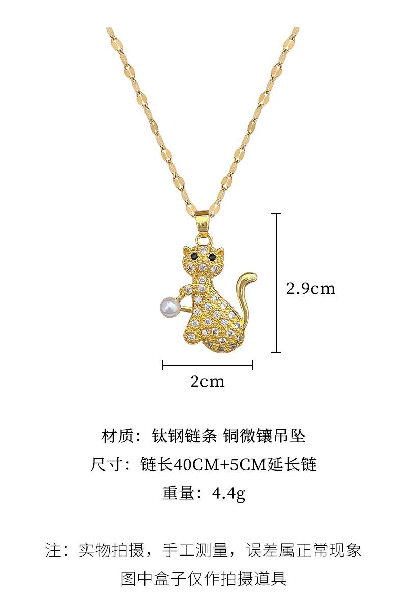 [Acero de titanio] Collar de diamantes elegante y lujoso con diseño de gato perlado, cadena de clavícula para mujer, cadena de acero de titanio.