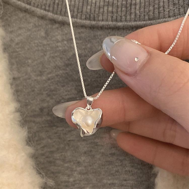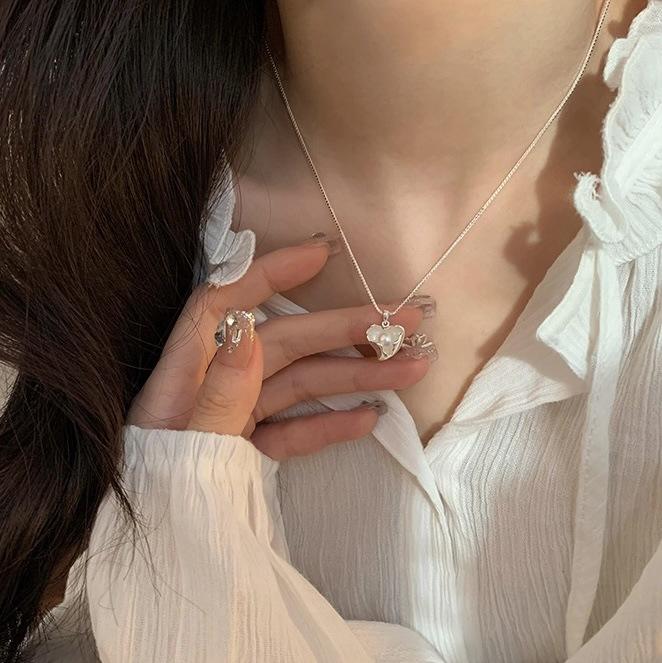 Collar con colgante de perla de amor de diseño de nicho para mujer, primavera y verano 2024, nuevo estilo coreano de alta gama, cadena de clavícula.