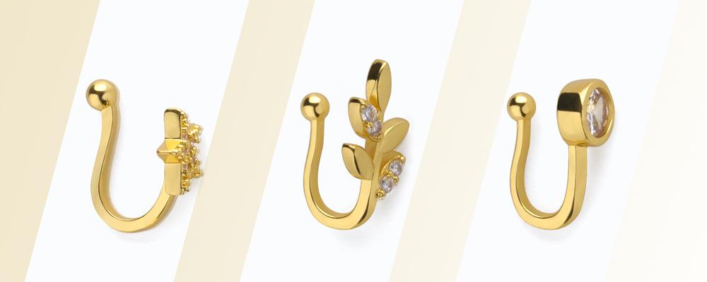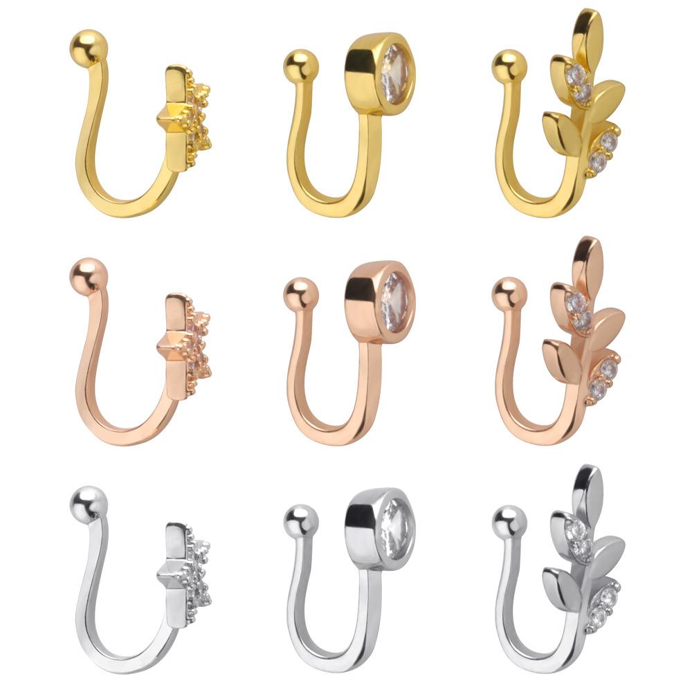 Nombre: Piercing de nariz en forma de U de diamante y clip para la nariz