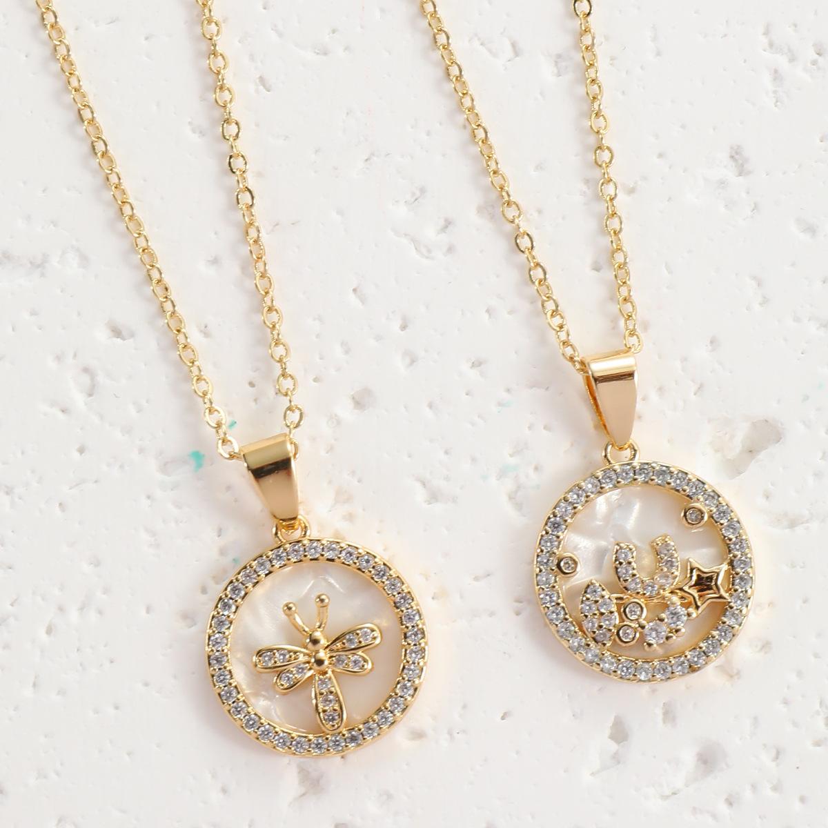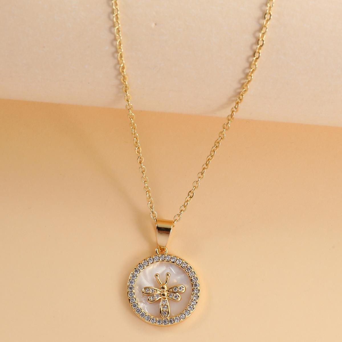 Collar de abeja de concha simple europeo y americano, colgante de estrella del Día de San Valentín para hombres y mujeres, joyería viva de oro real chapada en cobre en stock