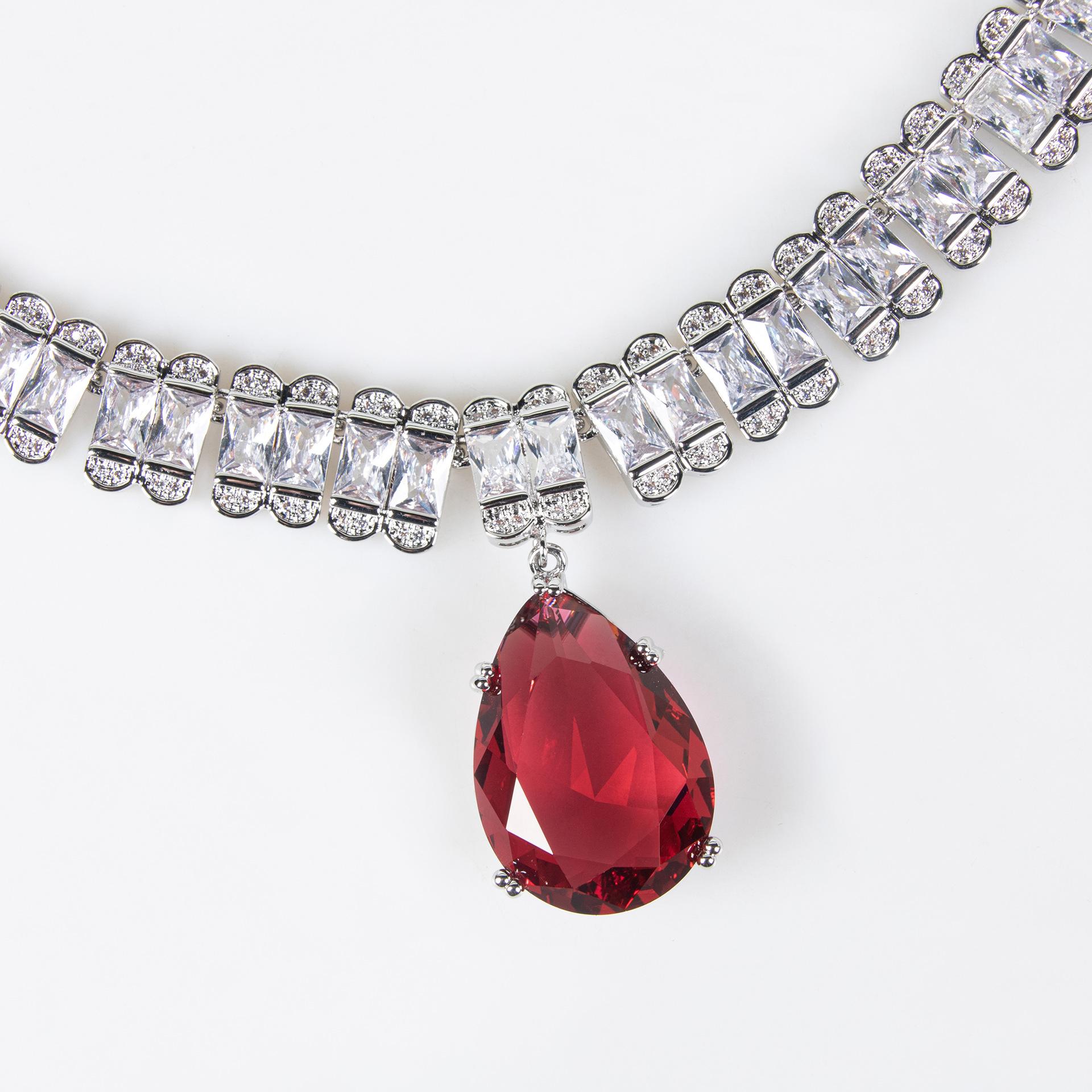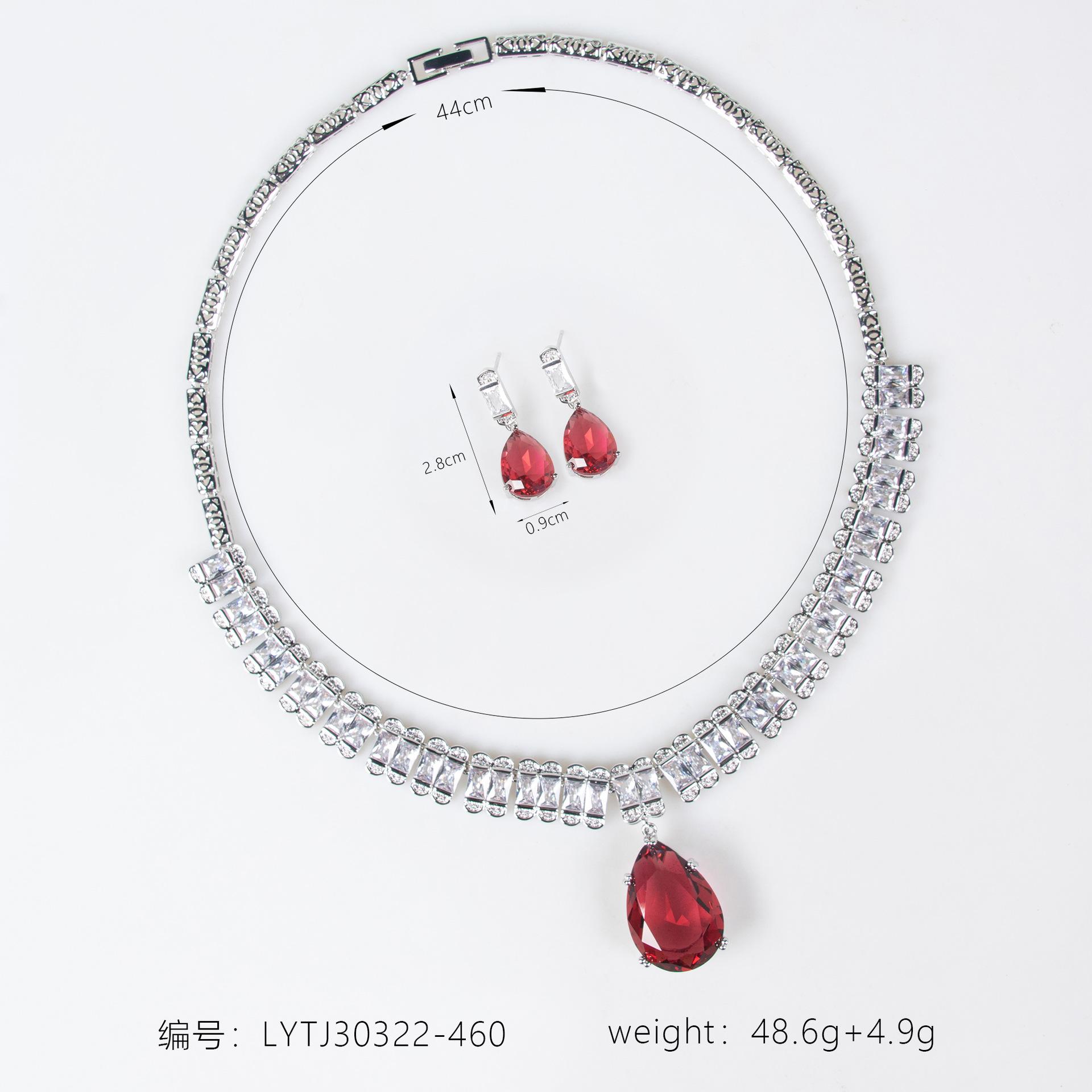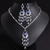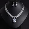 Collar de circón con gotas de agua de moda transfronteriza europea y americana, pendientes de lujo ligeros de verano de alta gama, pendientes de aguja de plata de alta gama, traje