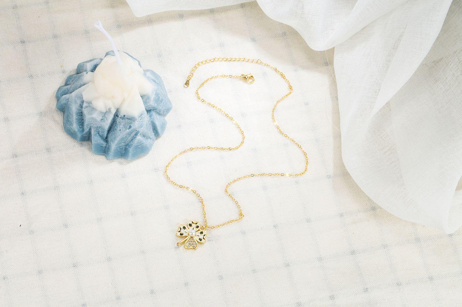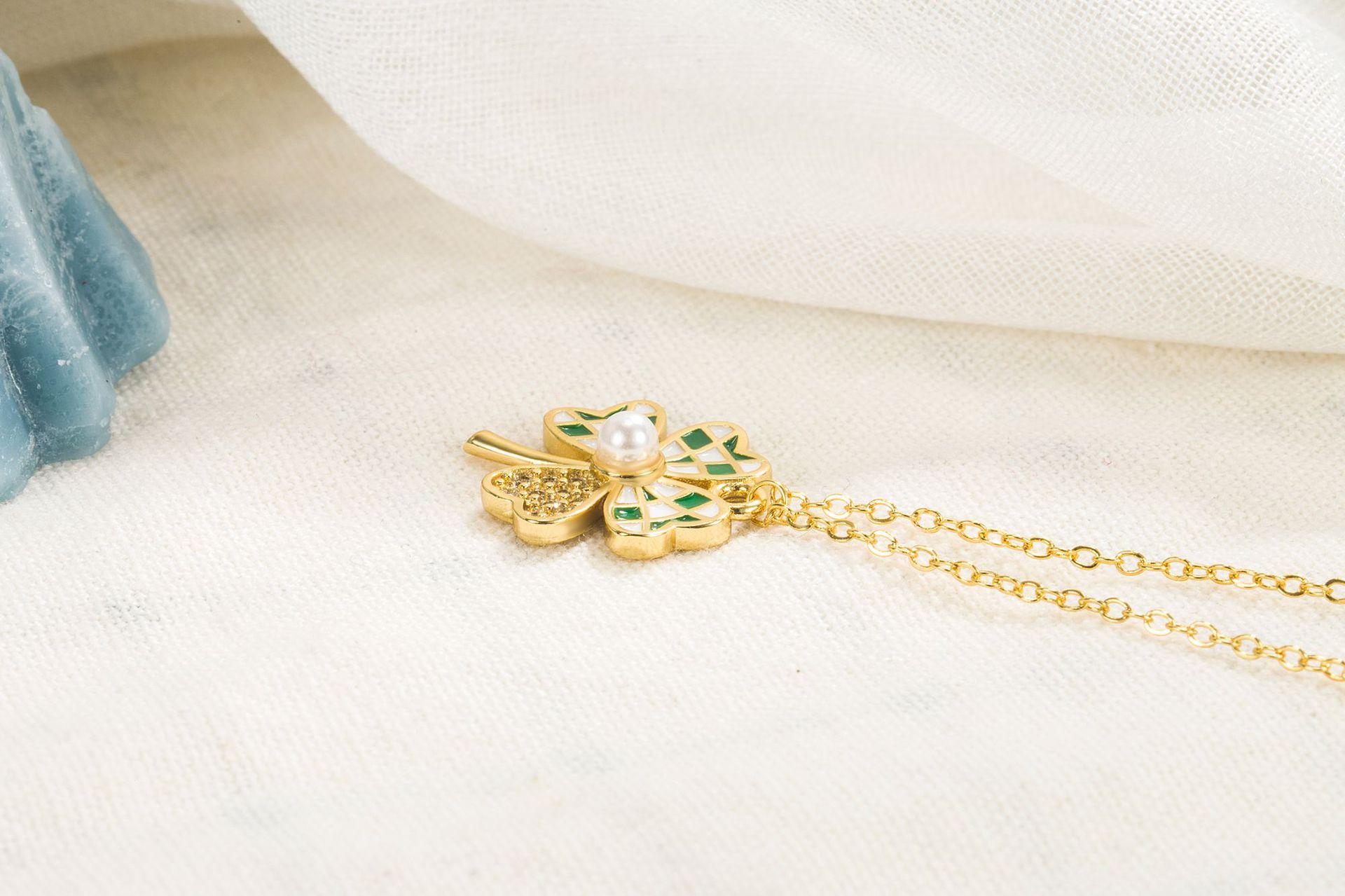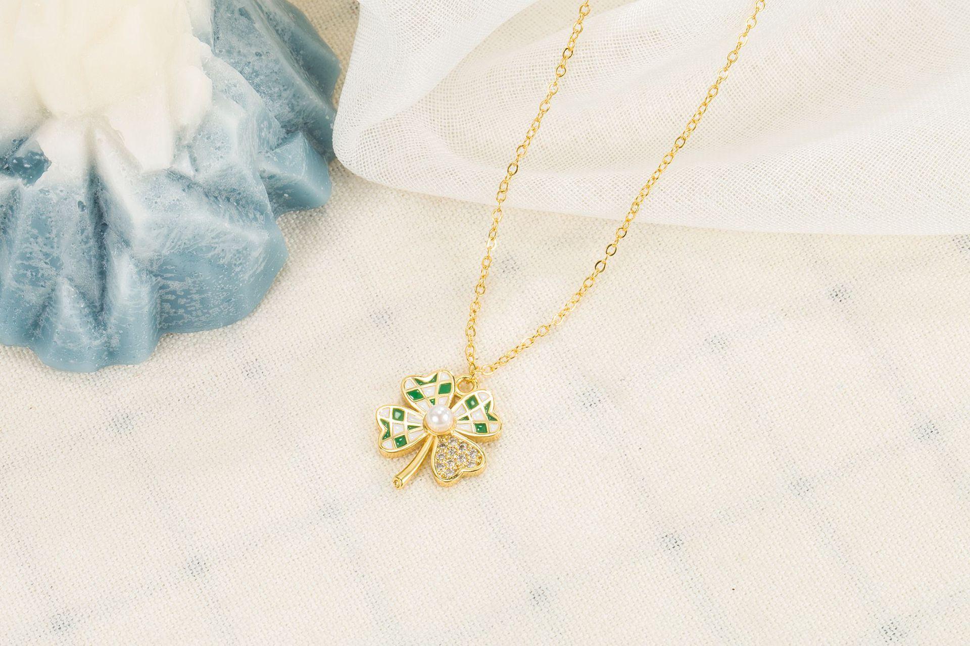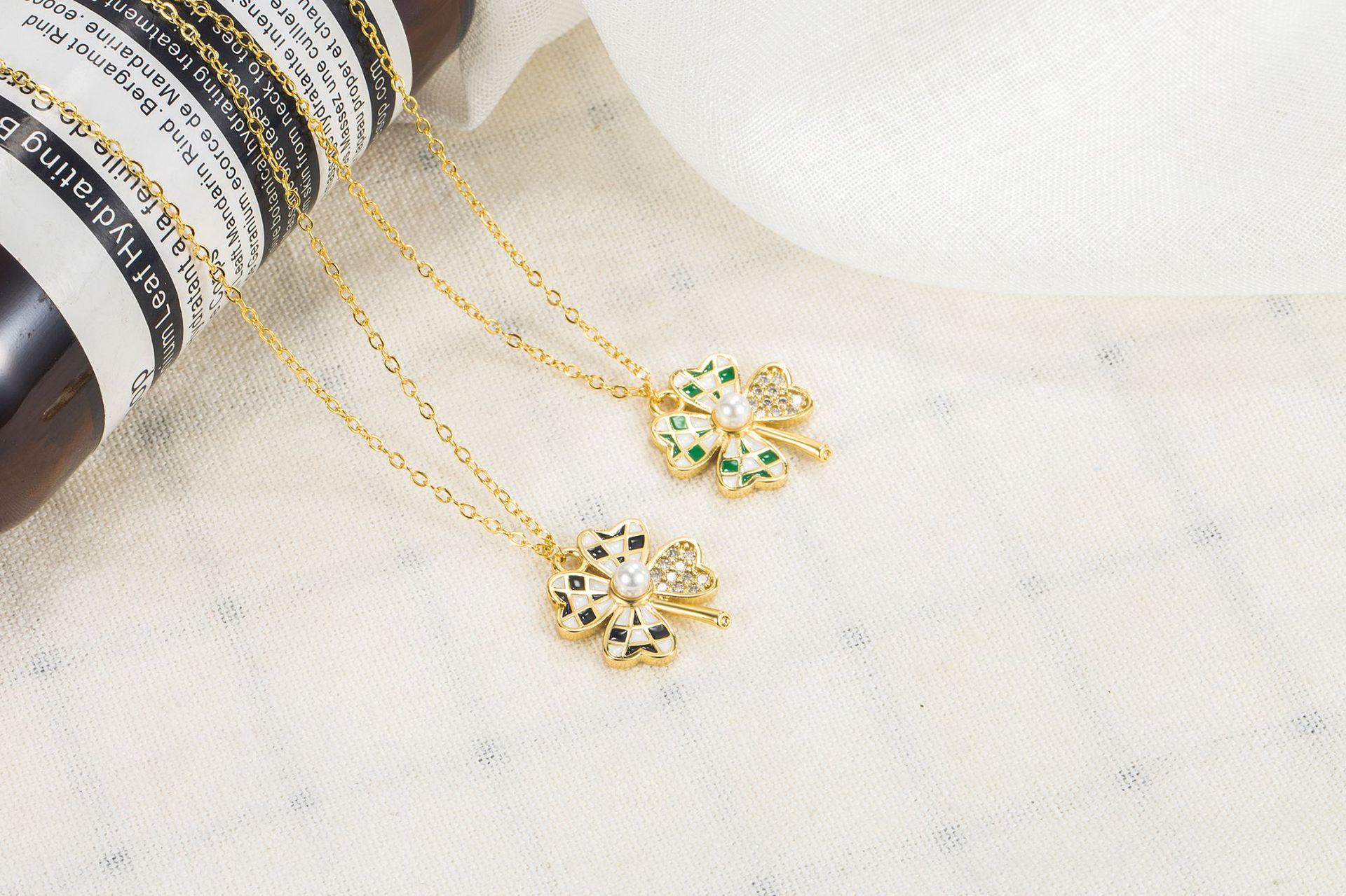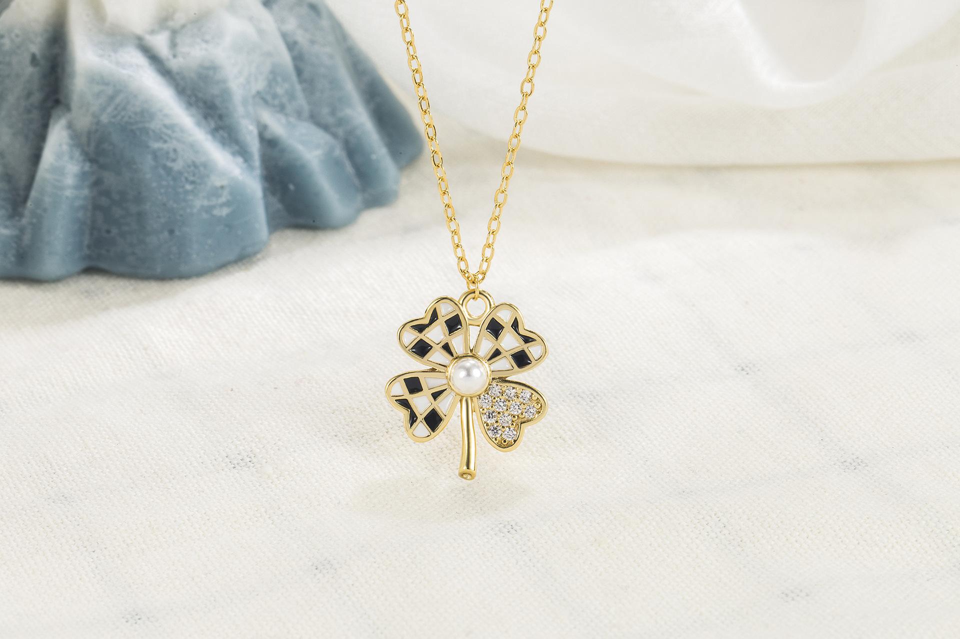 Plaid Clover Necklace (Green), Plaid Clover Necklace (Black)