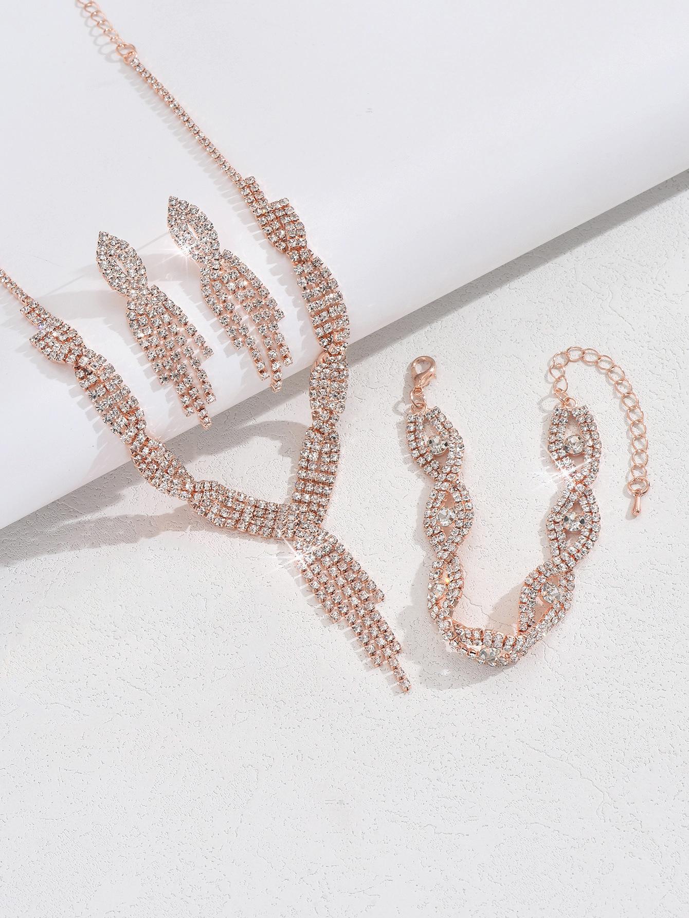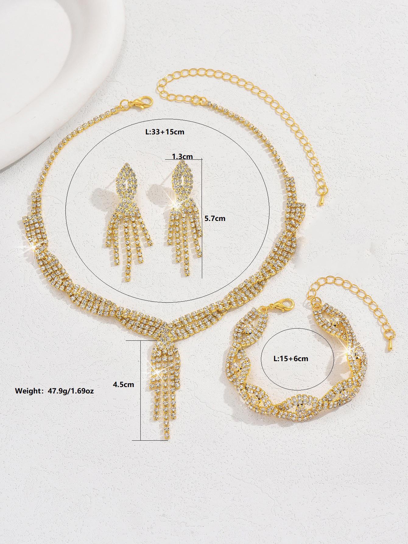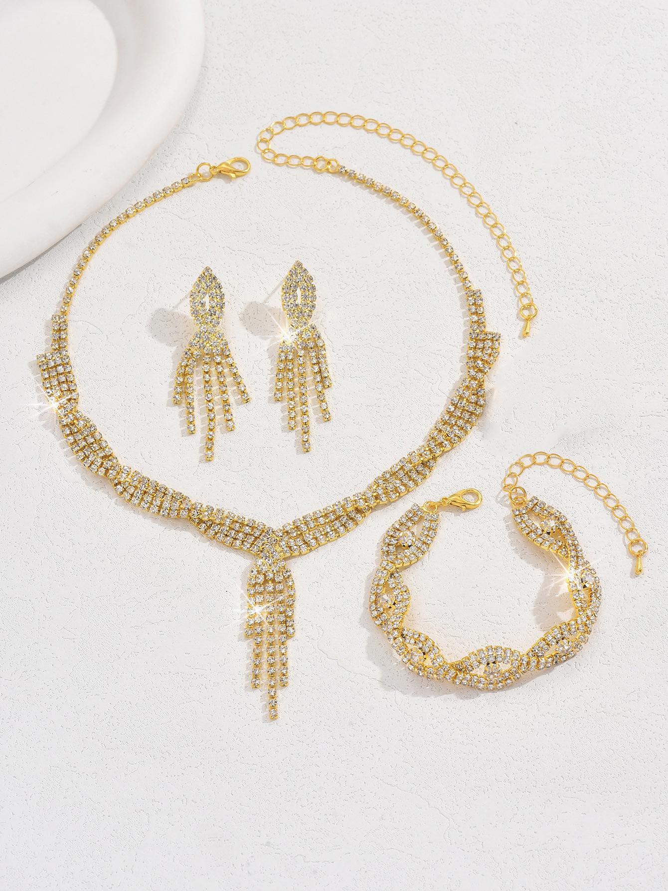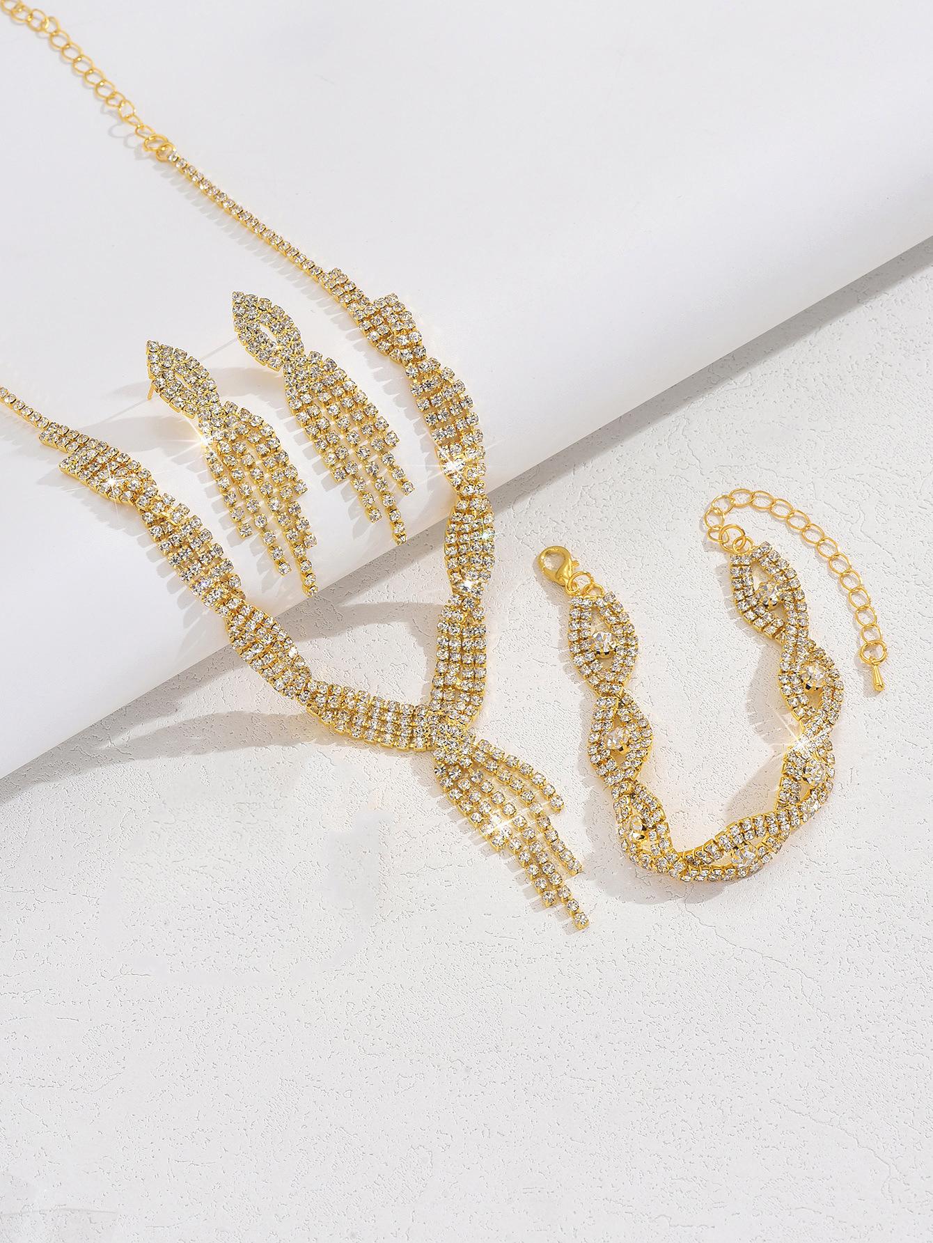Pulsera de Cadena de Garra de Tres Piezas Transfronteriza Diamante de Imitación Collar de Boda Aretes Joyería Joyería para Banquete Set de Vestido de Noche