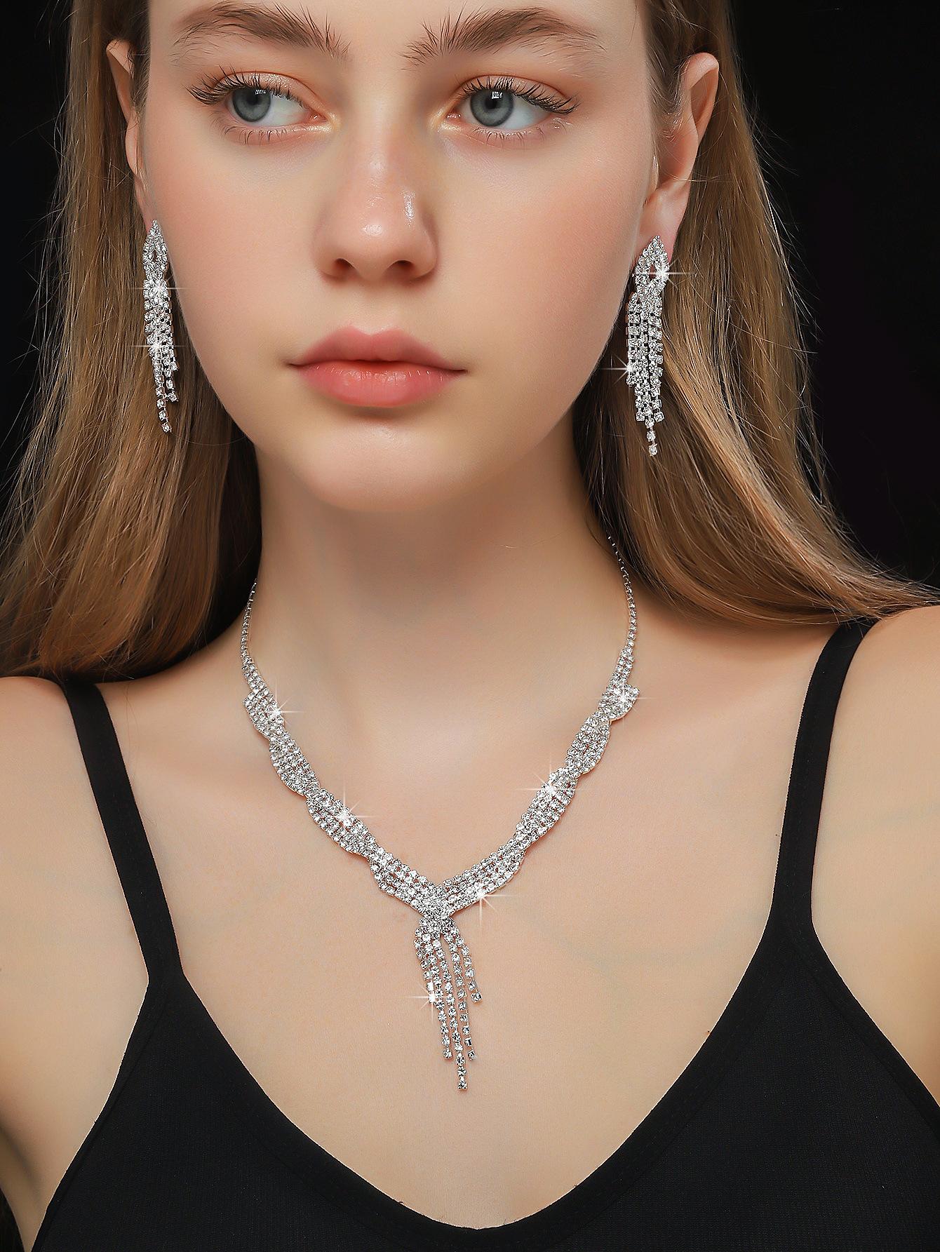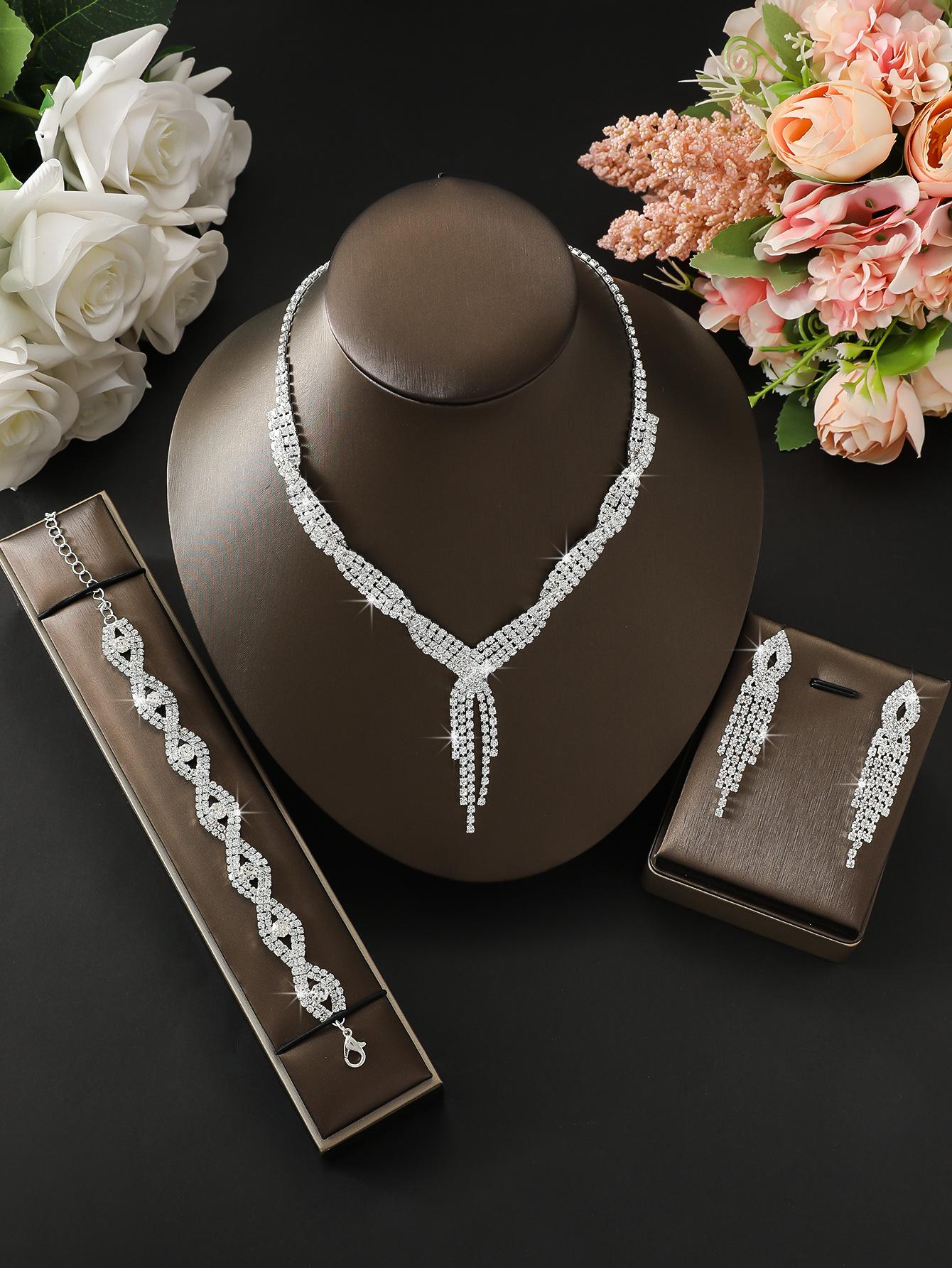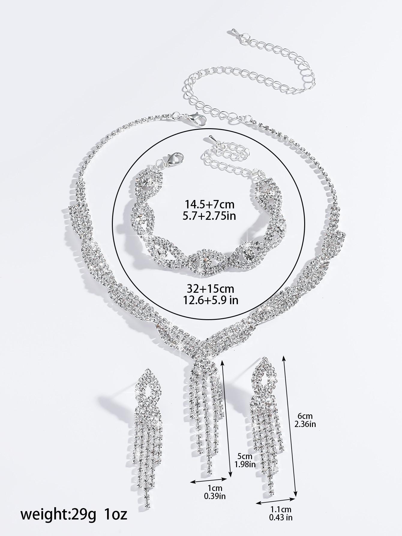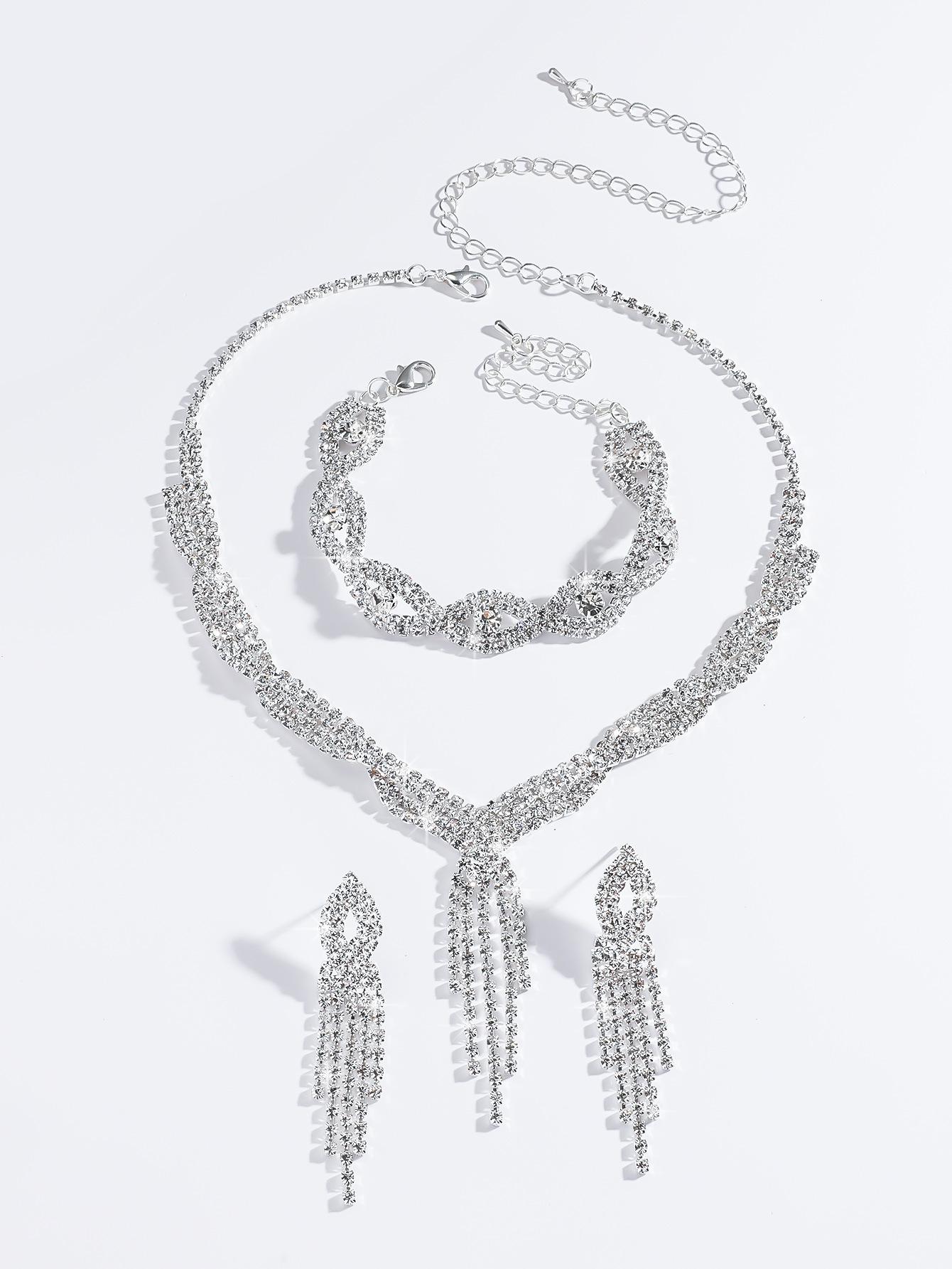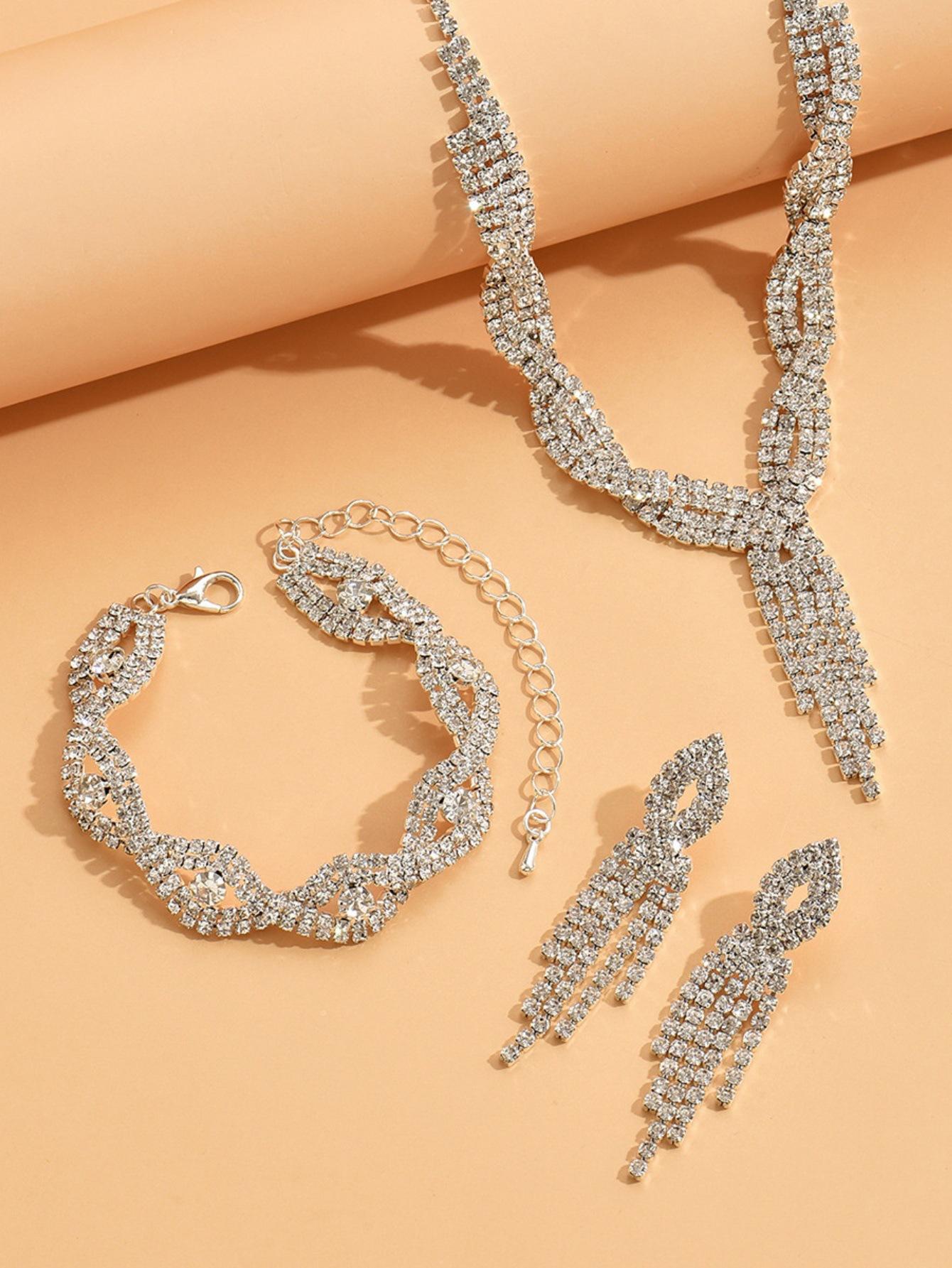 Pulsera de Cadena de Garra de Tres Piezas Transfronteriza Diamante de Imitación Collar de Boda Aretes Joyería Joyería para Banquete Set de Vestido de Noche