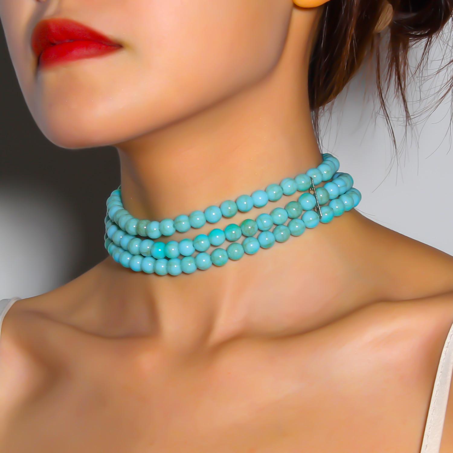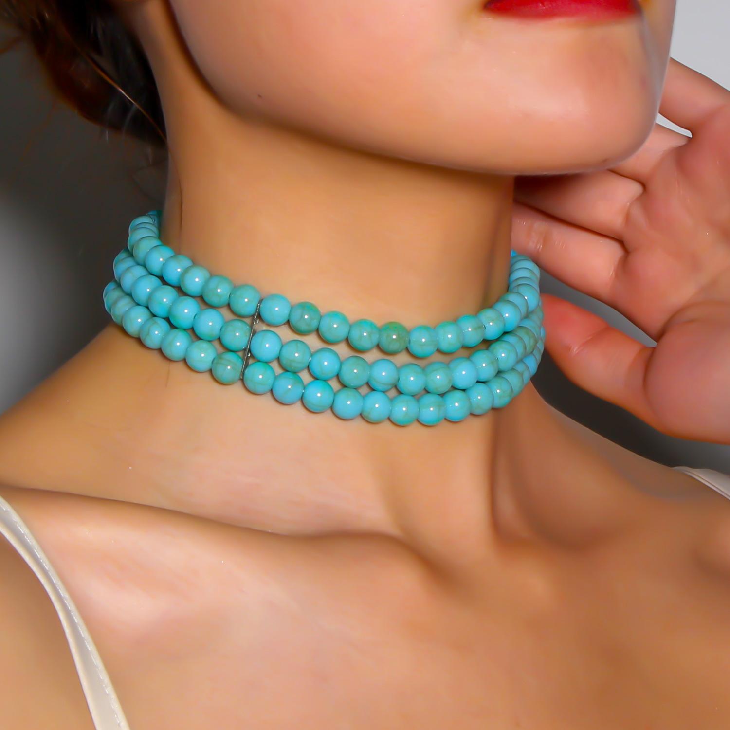 Collar Corto Multicapa Tipo Gargantilla de Turquesa Imitación Europea y Americana Conjunto de Collar para Mujer Decoración Venta al por Mayor 13350