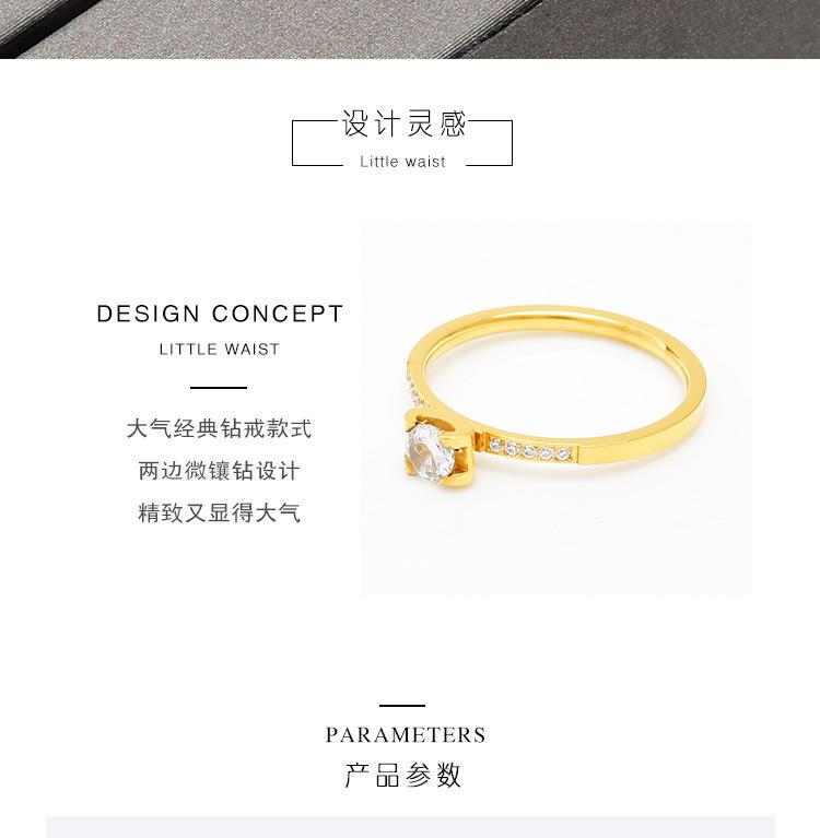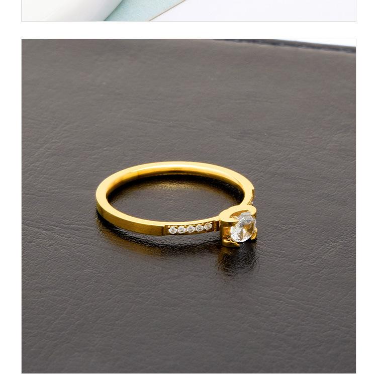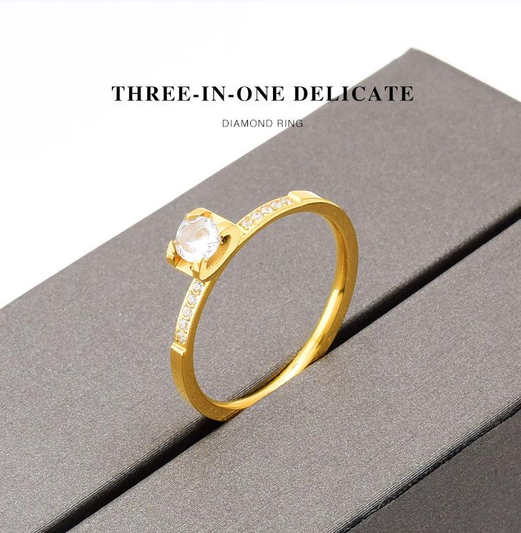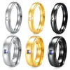 Anillo de titanio y acero con diamantes, sencillo y moderno, con oro de 18 quilates que conserva el color, con circonitas de cuatro garras, para mujer.