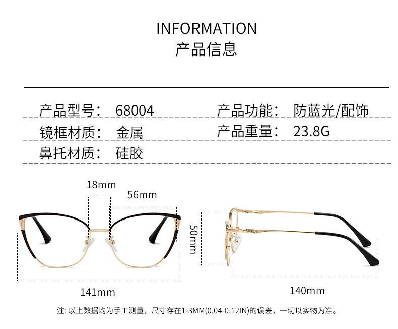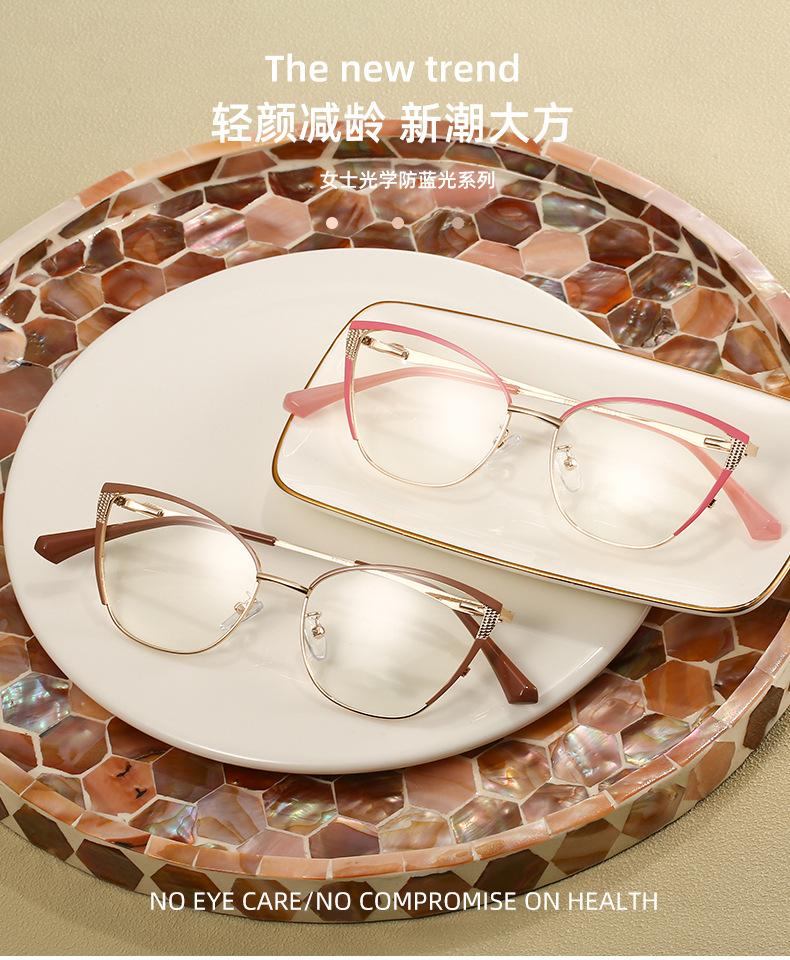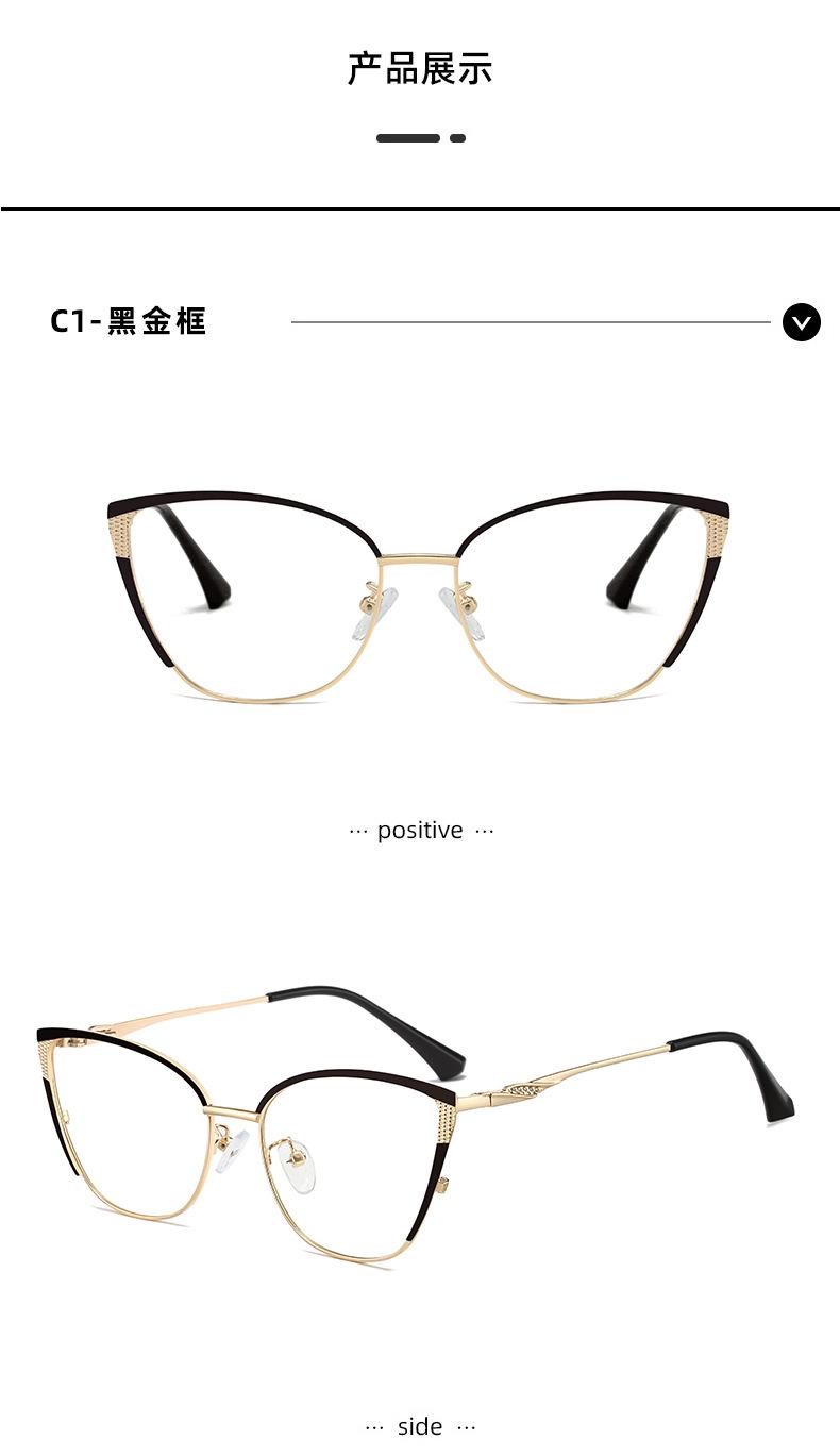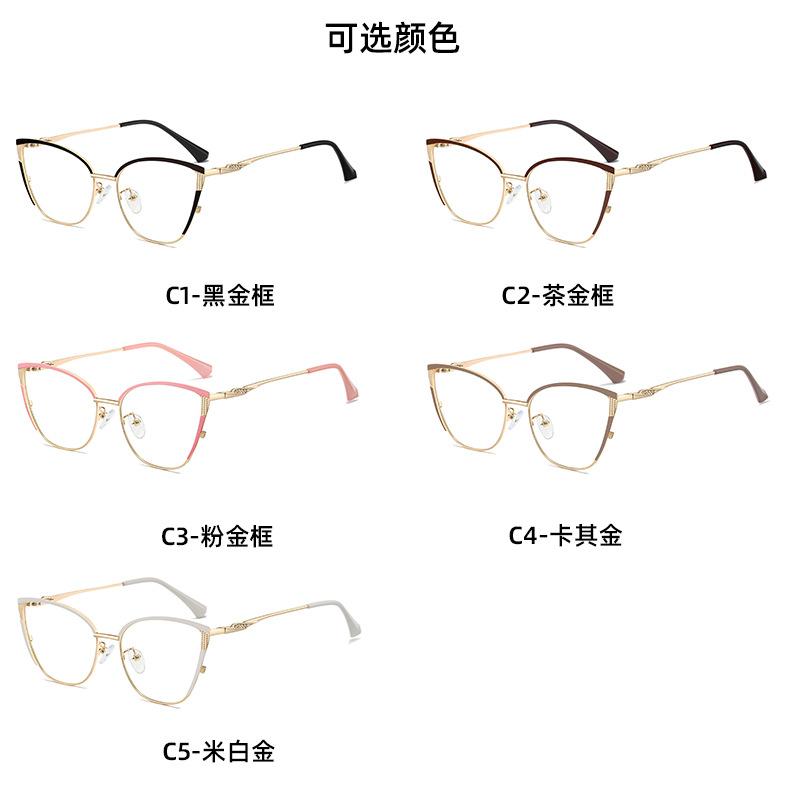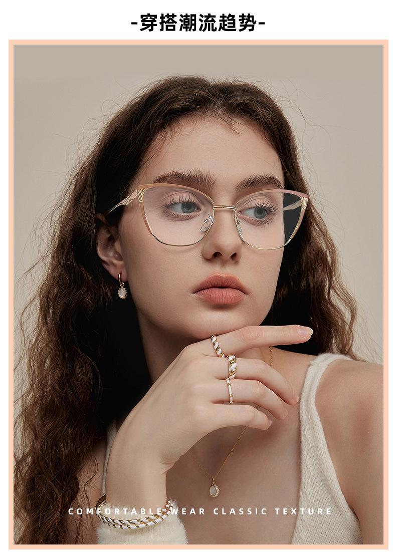 Montura de gafas de ojo de gato transfronteriza, personalizada, de moda, de metal, antiluz azul, protección ocular para miopía para mujer