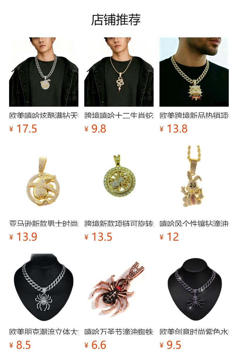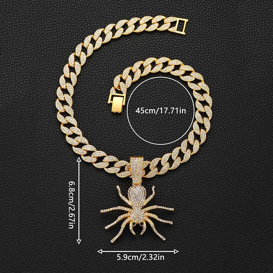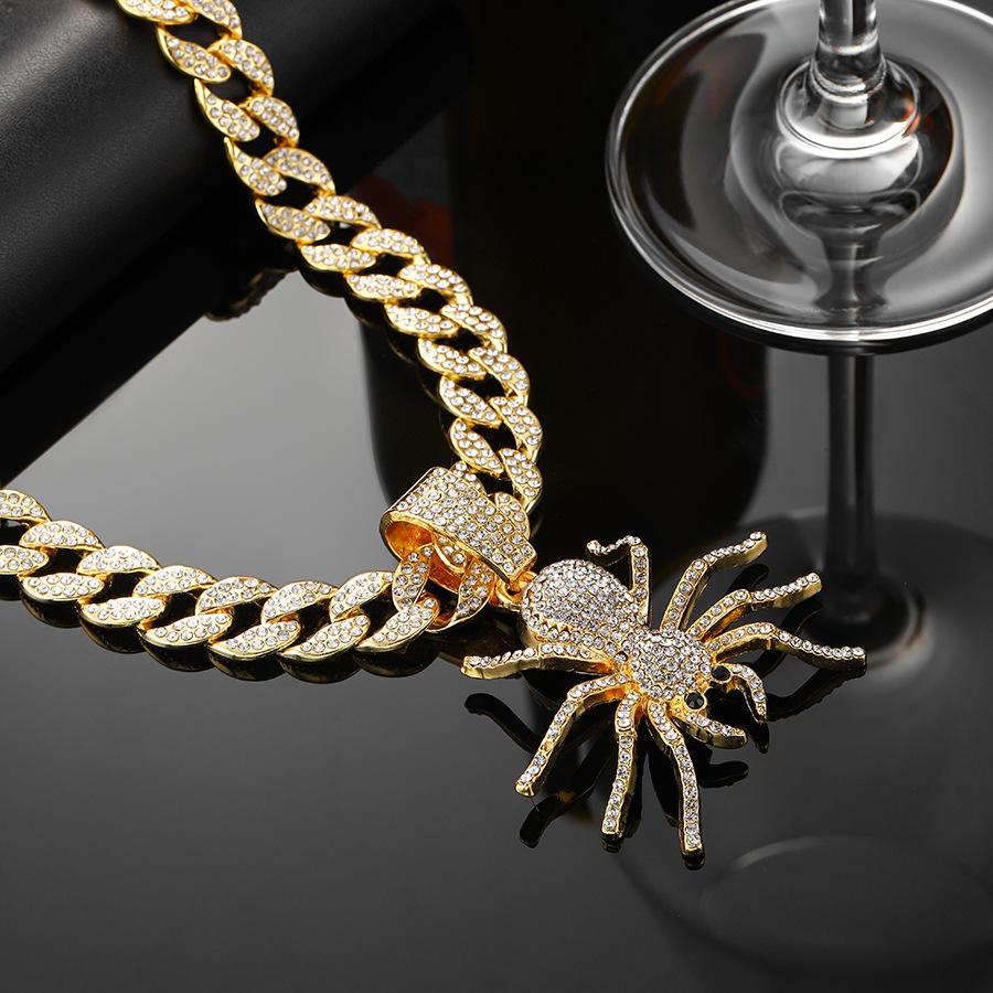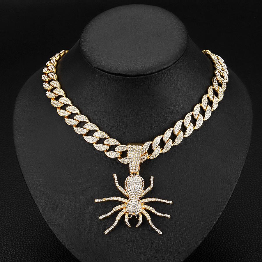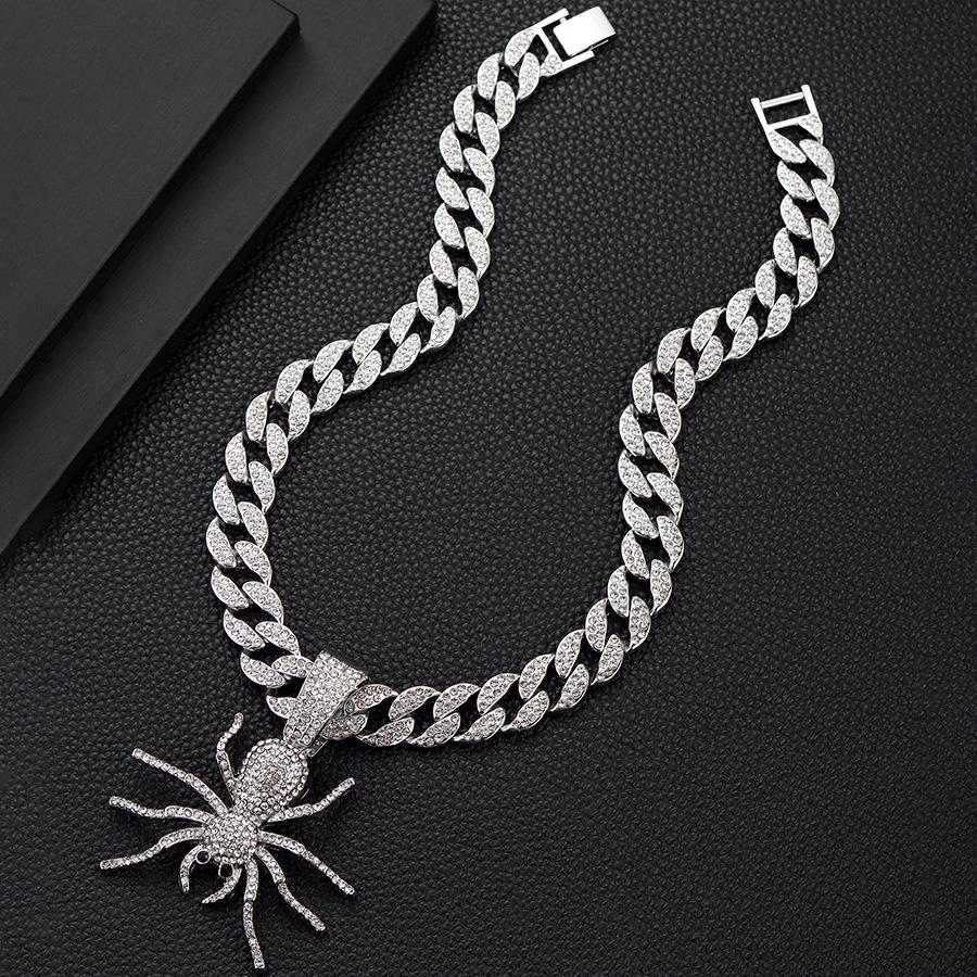 Colgante de aleación de araña de diamantes transfronterizos de Europa y Estados Unidos, estilo hip-hop, personalidad de la moda, cadena cubana, collar para hombre, joyería