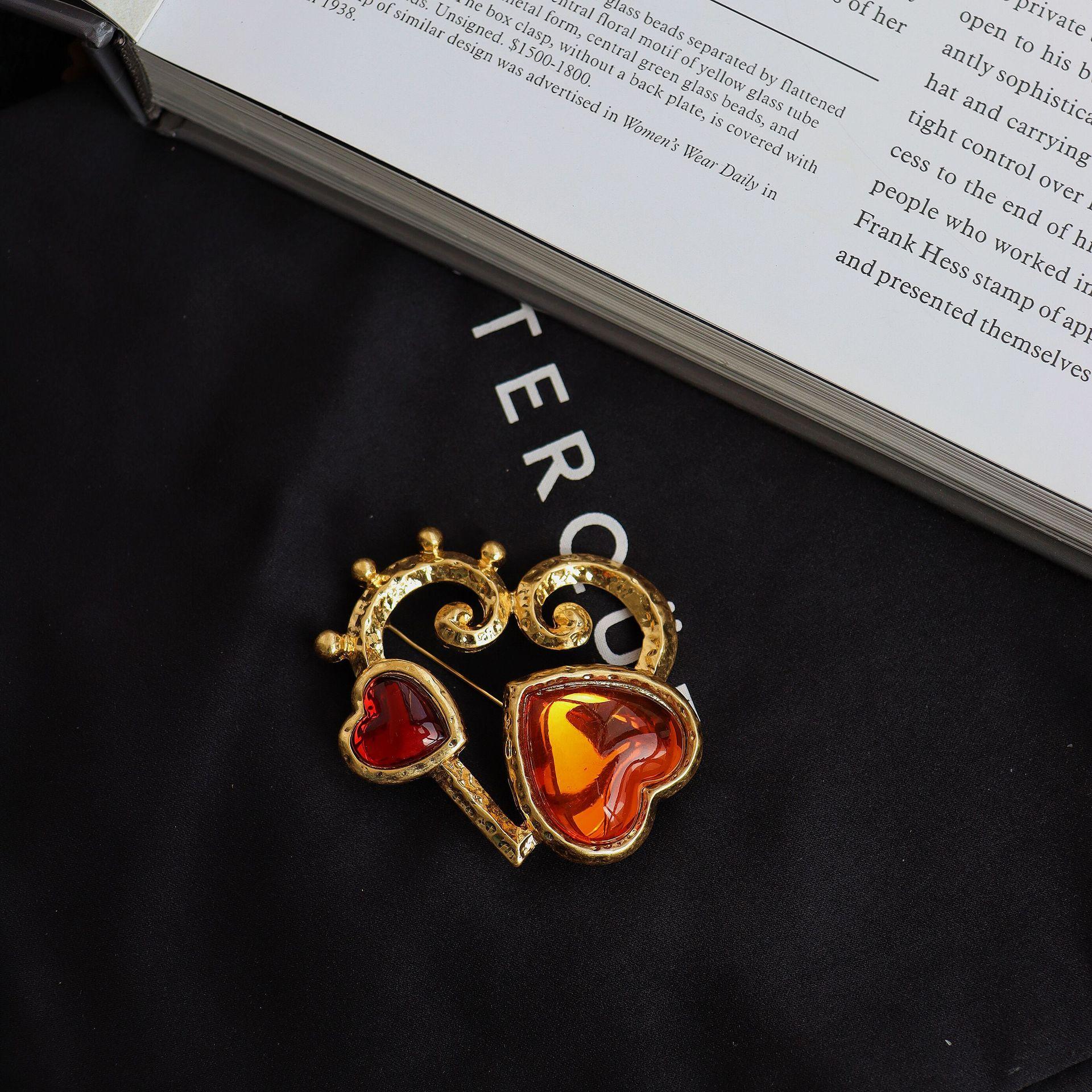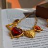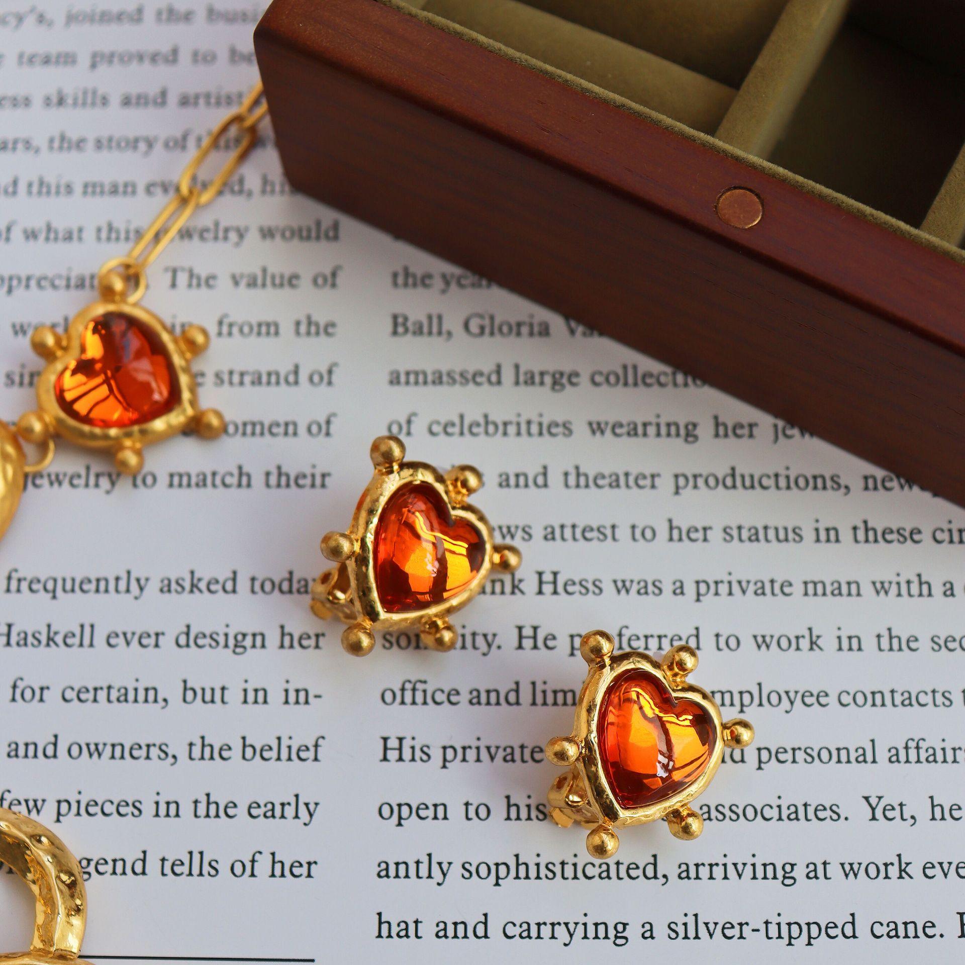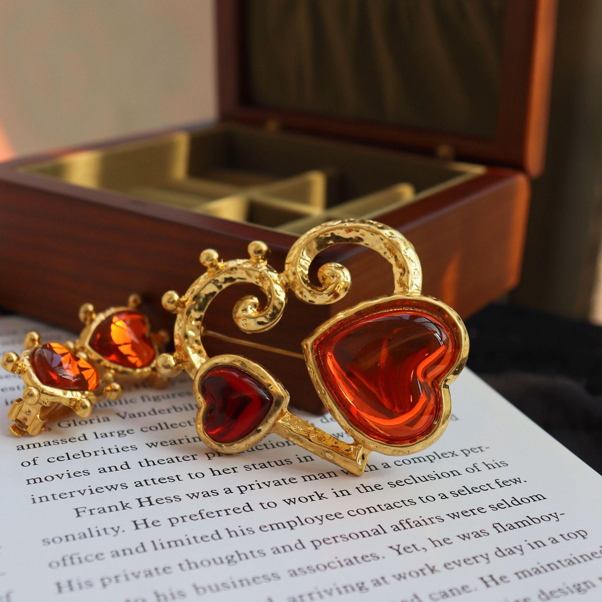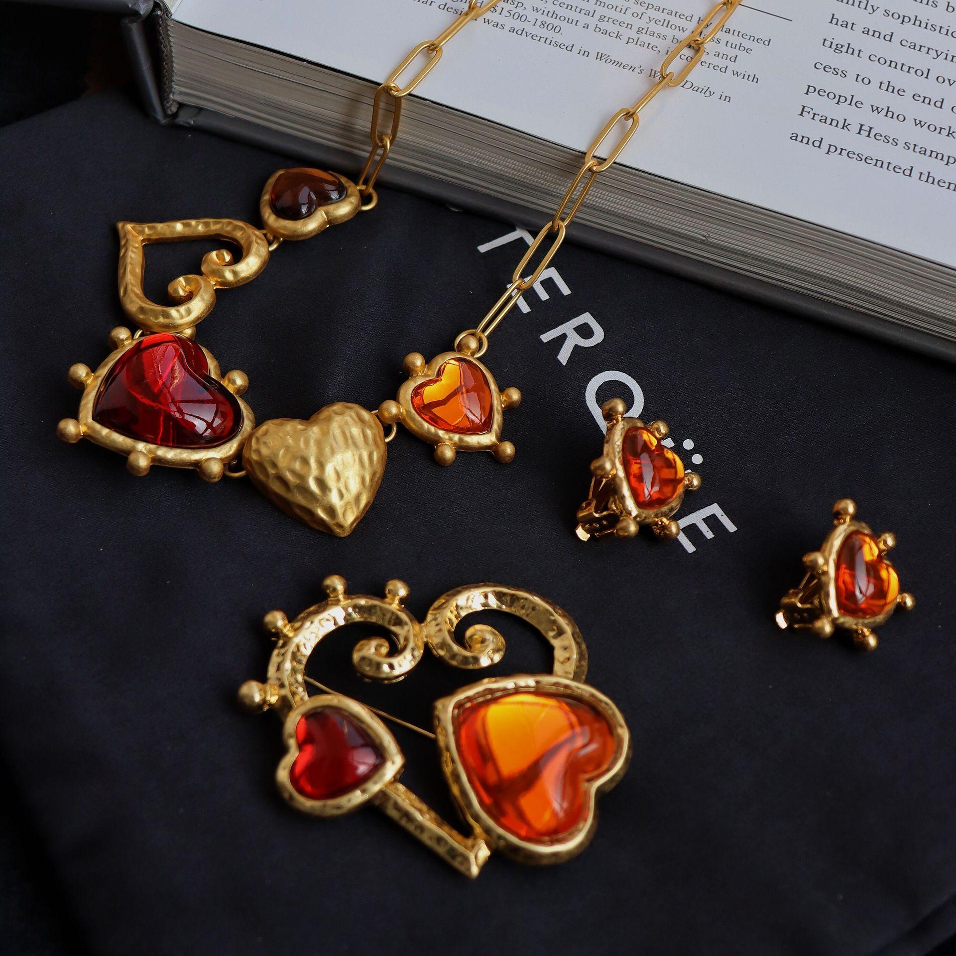 Réplica de Contador Francés Francés Philip Glass Resina Gran Corazón de Durazno Collar Broche Aretes Set Medieval
