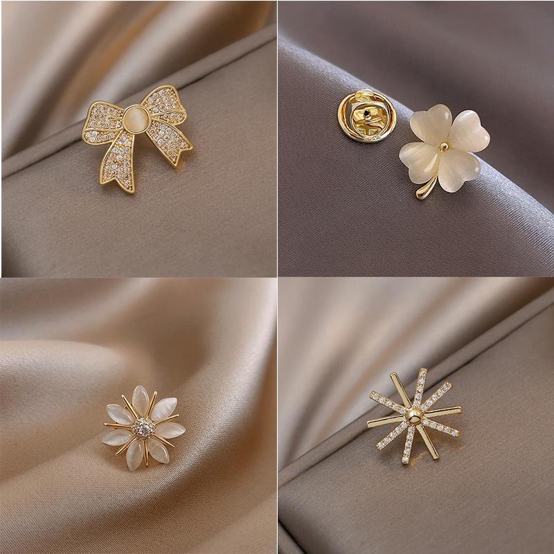 Broche de ojo de gato con forma de lazo y diamante para mujer, bonito broche japonés antiexposición con hebilla, accesorio de ropa fijo con personalidad.