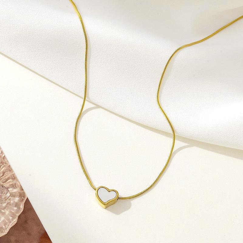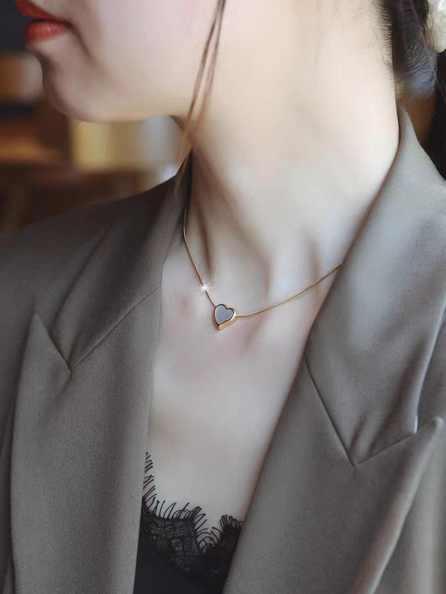 Collar de acero de titanio con colgante de concha blanca francesa Love para mujer, cadena de clavícula sencilla de lujo, sin color, estilo francés, para verano.
