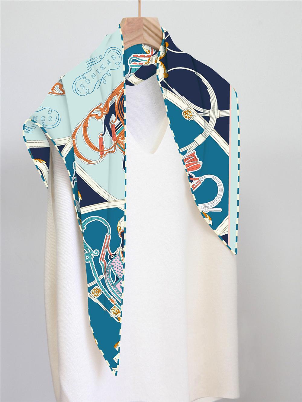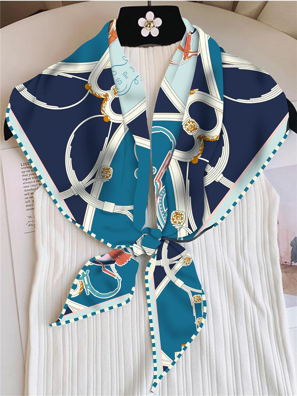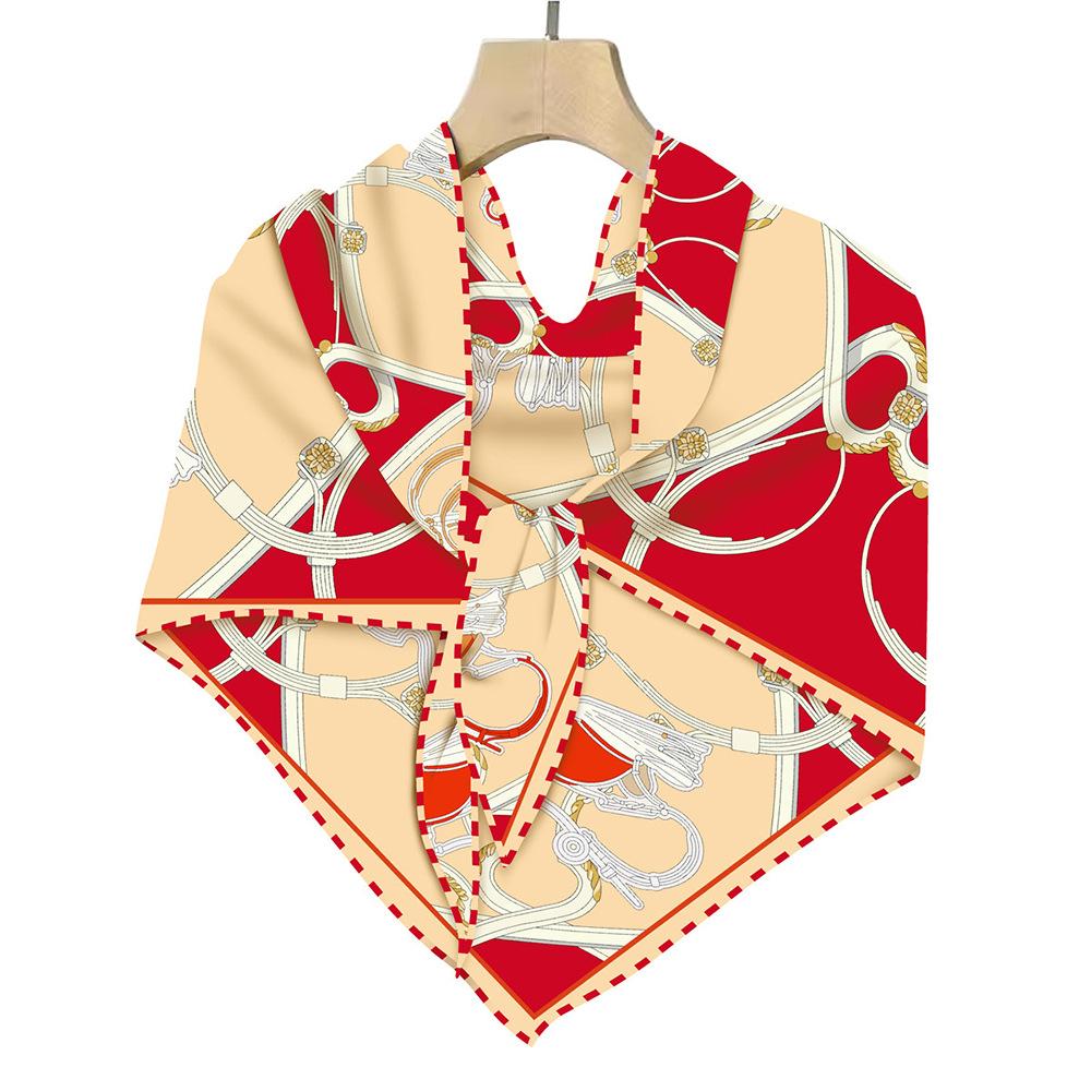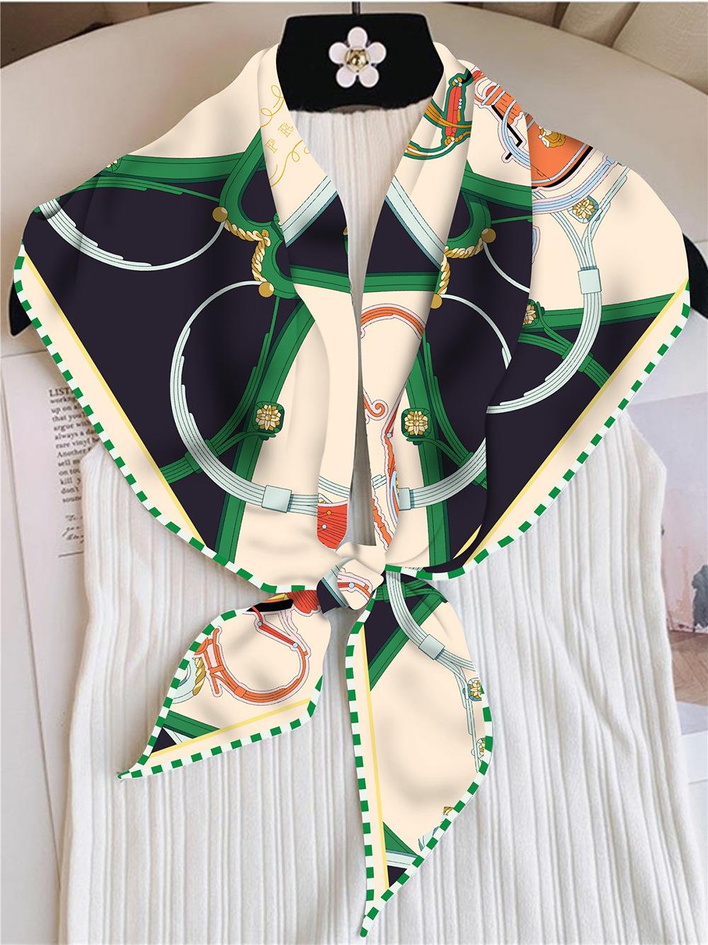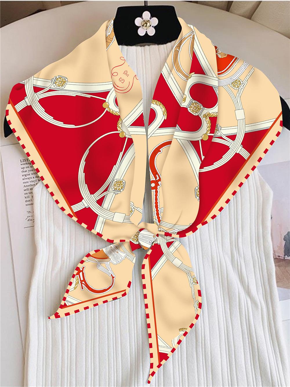 Bufanda triangular elegante para mujer, estilo europeo y americano, con cadena de carruajes nuevos, combina con todo, bufanda decorativa, bufanda pequeña, bufanda de tubo superior