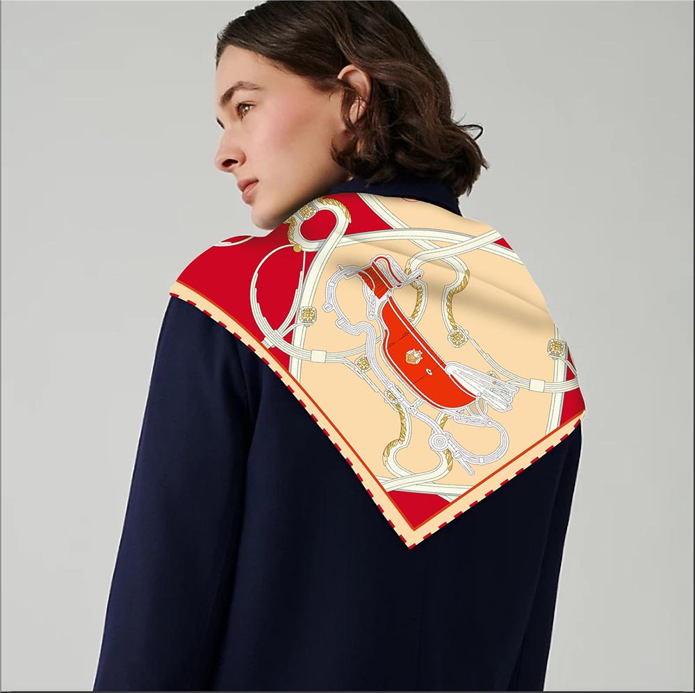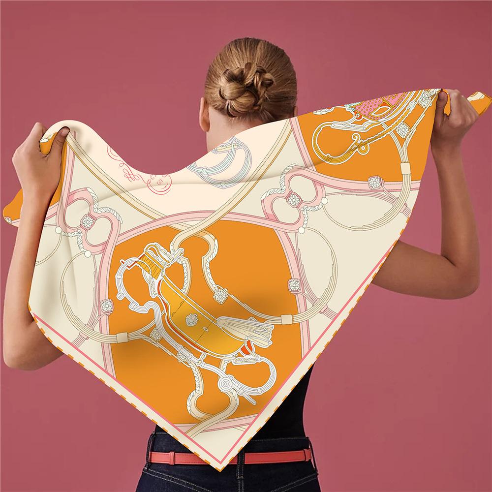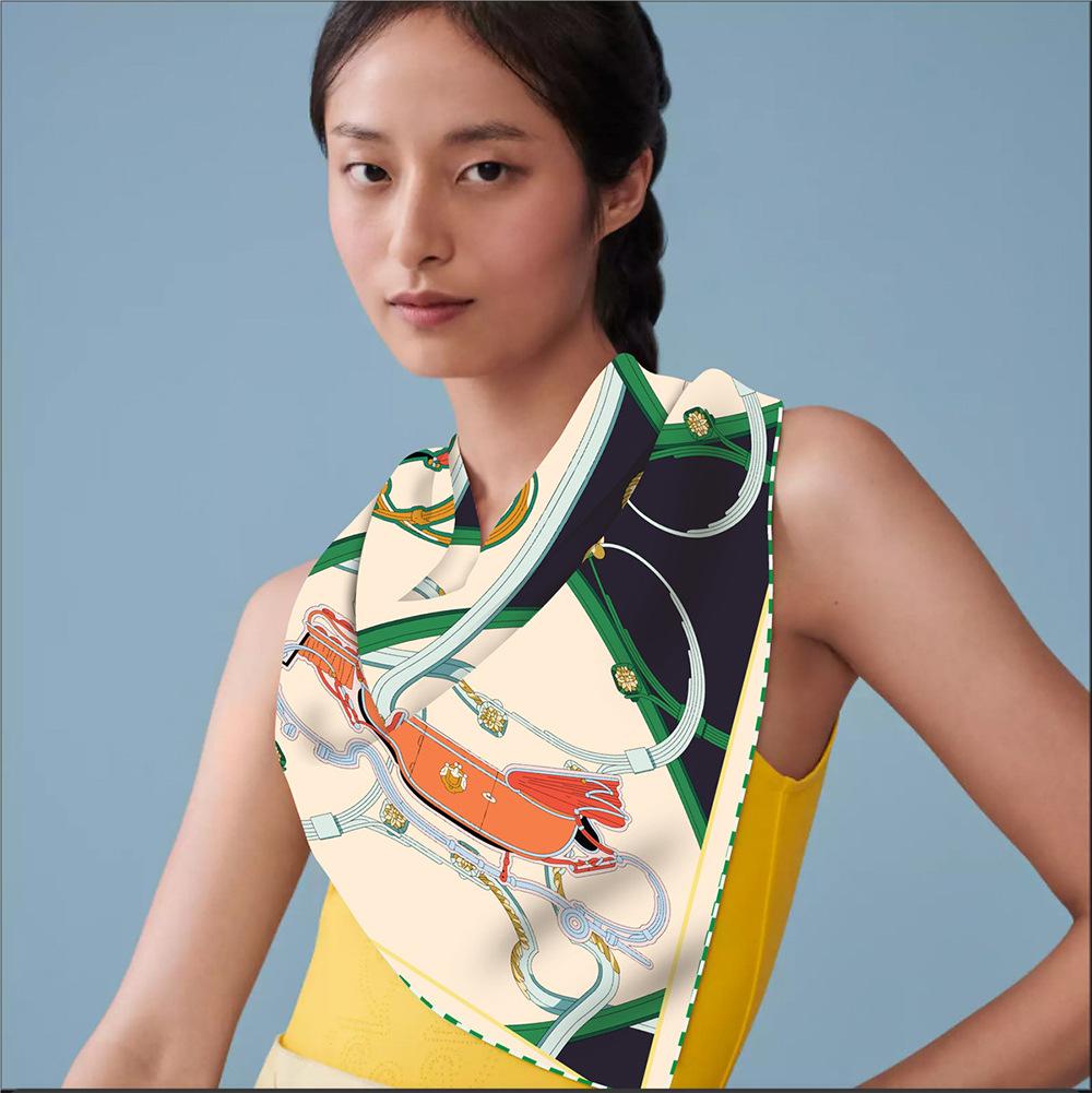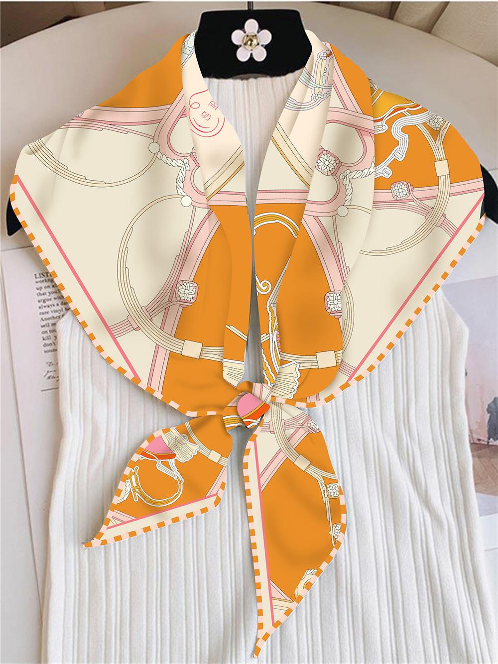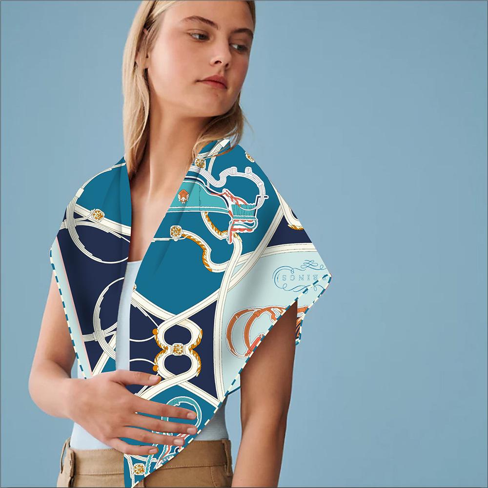 Bufanda triangular elegante para mujer, estilo europeo y americano, con cadena de carruajes nuevos, combina con todo, bufanda decorativa, bufanda pequeña, bufanda de tubo superior