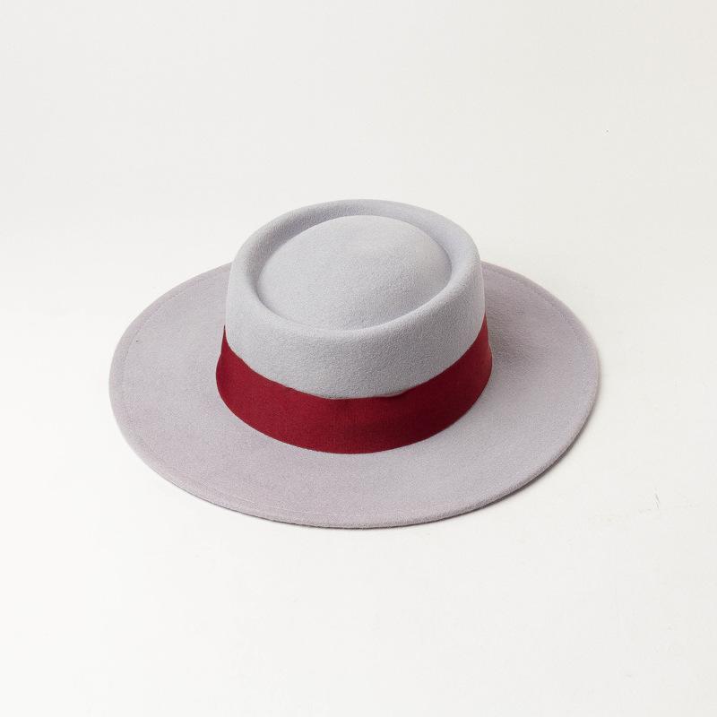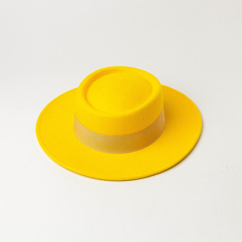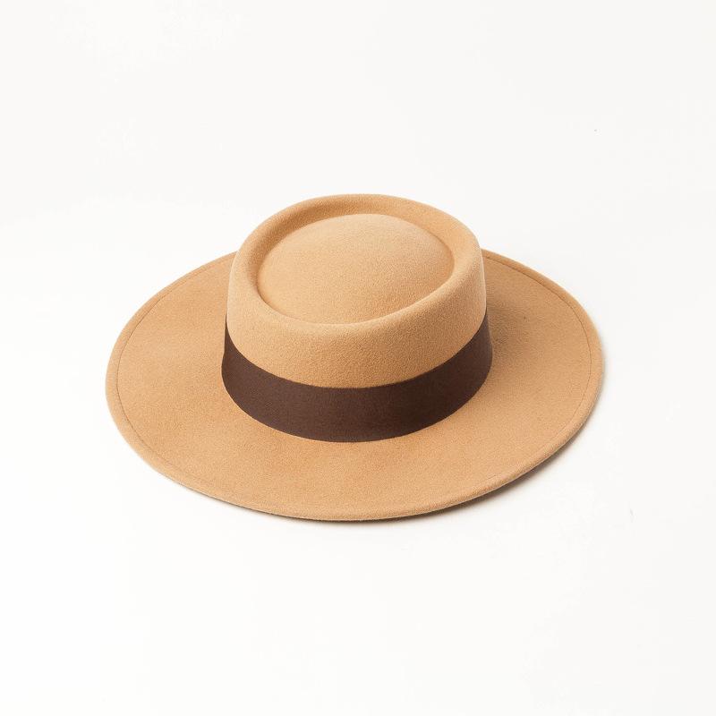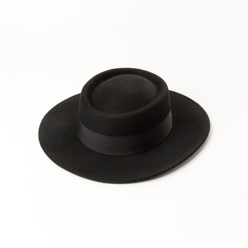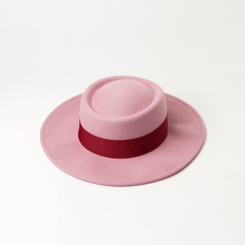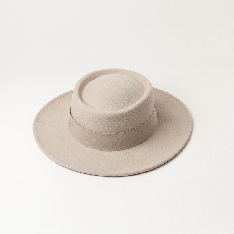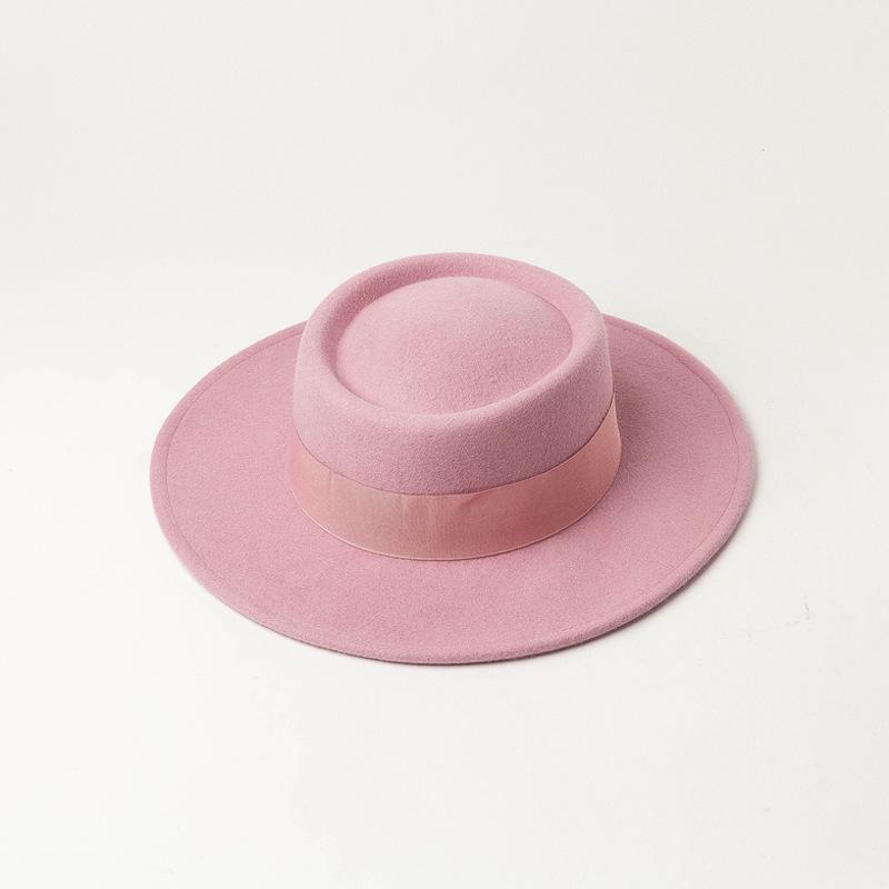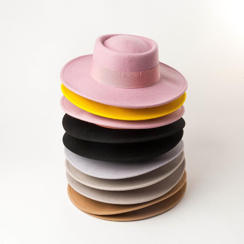 Nuevo sombrero de copa de fieltro de lana con ala plana y redonda para mujer, moda de primavera, otoño e invierno, sombrero de copa de lana con ala plana