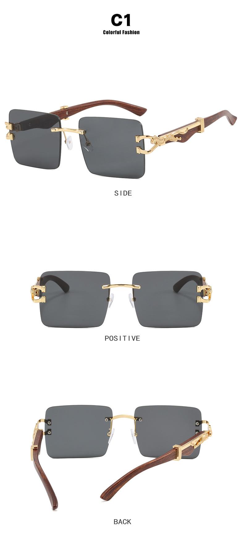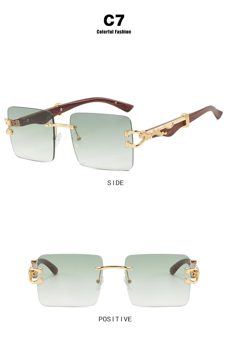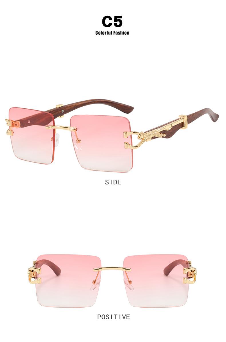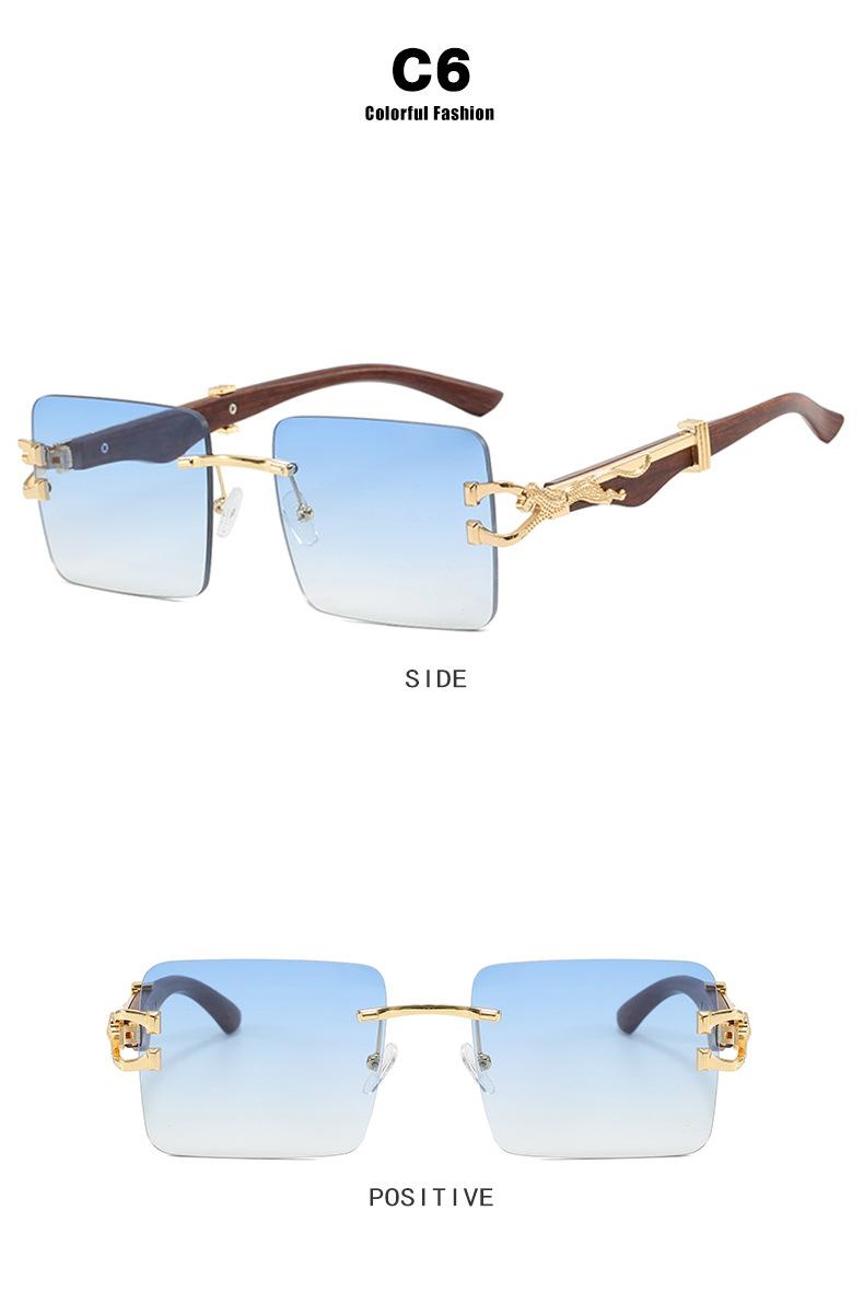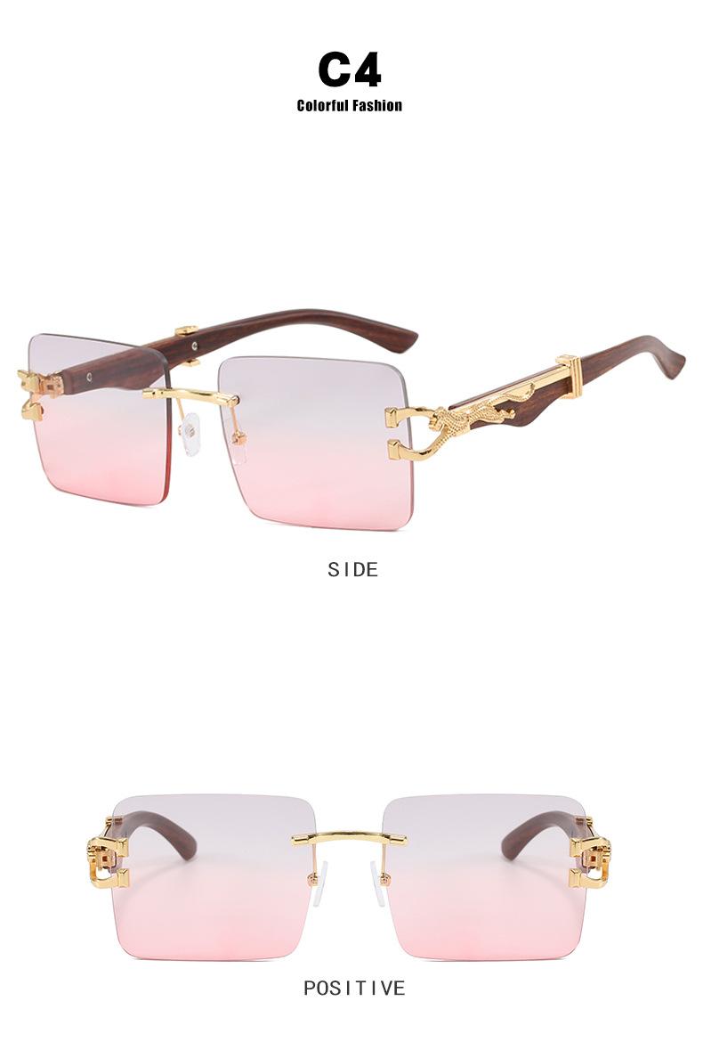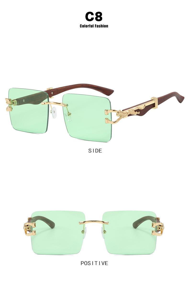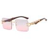 Gafas de Sol Retro sin Montura Transfronterizas para Mujer, Personalizadas con Patrón de Madera de Leopardo, Gafas Cuadradas para Mujer, Gafas de Sol de Moda para Mujer