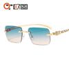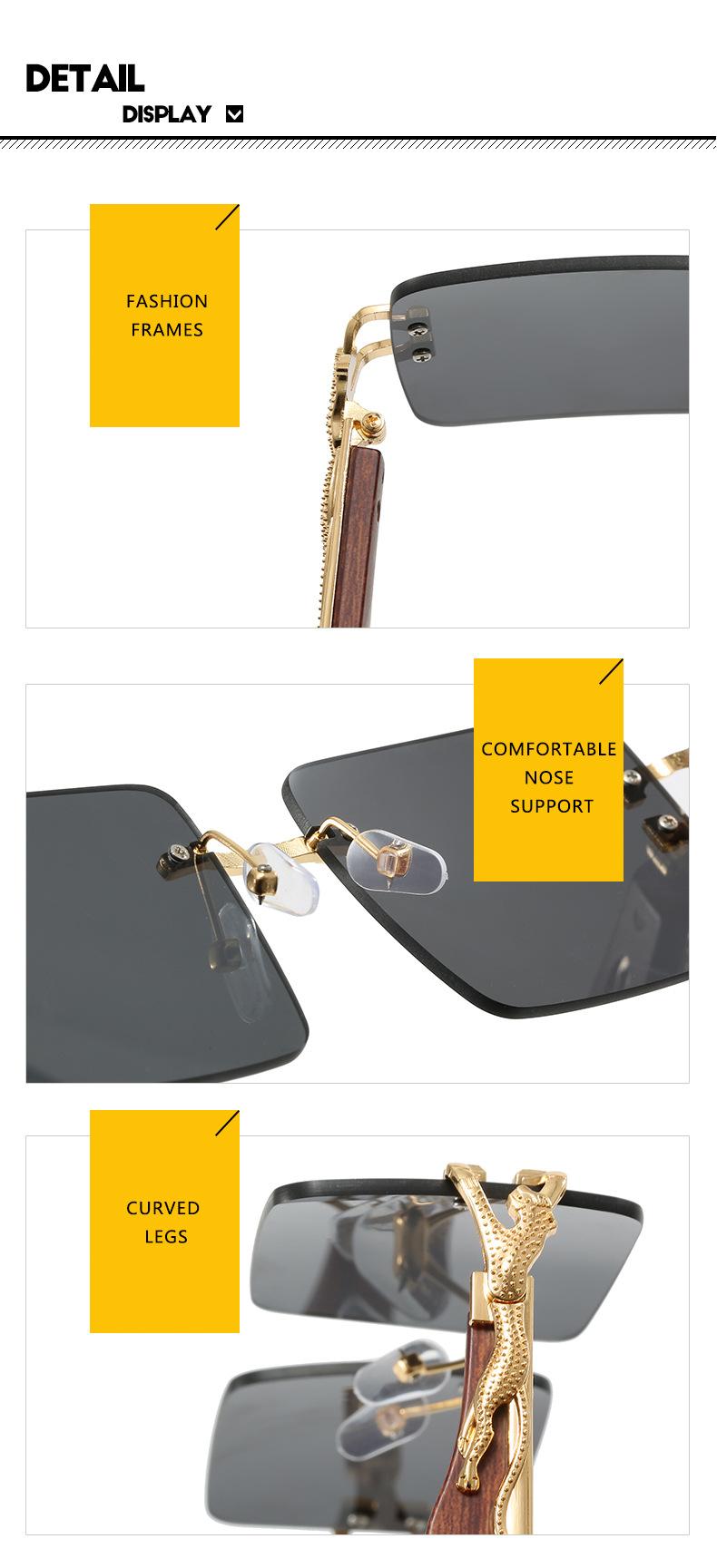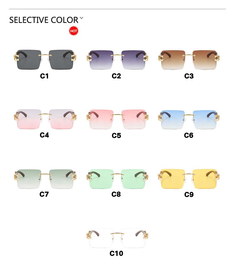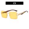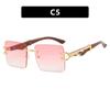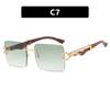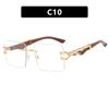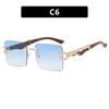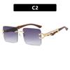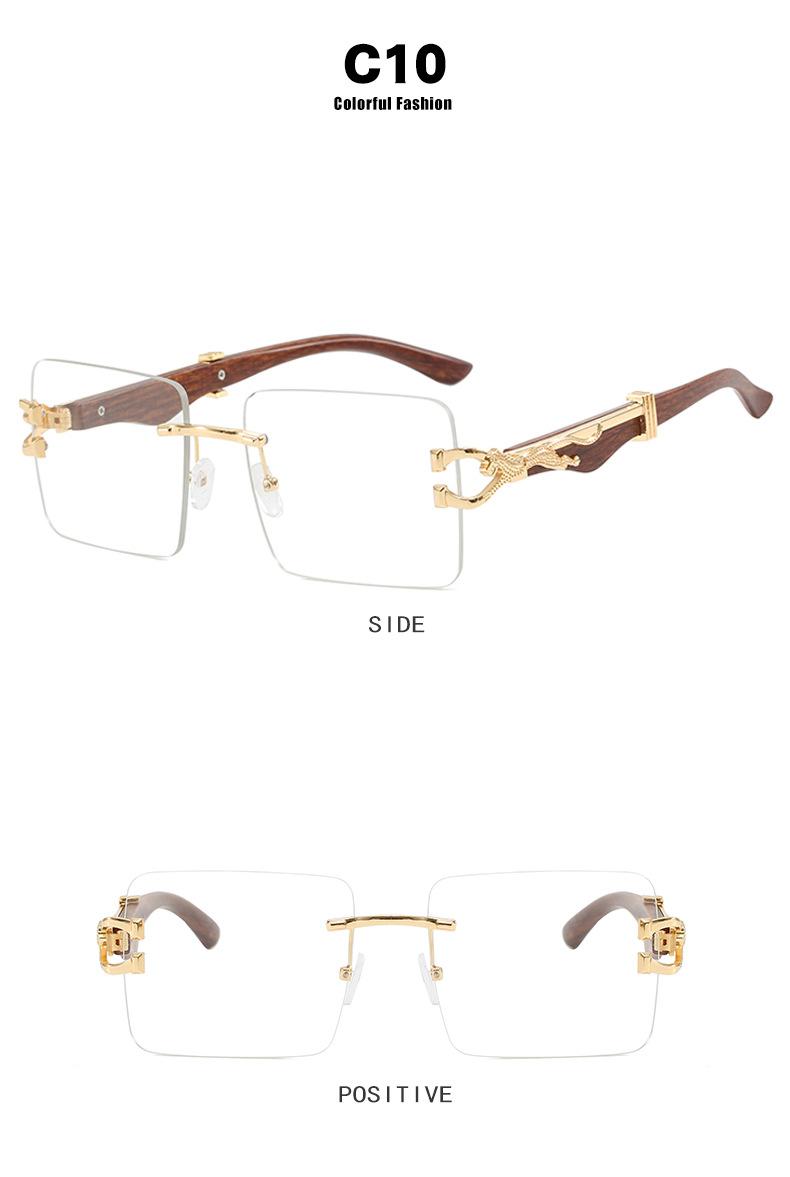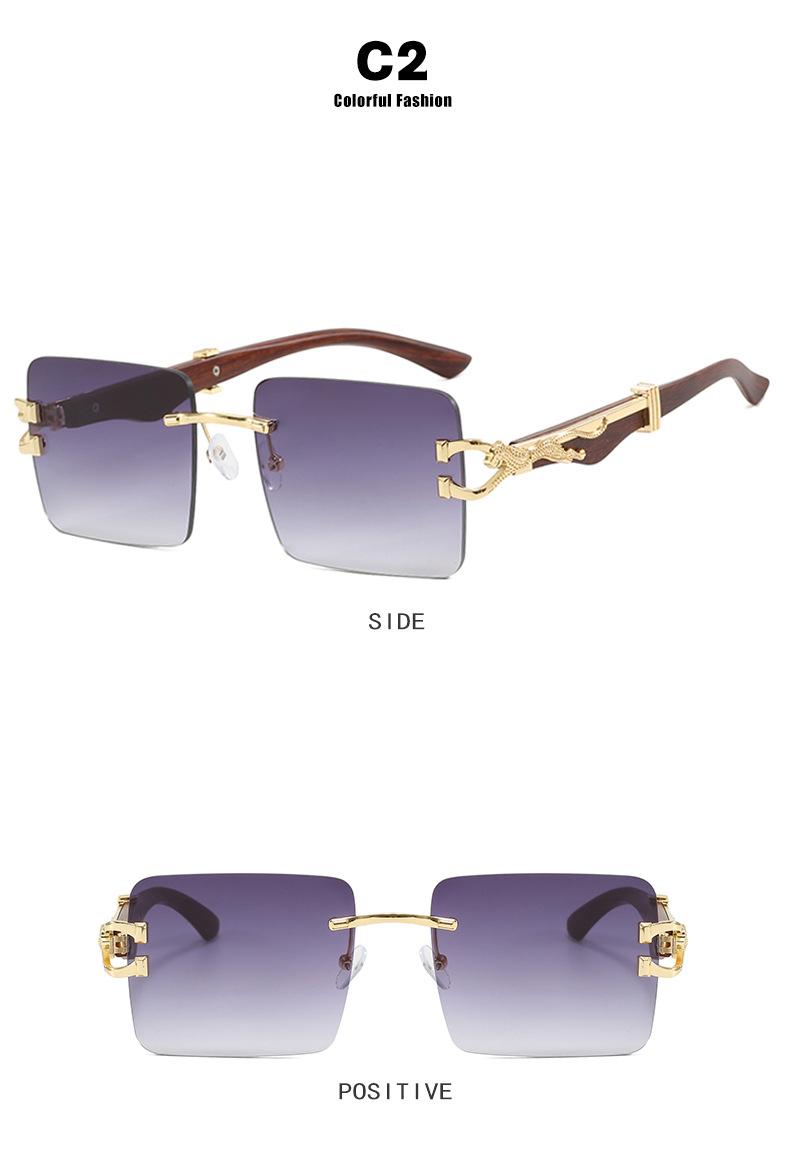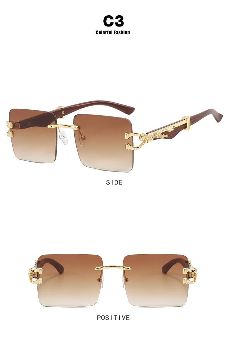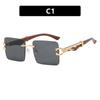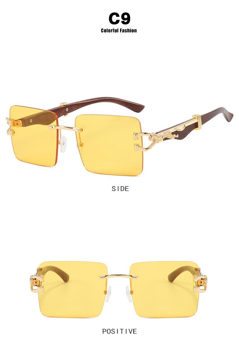 Gafas de Sol Retro sin Montura Transfronterizas para Mujer, Personalizadas con Patrón de Madera de Leopardo, Gafas Cuadradas para Mujer, Gafas de Sol de Moda para Mujer