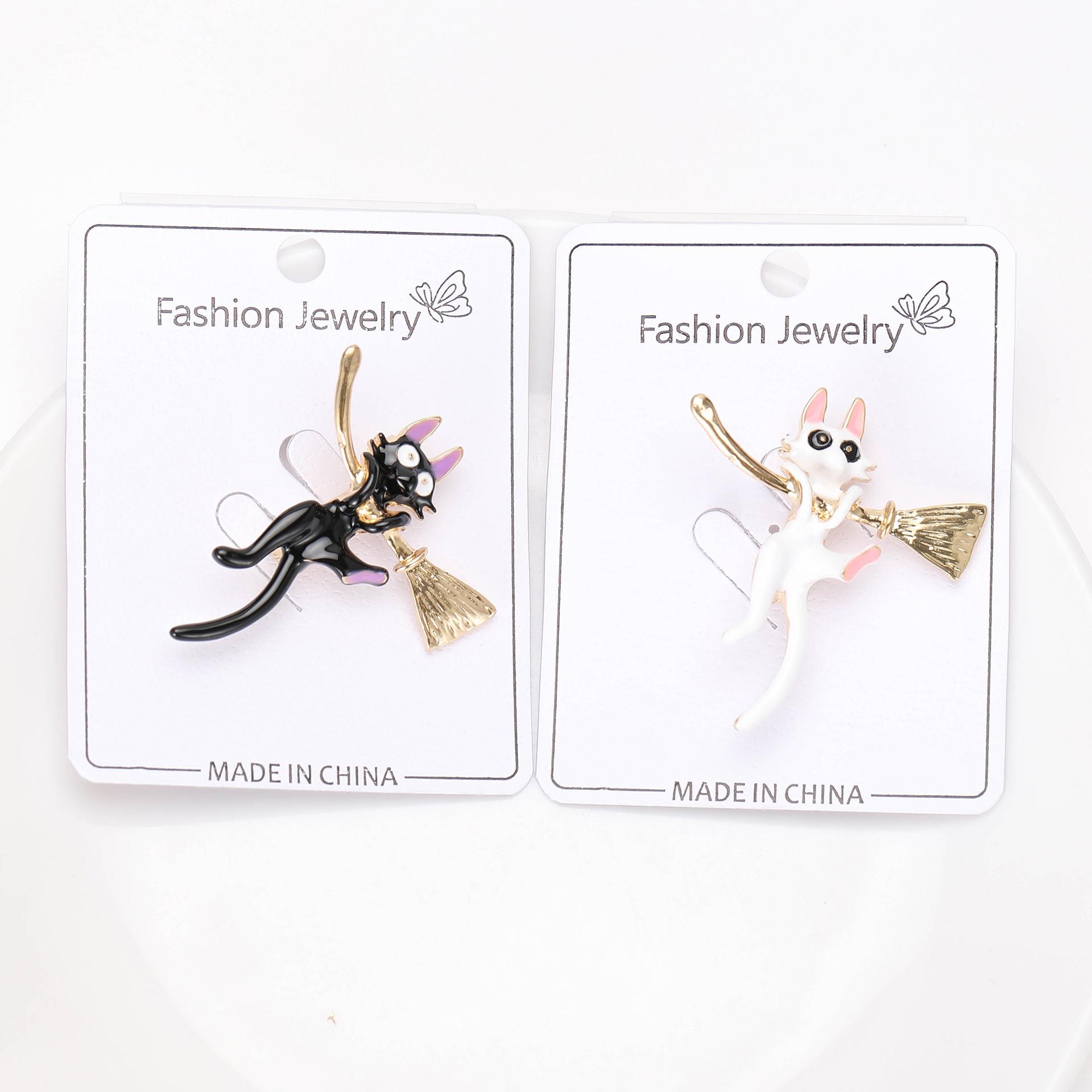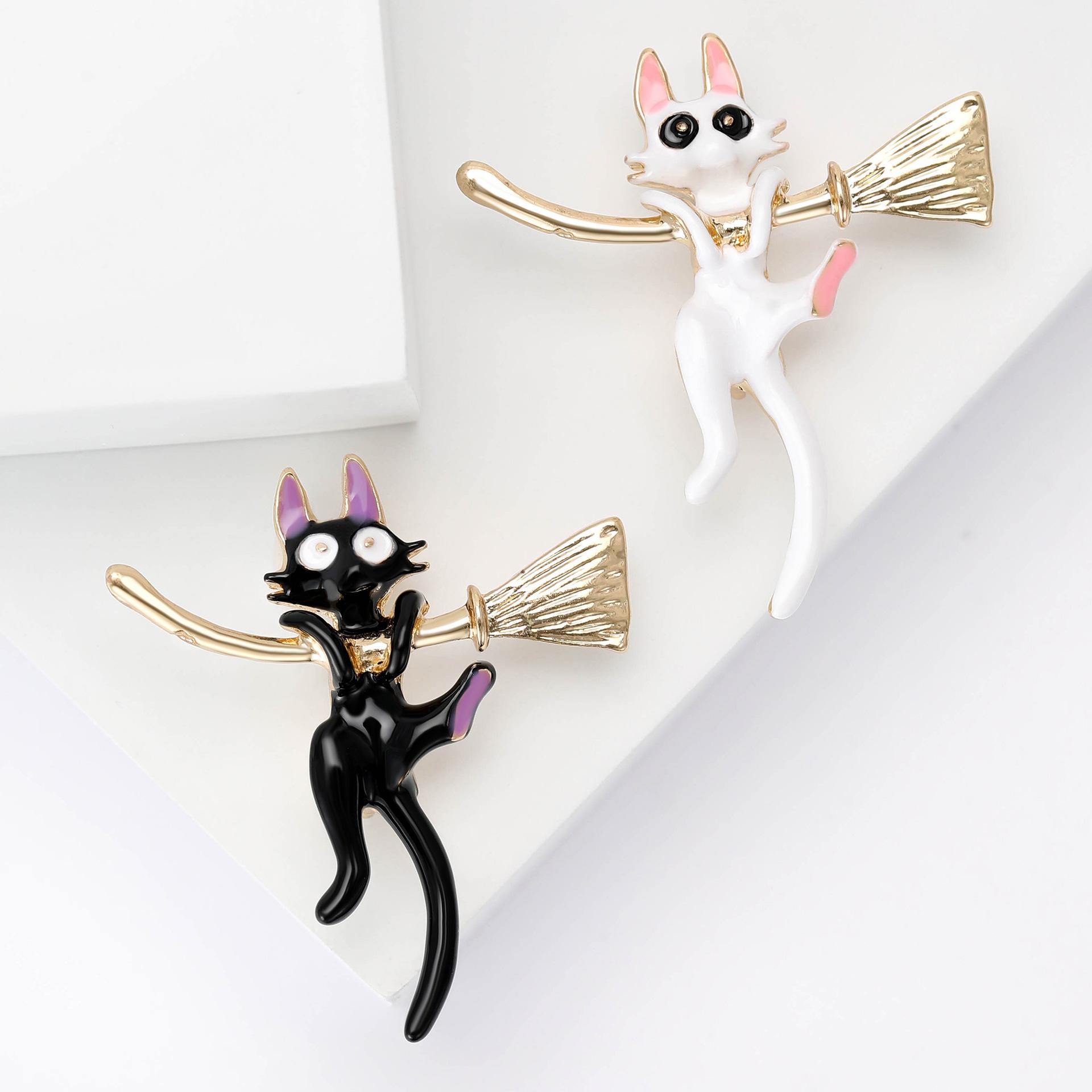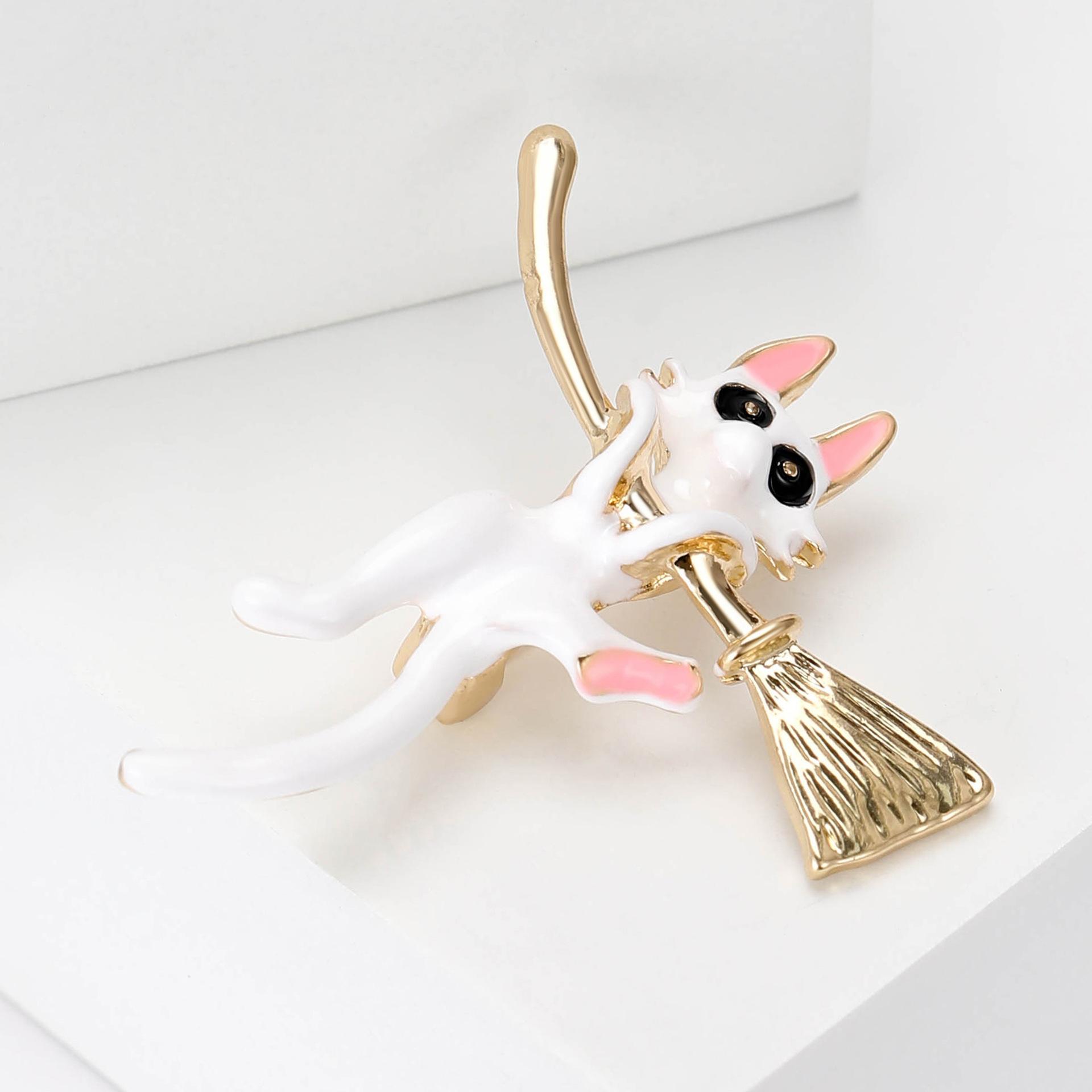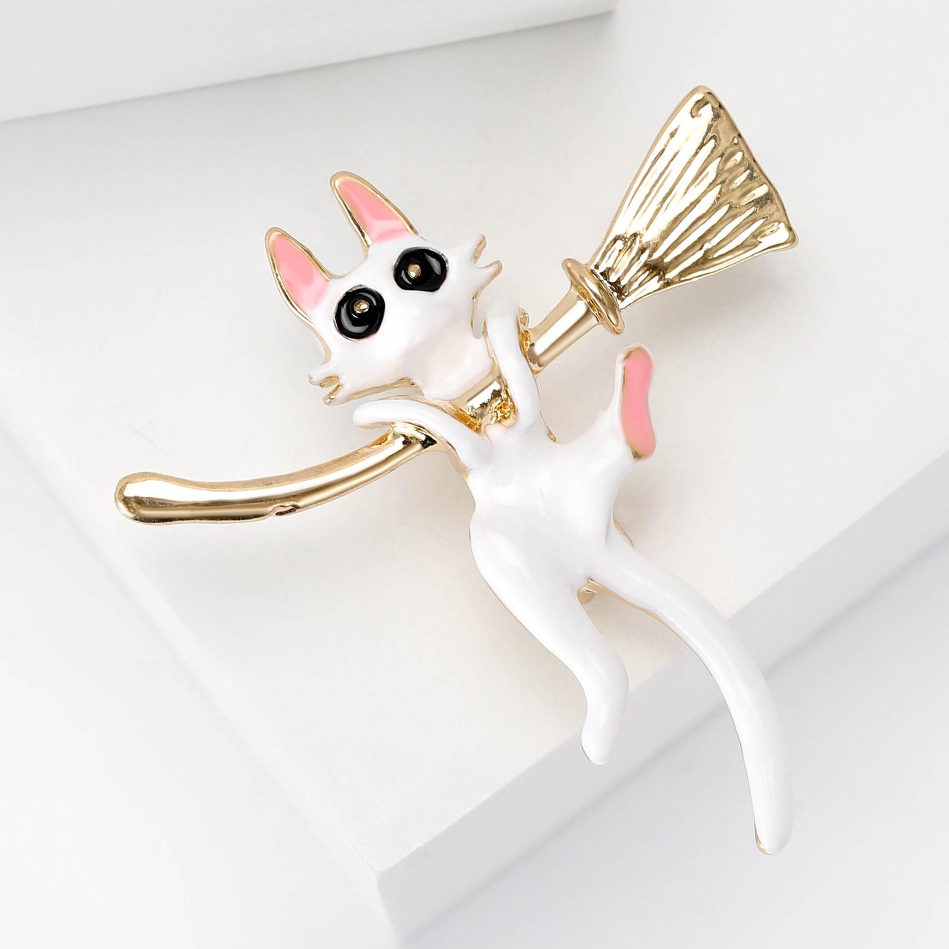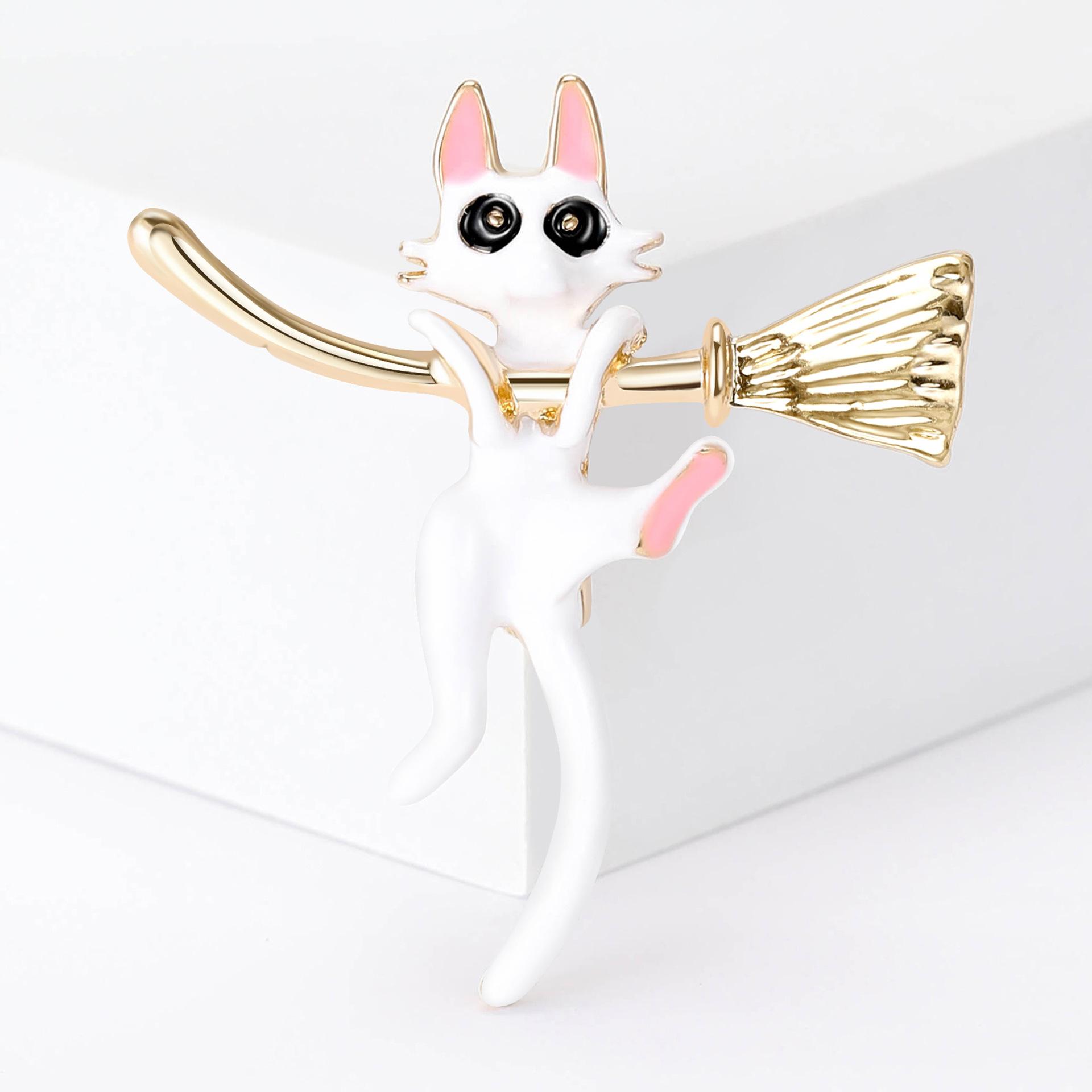Broche Nuevo Gato Escoba Gota de Aceite Esmaltado Moda Animal Pin Ropa de Mujer Corsage Joyería Regalo