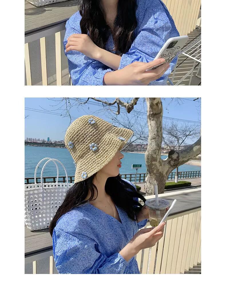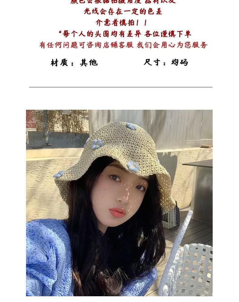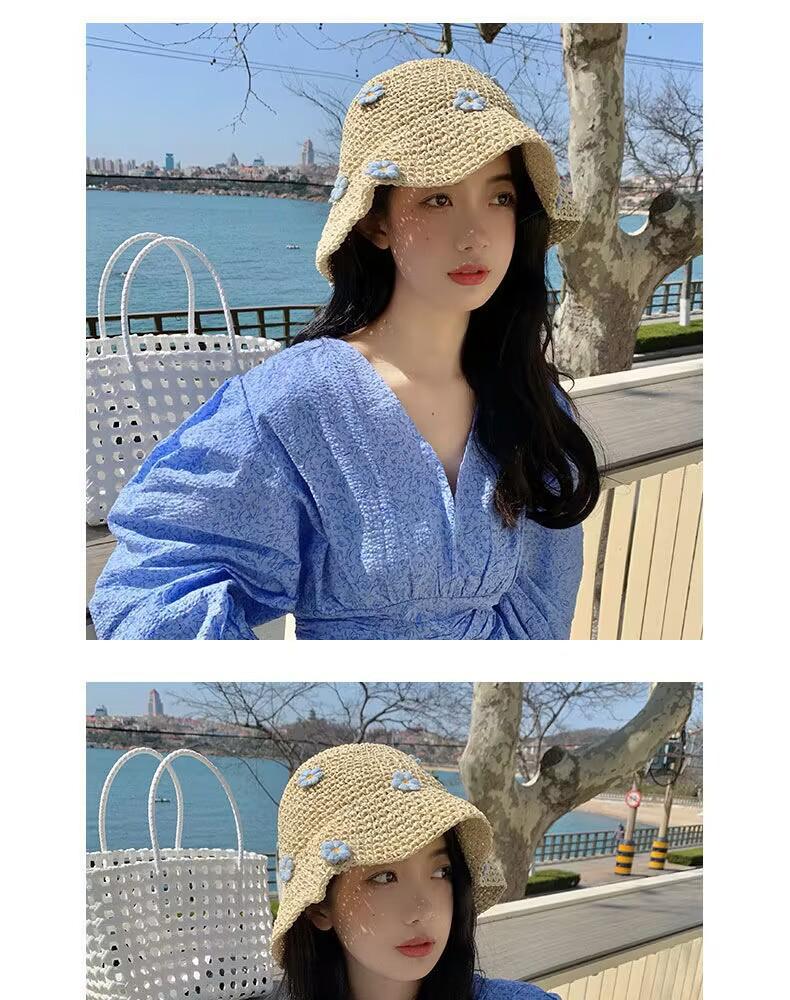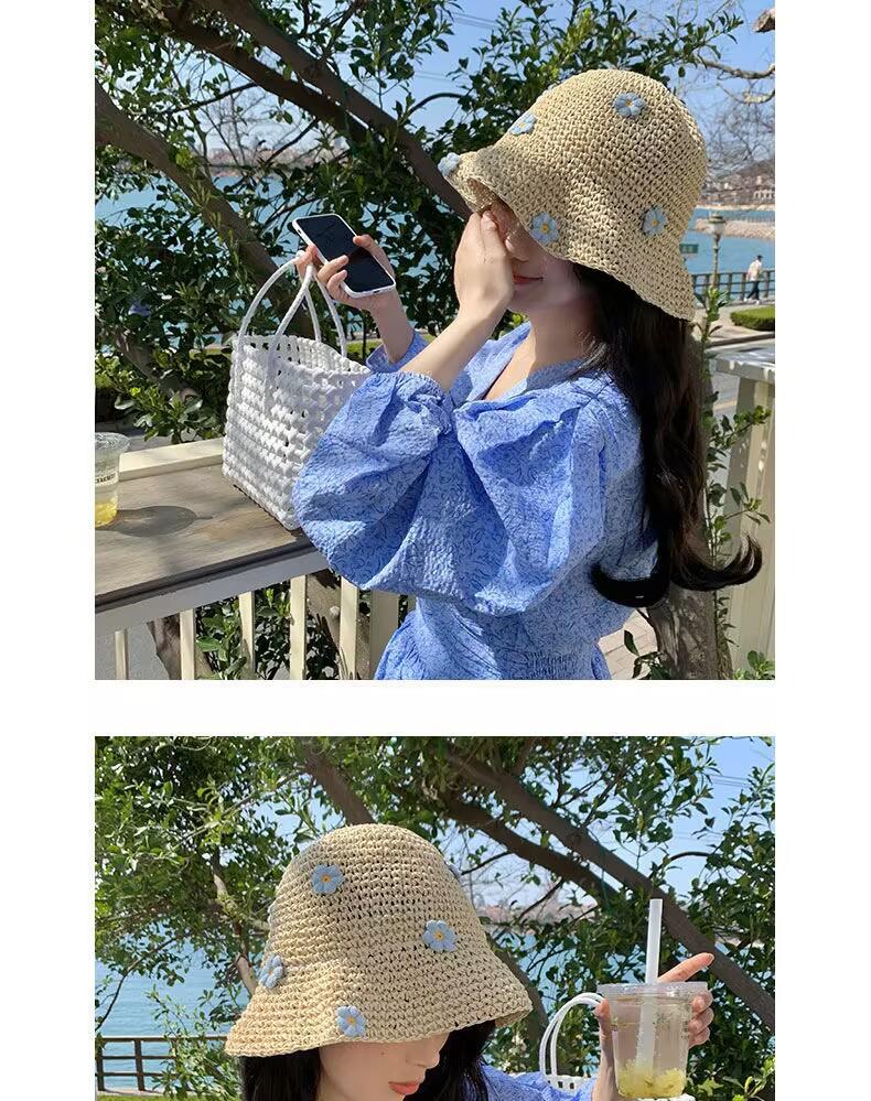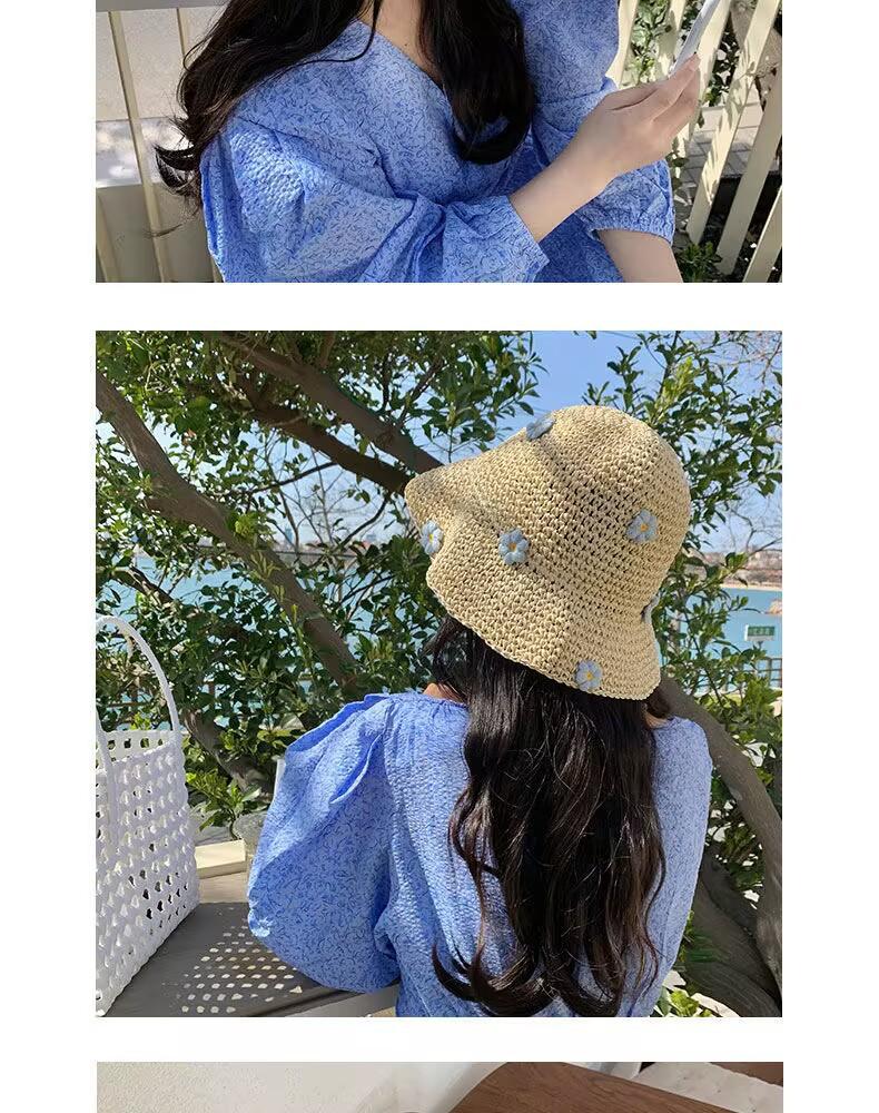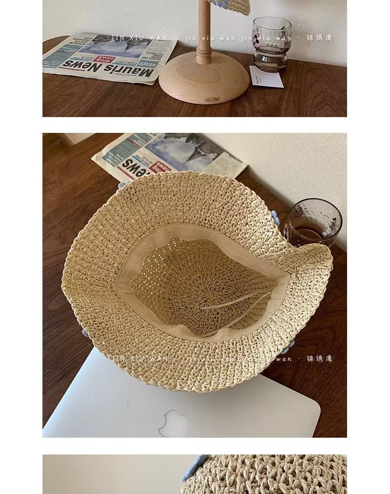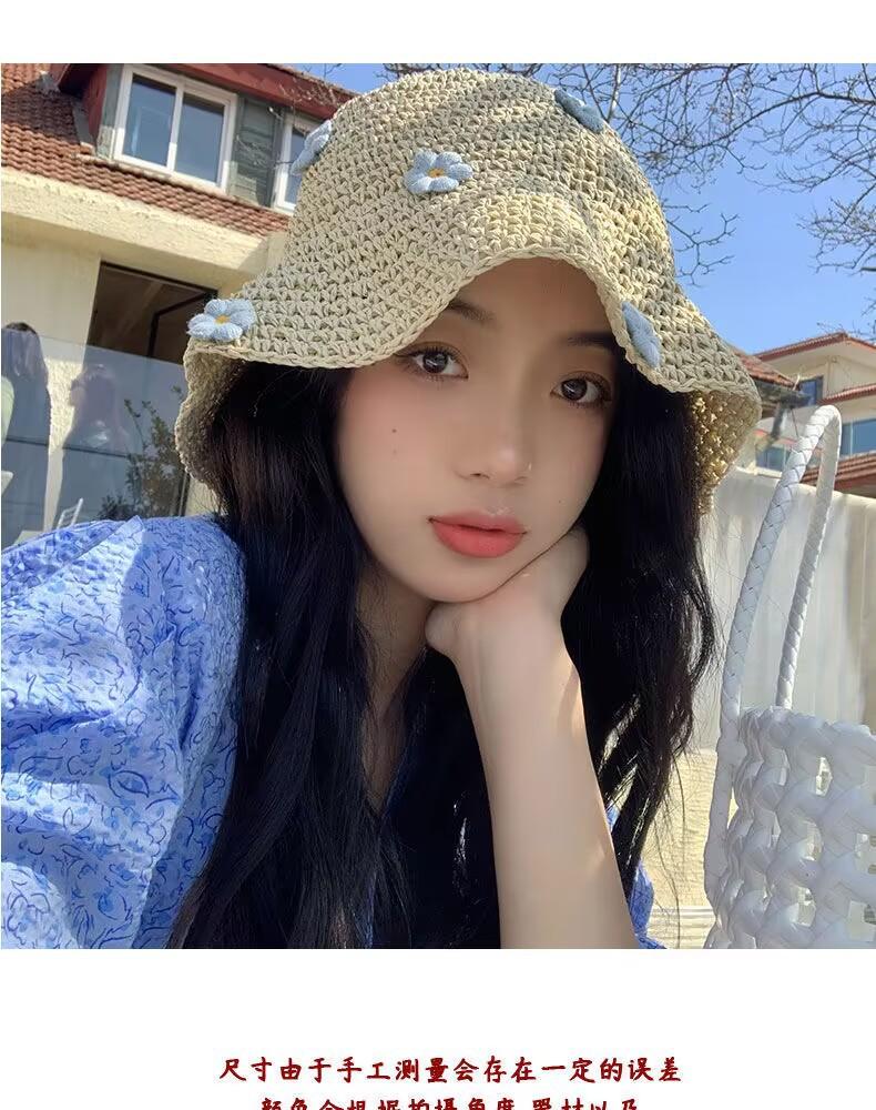 Sombrero de Paja de Flor Azul Dulce y Lindo para Mujer Ala Grande Sombrilla para la Playa de Verano Sombrero de Pescador Fresco de Moda