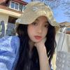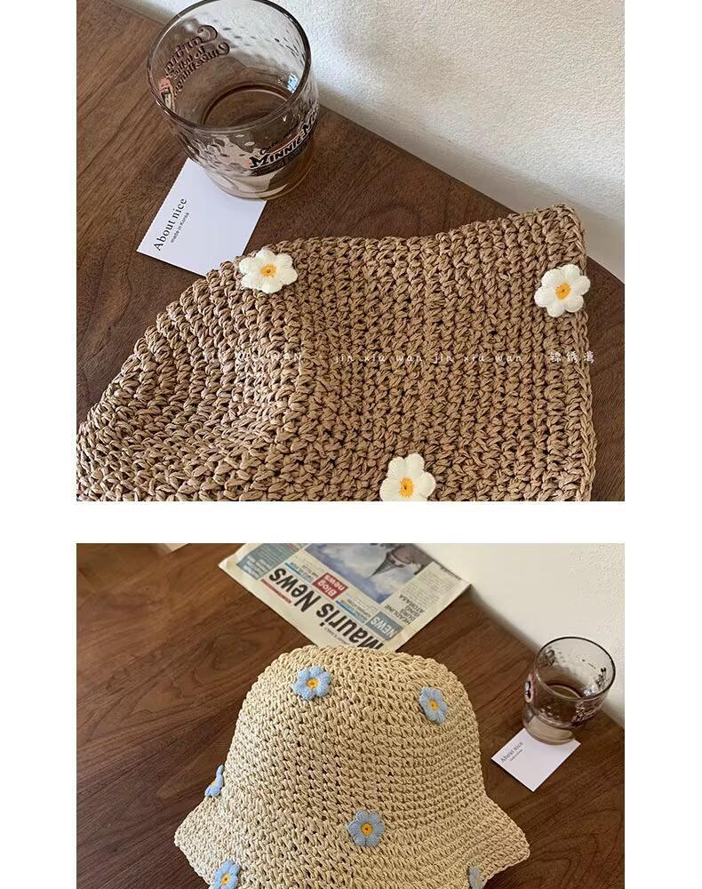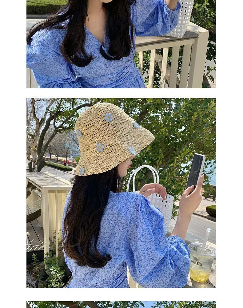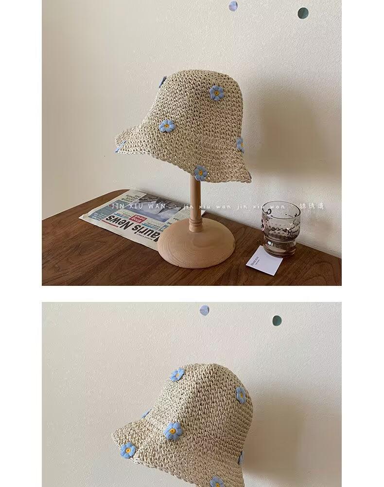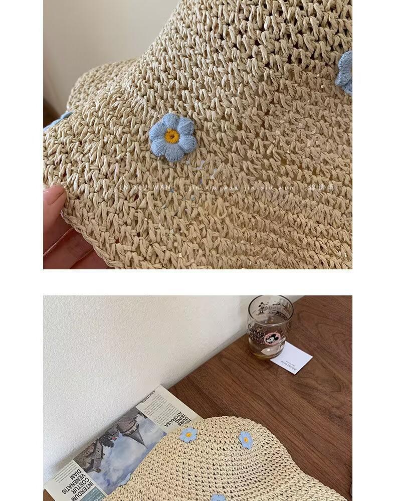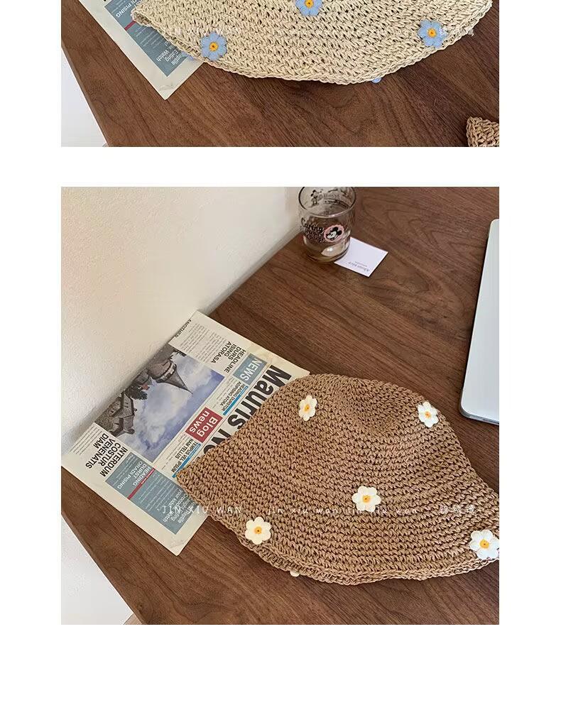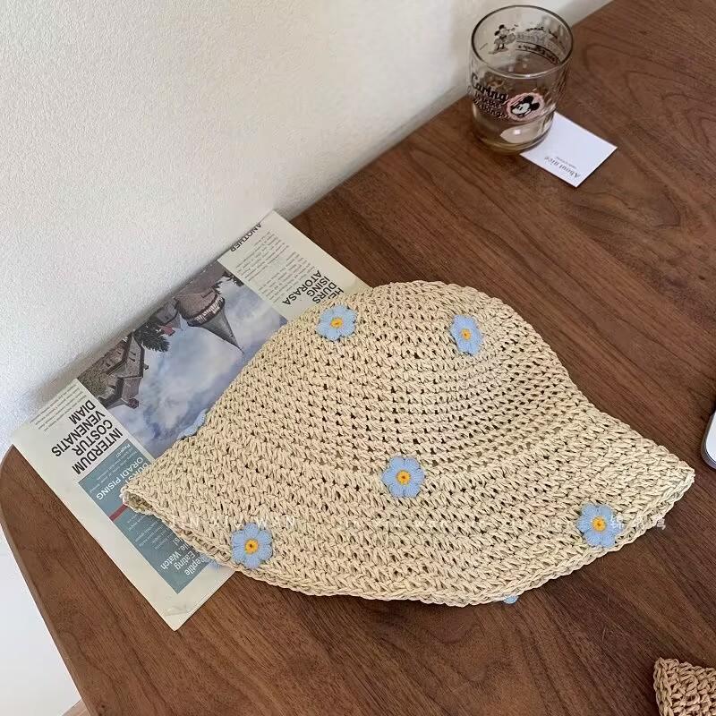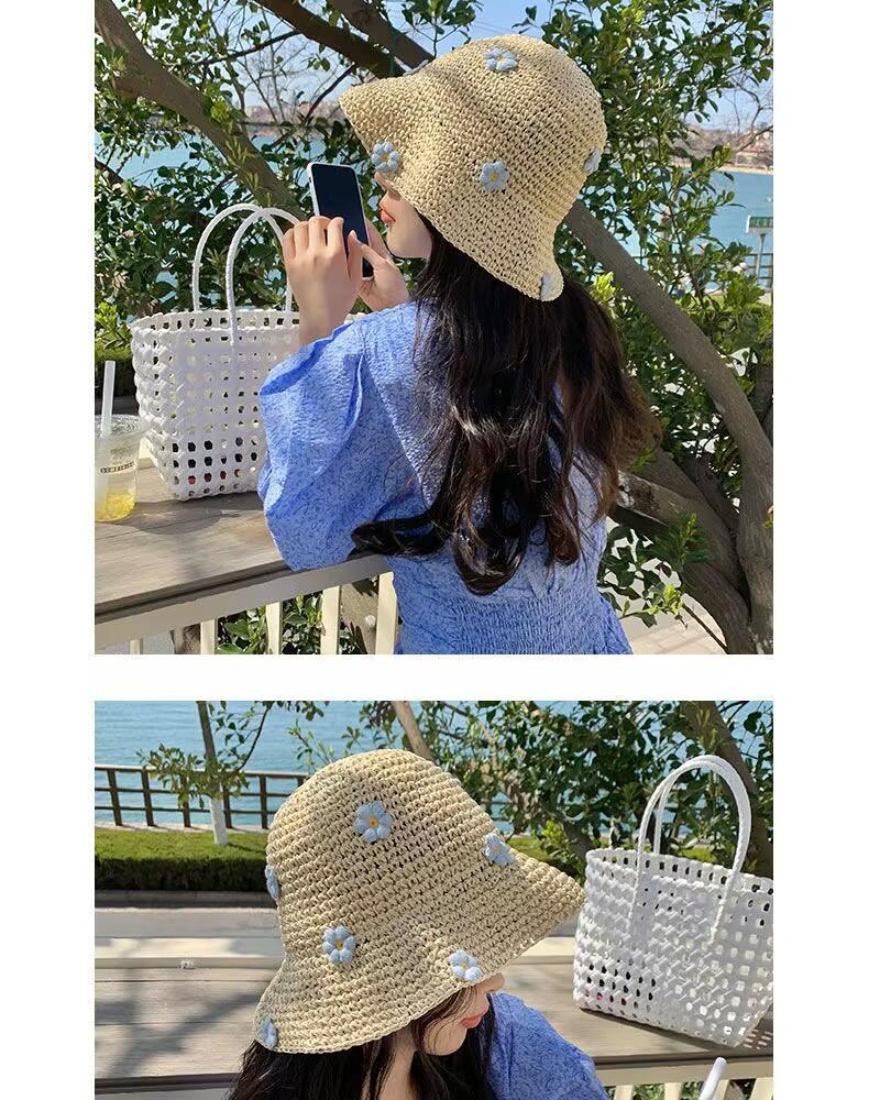 Sombrero de Paja de Flor Azul Dulce y Lindo para Mujer Ala Grande Sombrilla para la Playa de Verano Sombrero de Pescador Fresco de Moda
