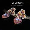 Pendientes de flores con marcado regrabado, estilo retro de mediados de la antigüedad, de alta calidad, con circonitas de oro antiguo vintage y de la industria pesada.