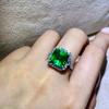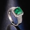 Nuevo temperamento de alta gama cuadrado simulación esmeralda turmalina anillo abierto grupo femenino incrustado anillo de circón