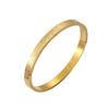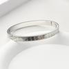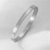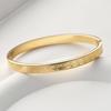 Fabricantes de pulseras de acero de titanio al por mayor, pulsera ajustable abierta en forma de C, pulsera femenina de acero inoxidable con logotipo de texto grabado.