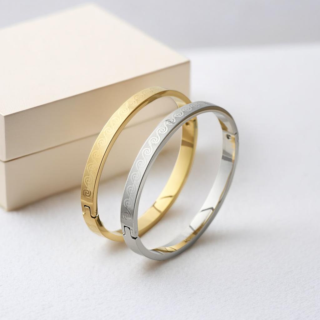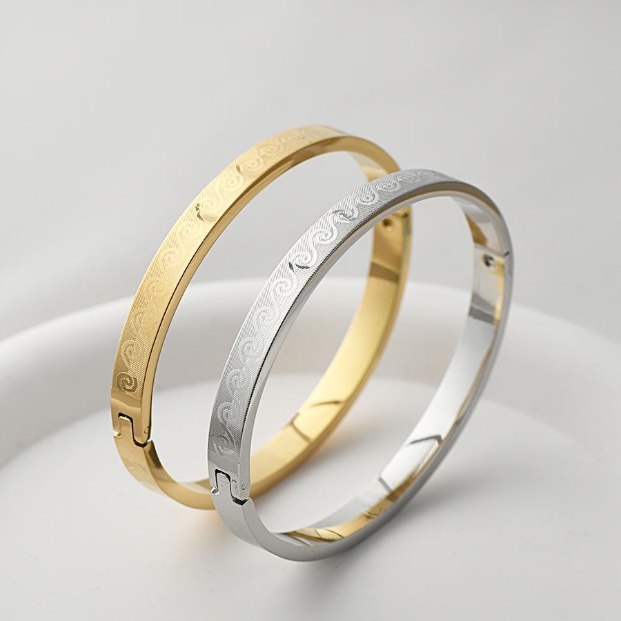 Pulsera Transfronteriza Nueva de Acero de Titanio Creativa Simple Corrosión Patrón de Onda Hebilla Pulsera para Pareja Joyería de Acero Inoxidable