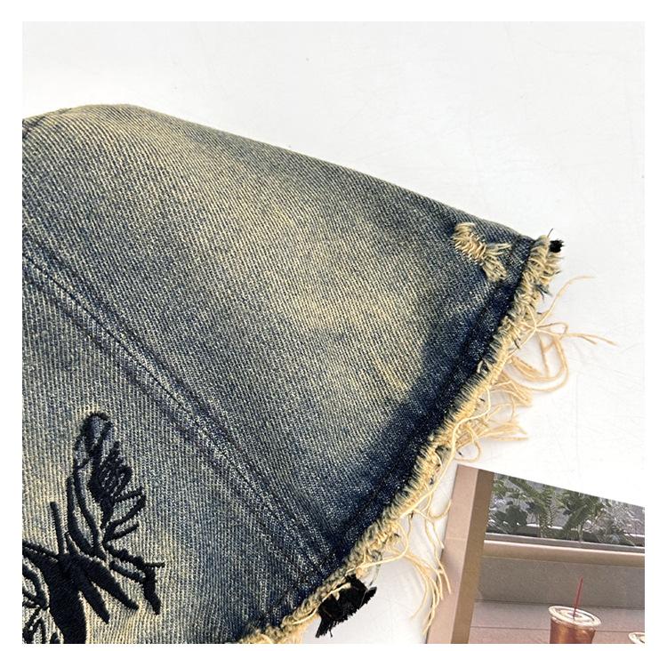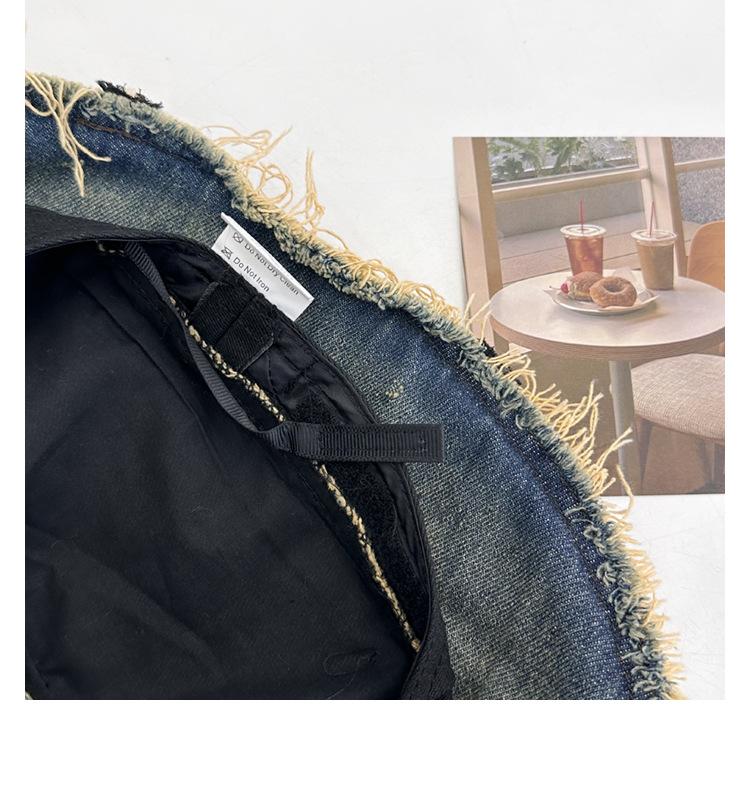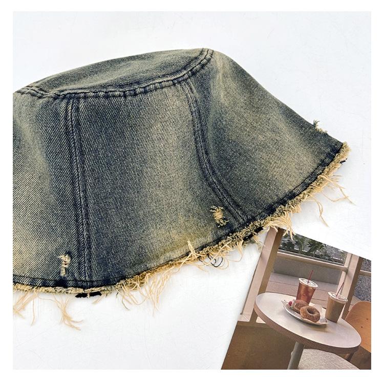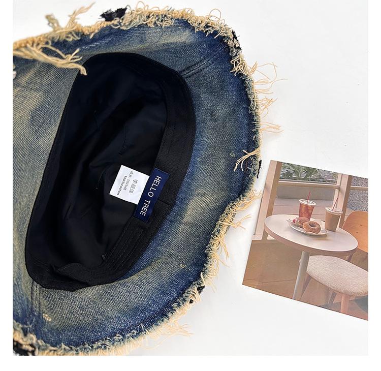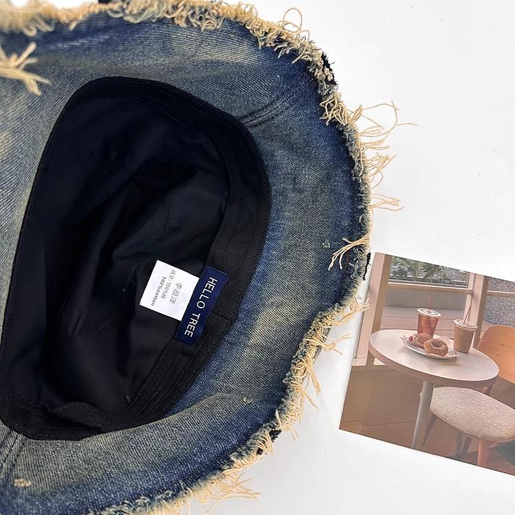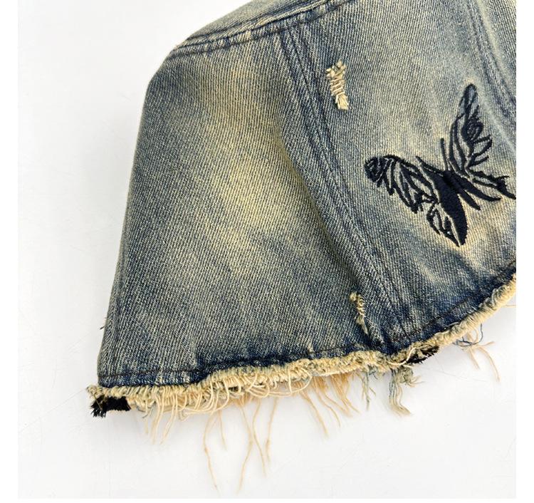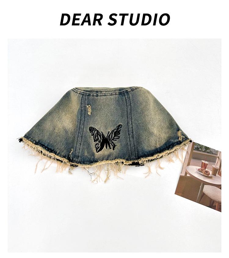 Sombrero de Cubo de Mezclilla de Mariposa Coreano Nuevo Estilo Vintage Ins Retro Lavado Desgastado para Mujer, Sombrero Versátil de Moda para Primavera y Verano