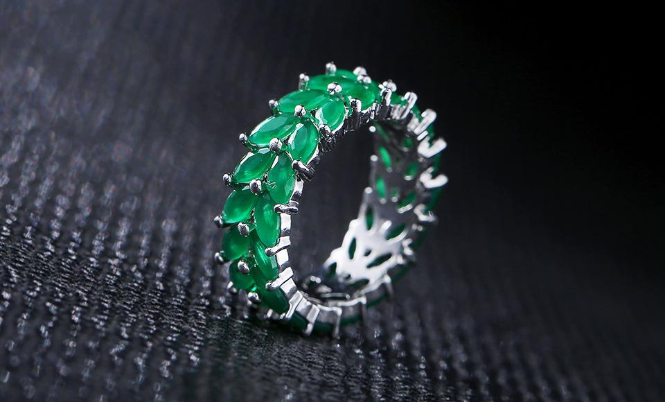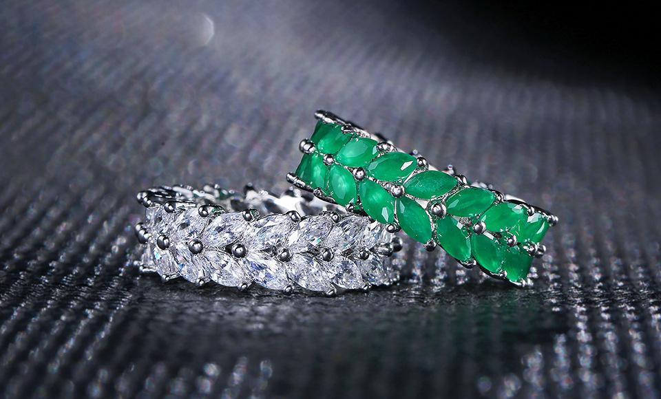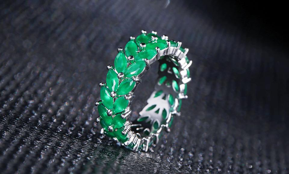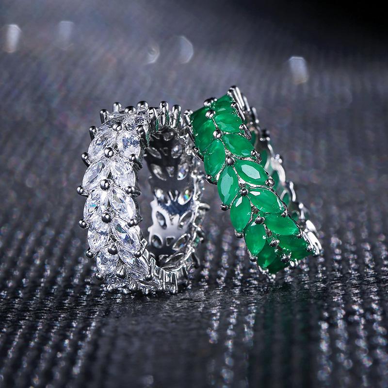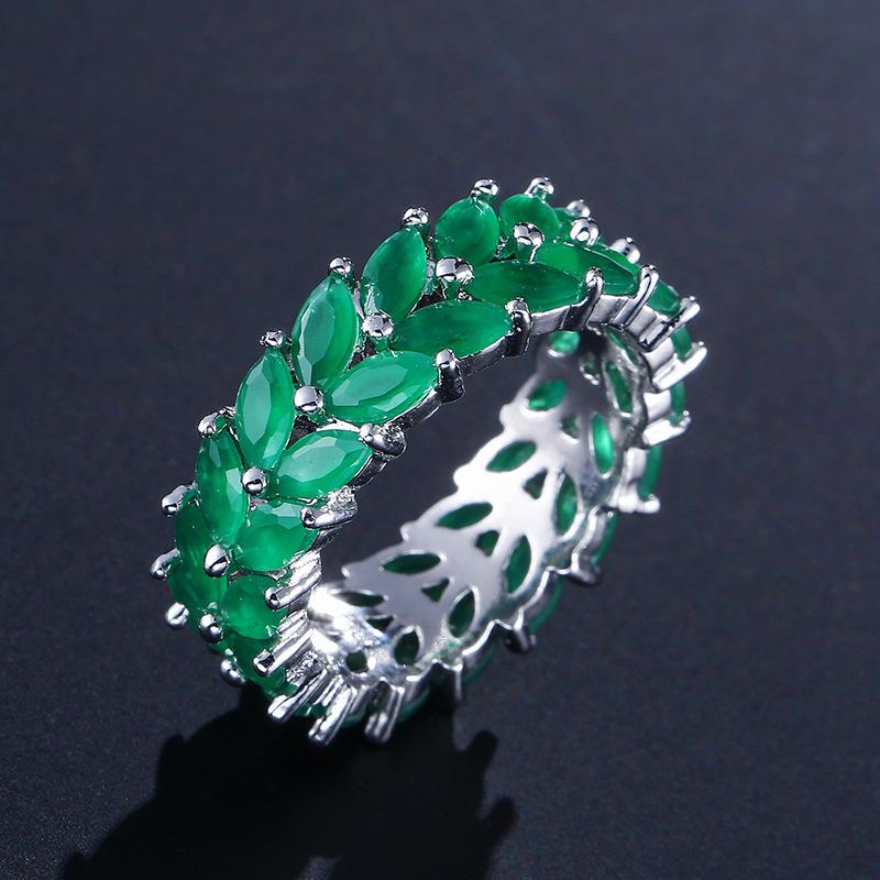 RAKOL Diseño Nicho Clásico Creativo Anillo de Trigo para Mujer Europeo y Americano Lujo Ligero Retro Anillo de Zircón Esmeralda