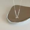 Collar con colgante de metal de dos lazos para mujer con plata rota, personalidad retro, collar de temperamento simple que combina con todo, cadena de clavícula