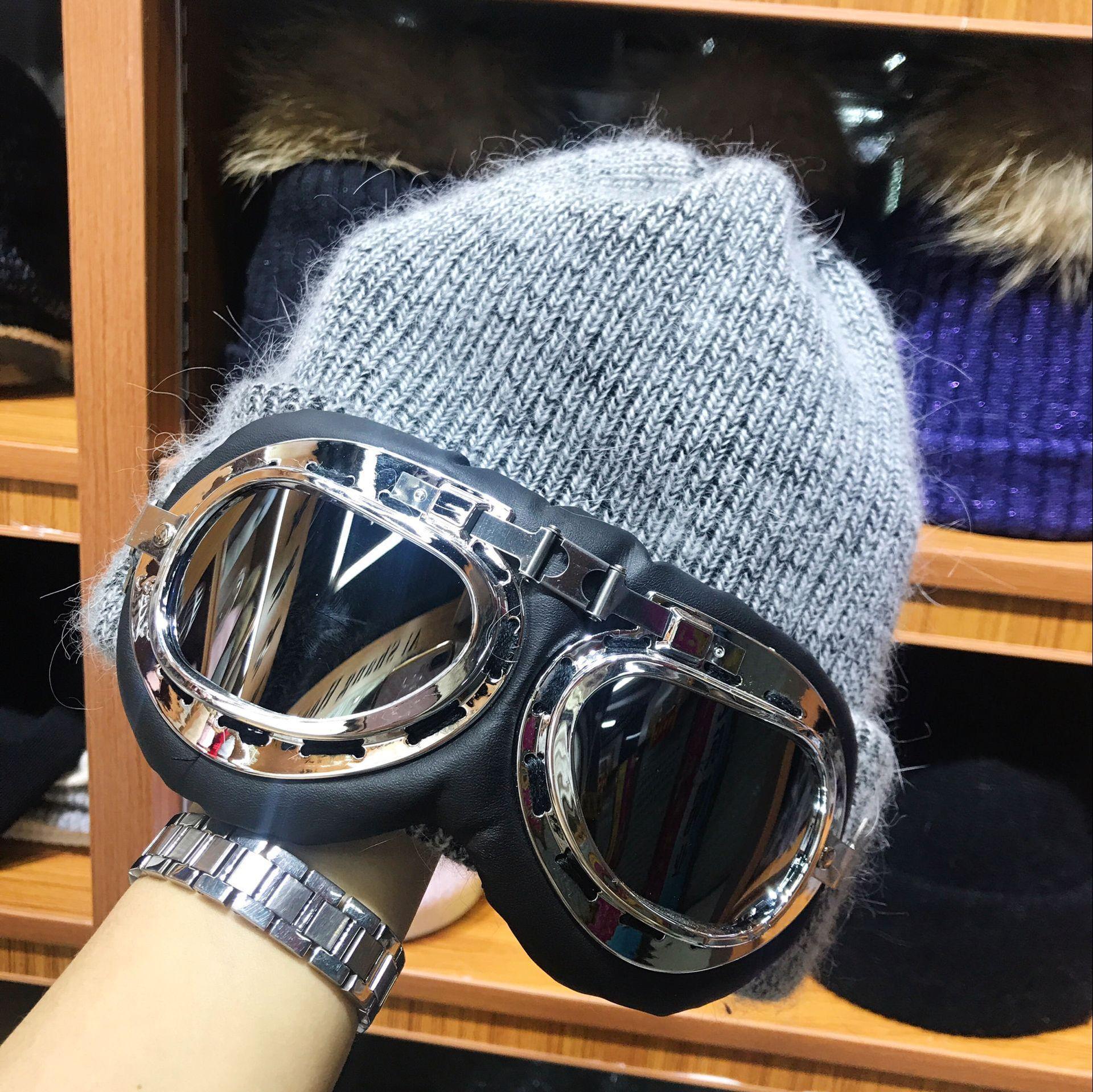 Selecciones de Influencer Gafas de Sol de Piloto Sombrero de Lana para Mujer Otoño e Invierno Protección para los Oídos Cálido Sombrero Tejido de Piel de Conejo Moderno Elegante Tendencia