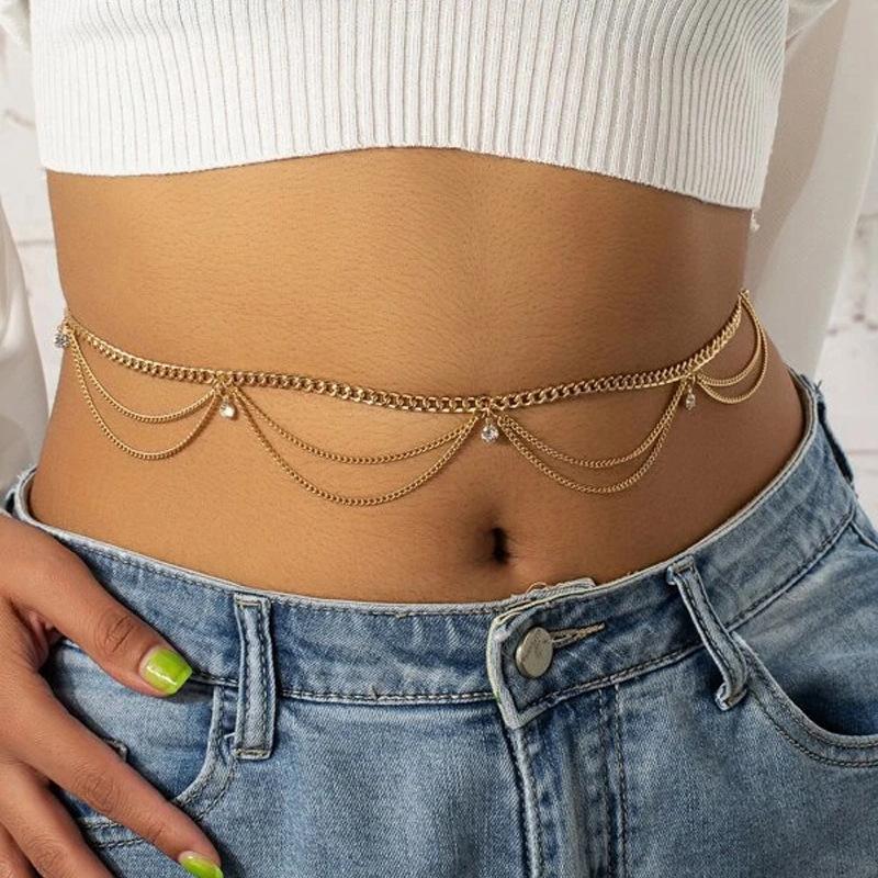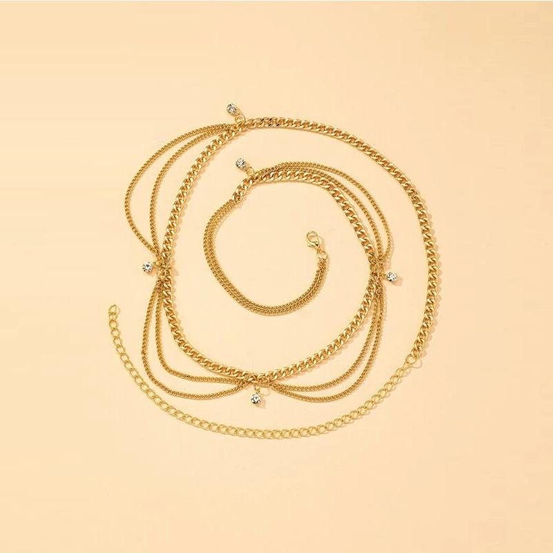 Joyería de moda transfronteriza europea y americana, cadena corporal con borlas de playa sexy, colgante de diamantes con personalidad simple, cadena para el pecho para mujer