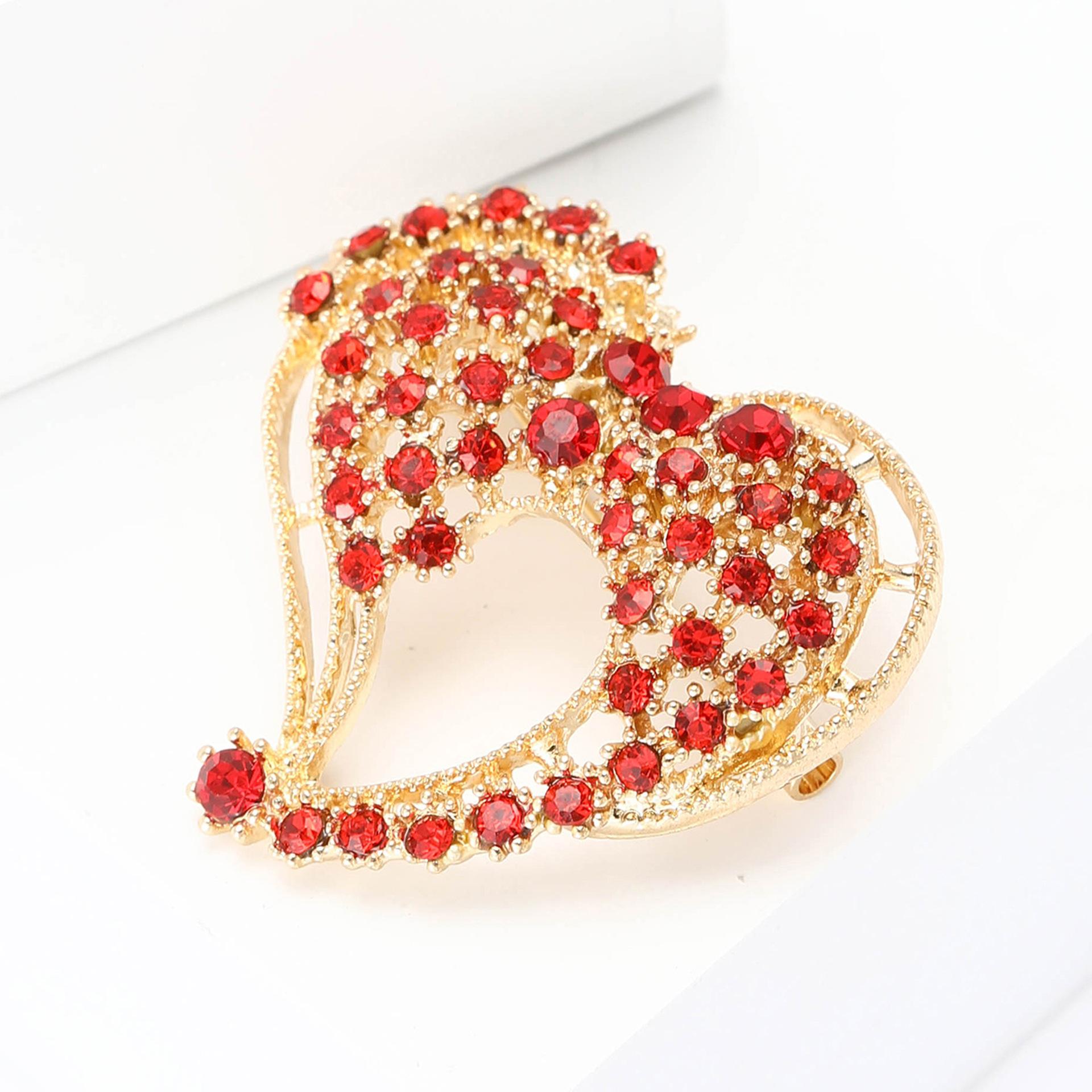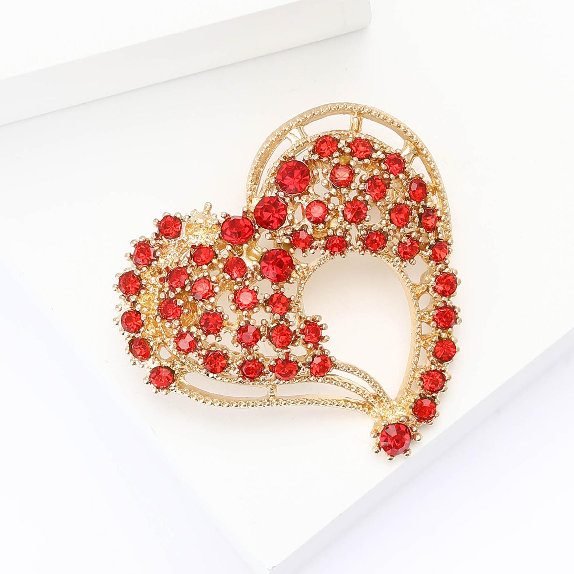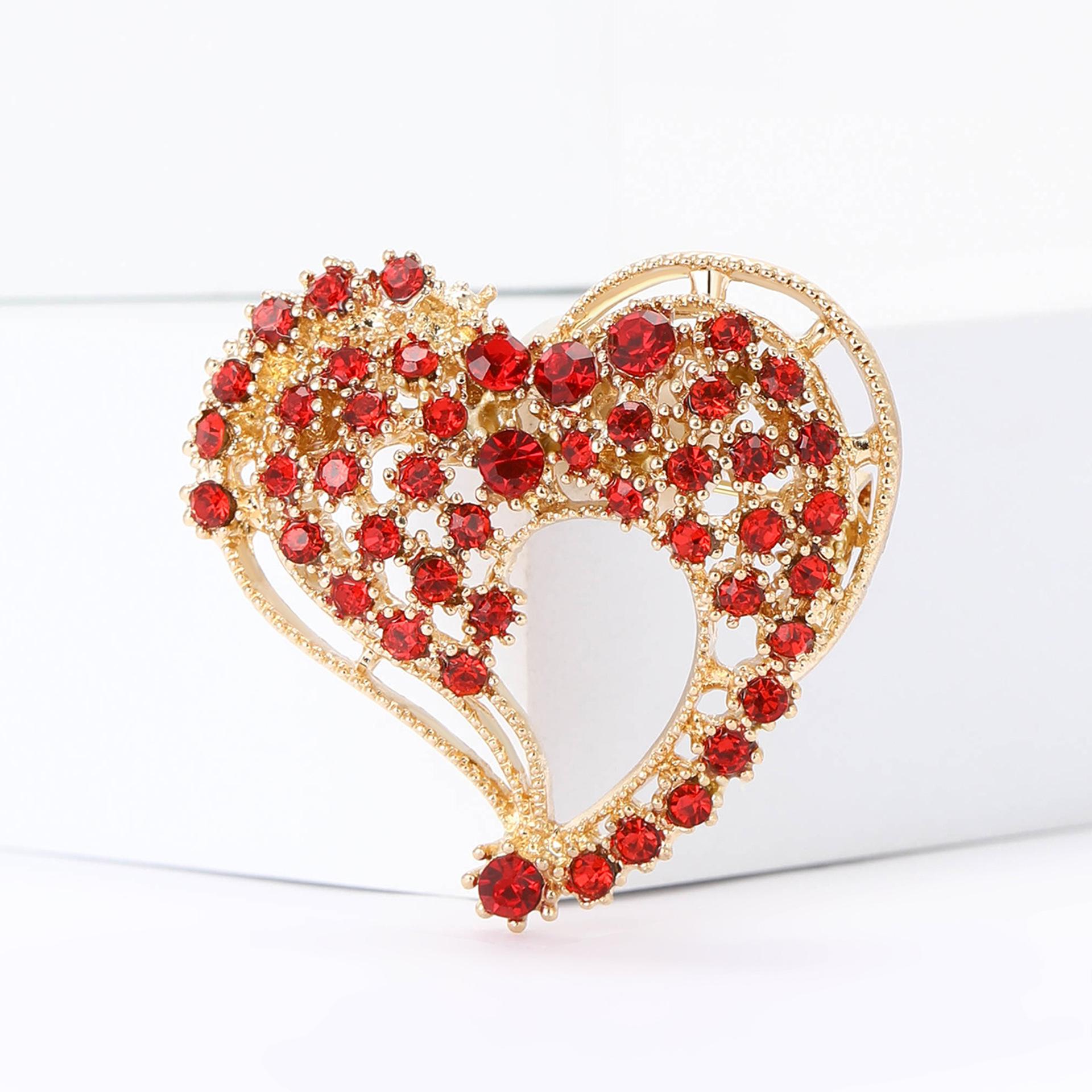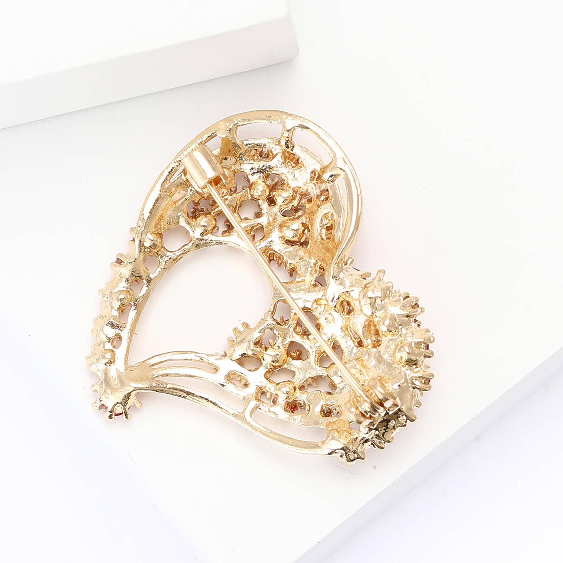Broche de aleación con diamantes de imitación para mujer, estilo coreano, con forma de corazón, ideal para combinar con todo tipo de trajes, cárdigan, ramillete y alfiler de joyería.