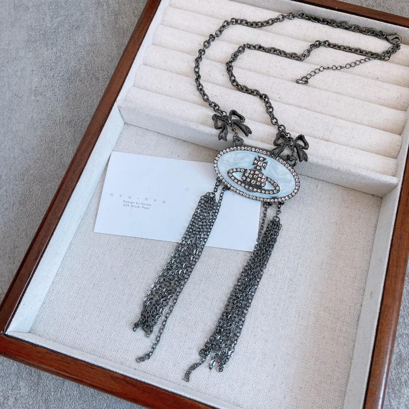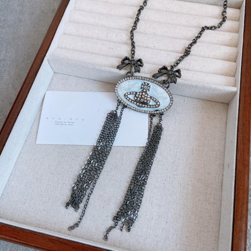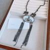 Collar de moda con borlas de planeta y lazo de diamantes de imitación, cadena de clavícula larga, elegante, de lujo, de gran sentido.