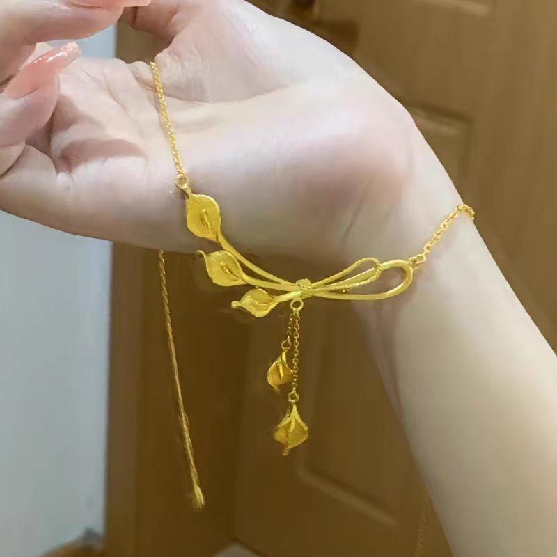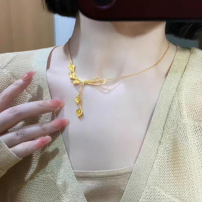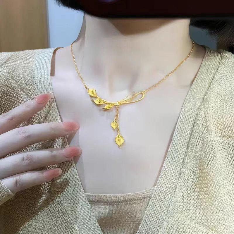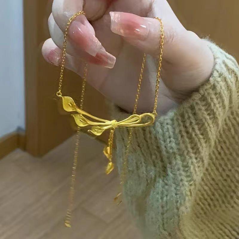 Collar de lirio de cala para mujer, conjunto de borlas con lazo de oro vietnamita, cadena de clavícula elegante y de moda, regalo de cumpleaños de alta calidad