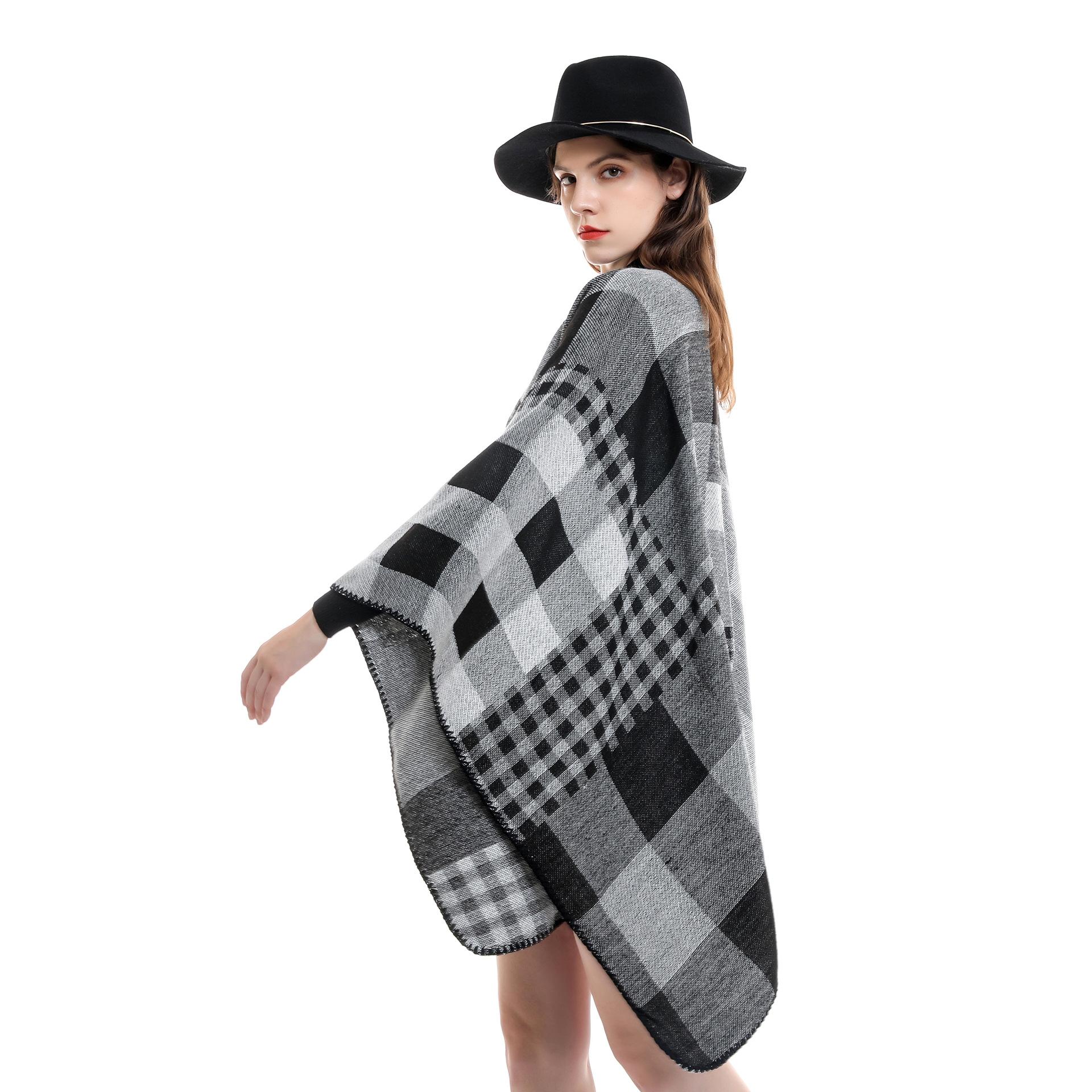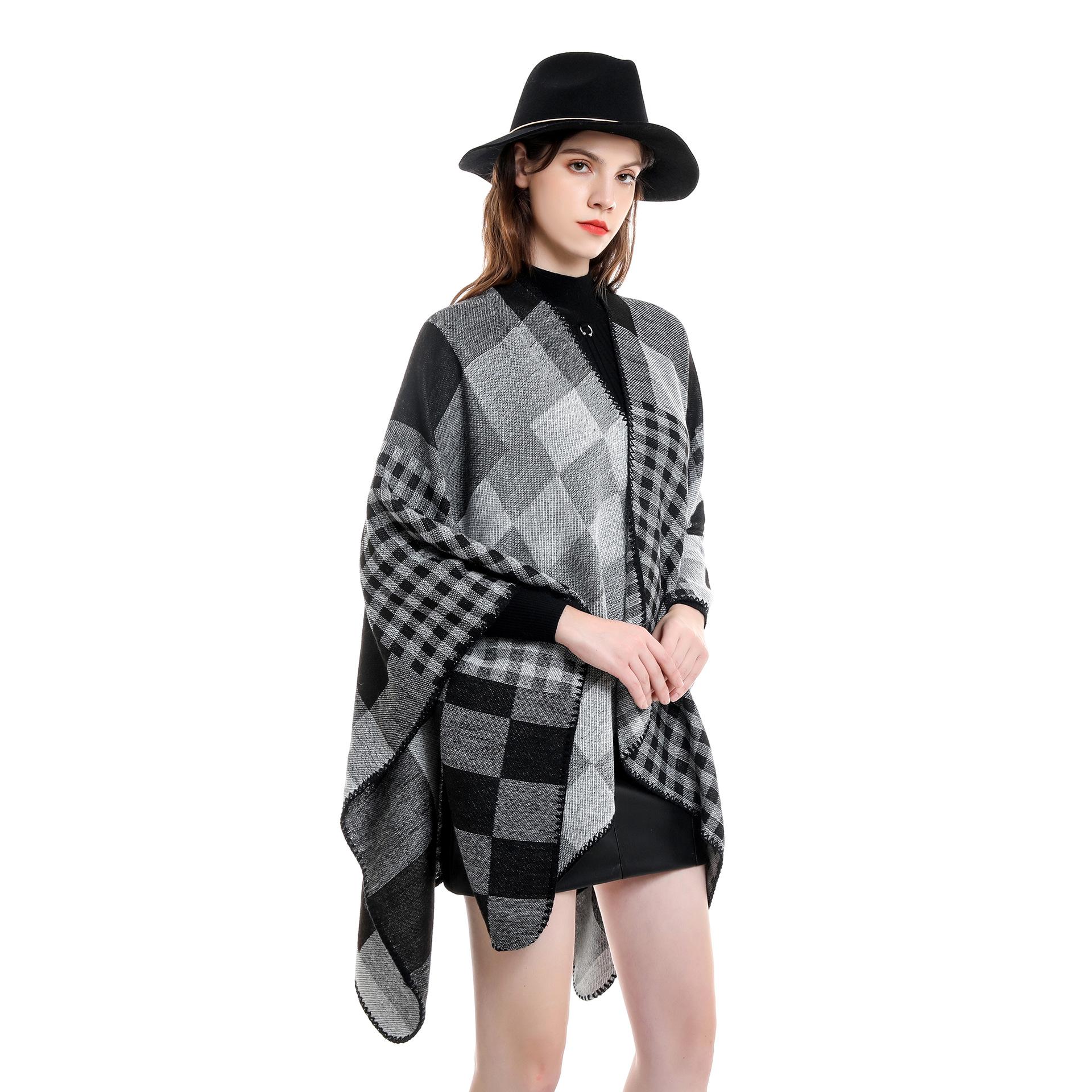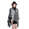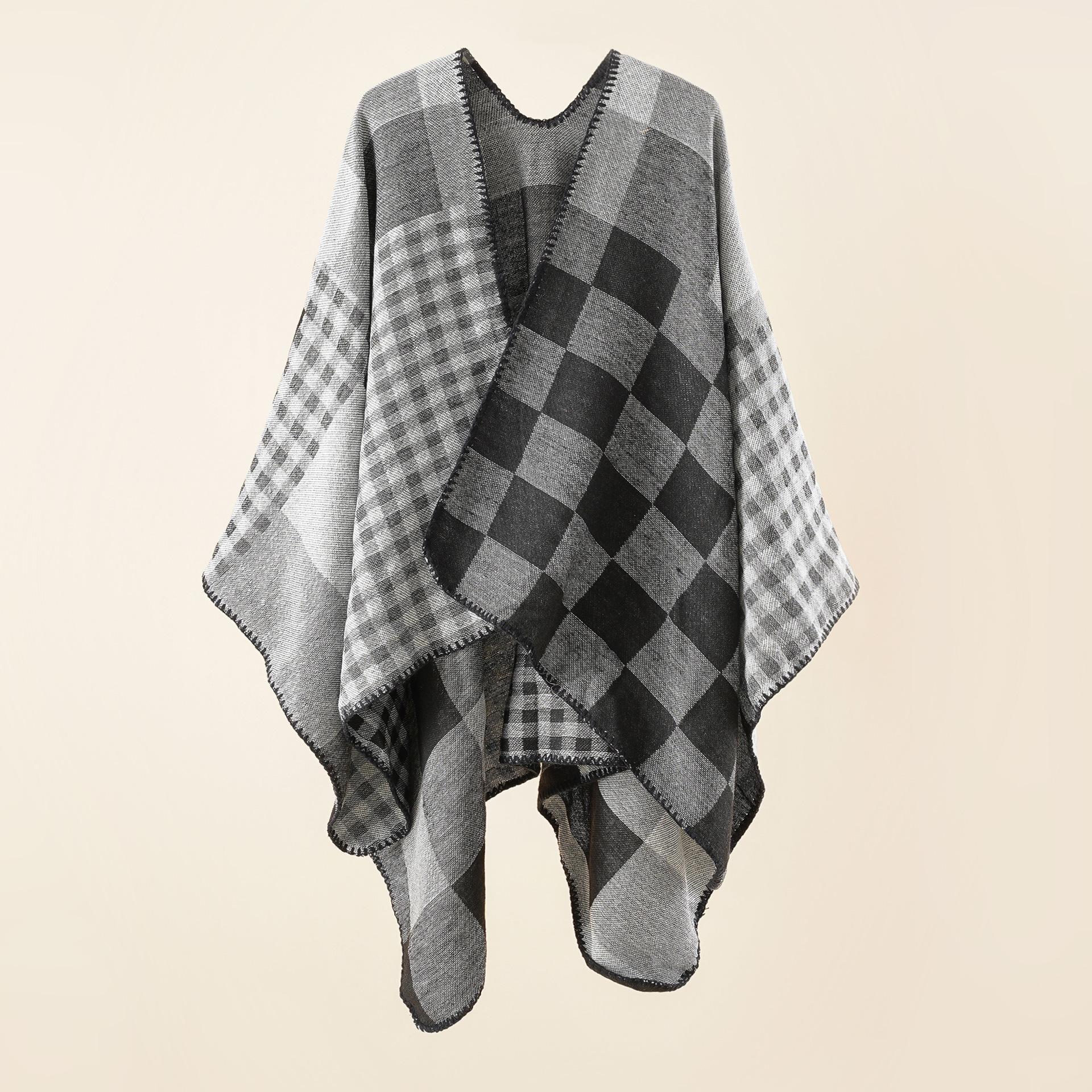 Capa de flecos a cuadros en blanco y negro con chal sencillo de comercio exterior transfronterizo, capa cálida de otoño e invierno, capa de calle europea y americana