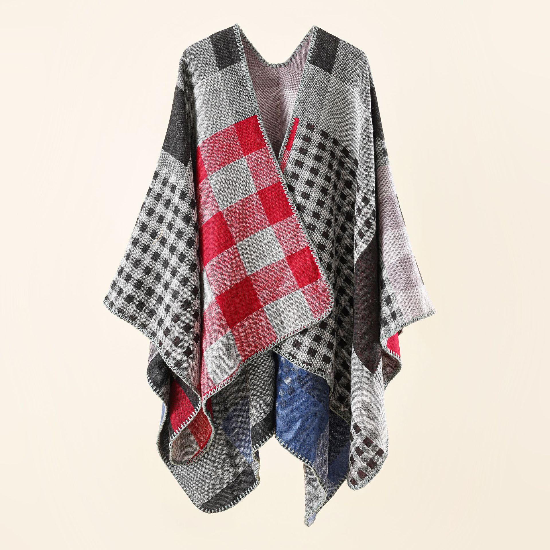 Capa exterior tipo chal a cuadros europeos y americanos con degradado de Amazon transfronterizo 2024, capa exterior cálida con borlas para otoño e invierno