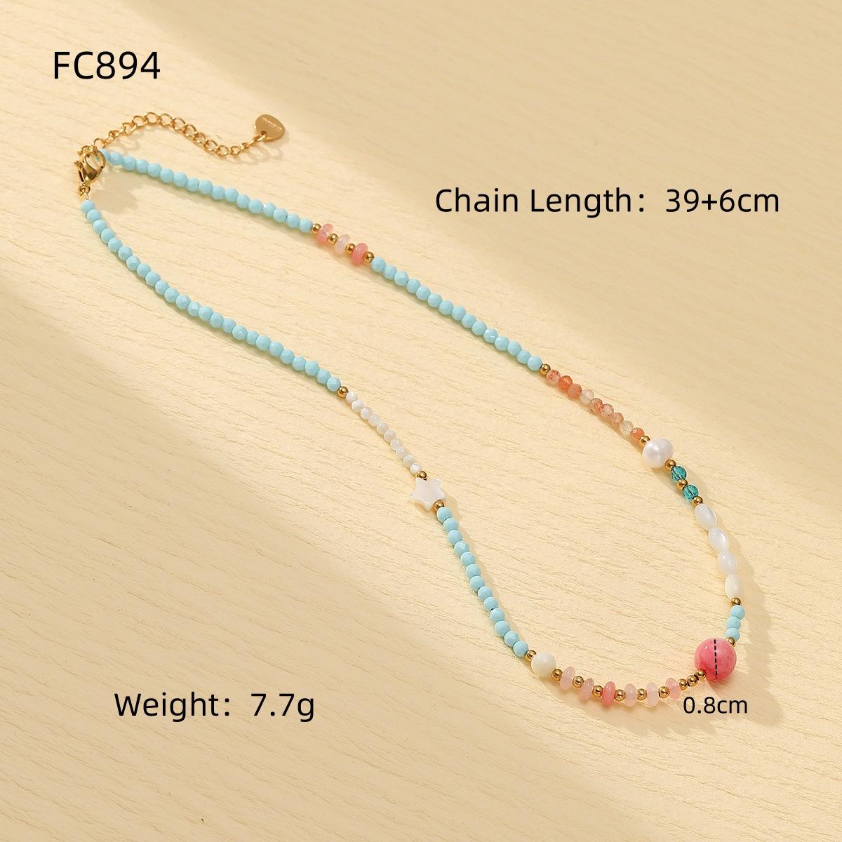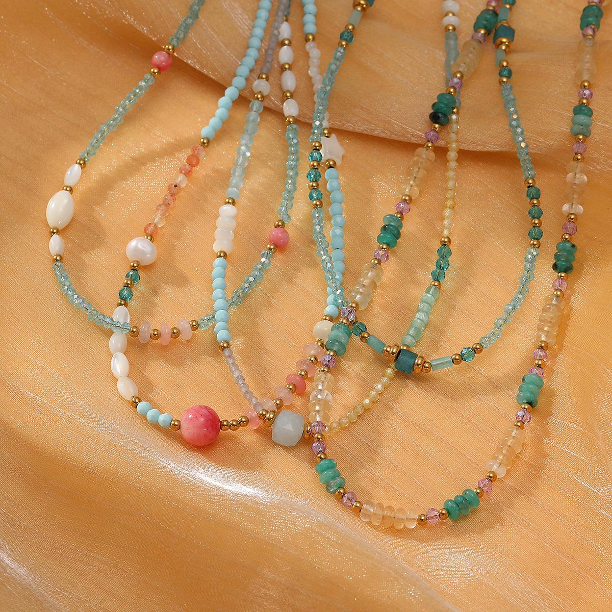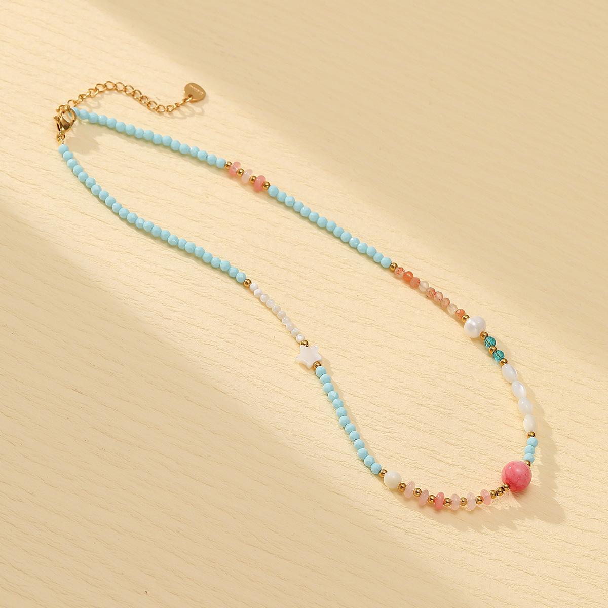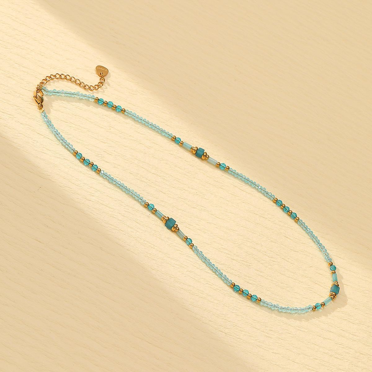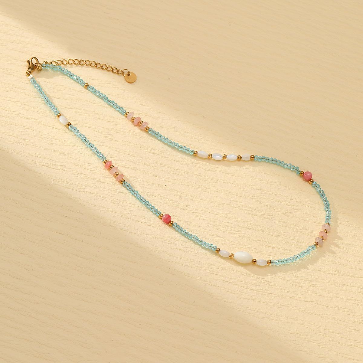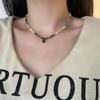 Nuevo Collar de Acero de Titanio con Cuentas a Mano de Piedra Natural Azul Moda Lujo Ligero Versátil Colgante de Perla de Agua Dulce de Alta Gama