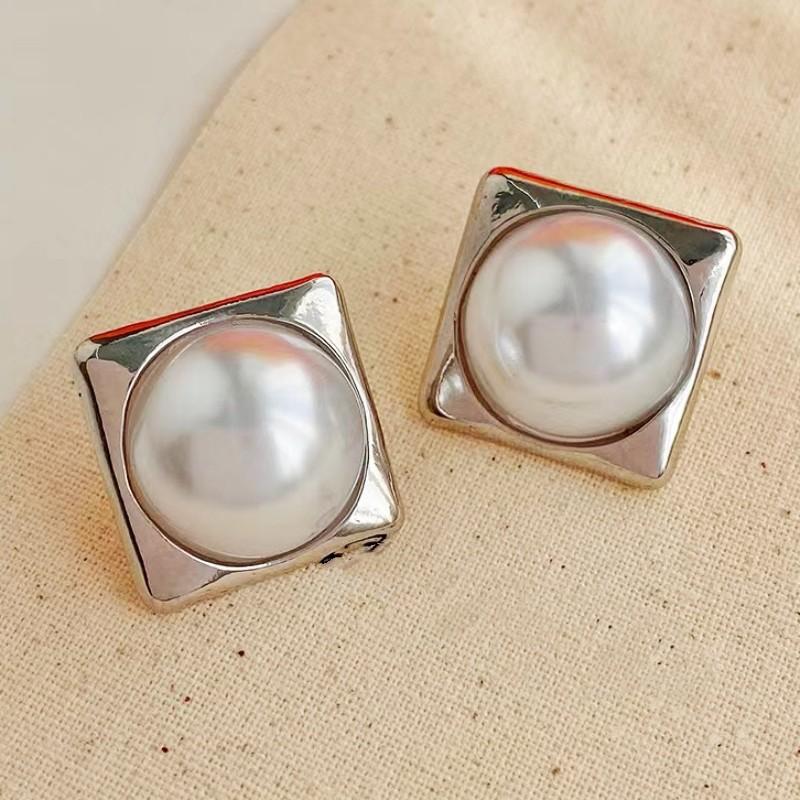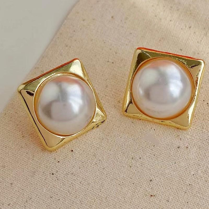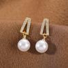 Aretes de Perlas Geométricos Cuadrados Elegantes Simples y a la Moda para Mujeres Aretes de Diseño Nicho de Alta Gama Aretes Exquisitos