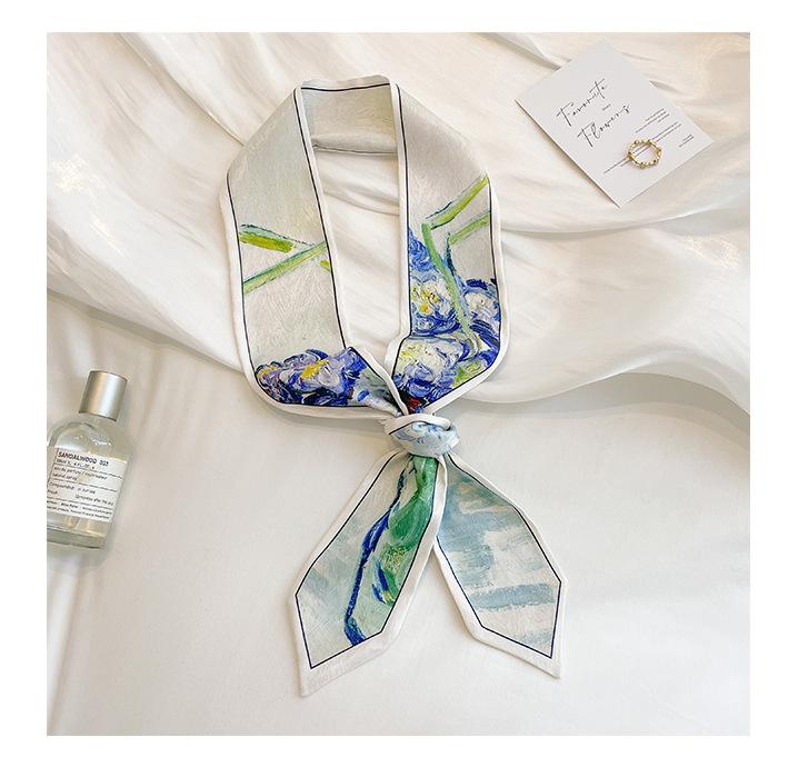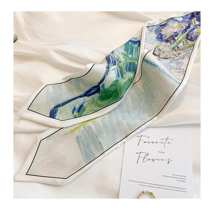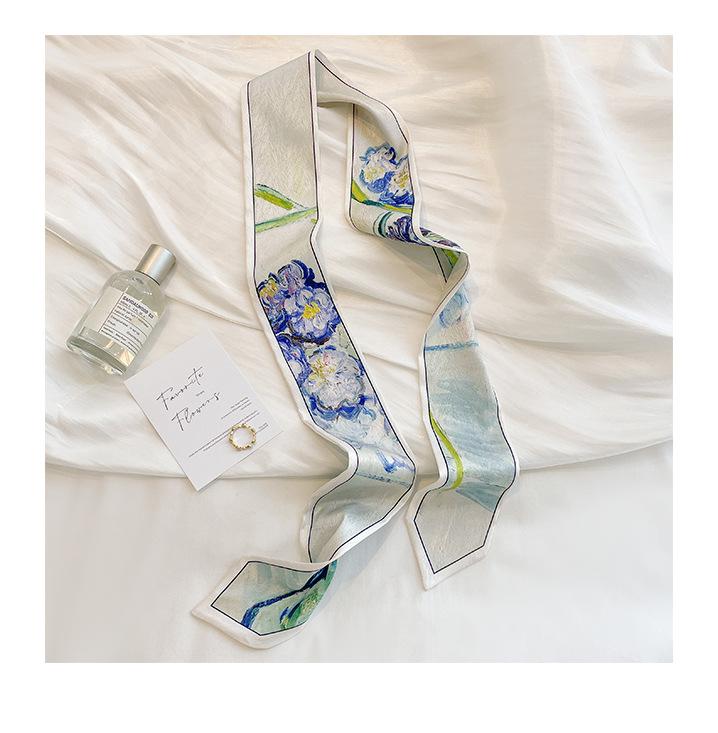 Primavera y Verano Delgado Cinta Estrecha Estilo ins Correa de Bolso Estilo Pintura al Óleo Cinta Pequeña Bufanda Larga Cinturón Versátil Moda Cinturón para el Cabello