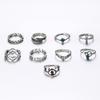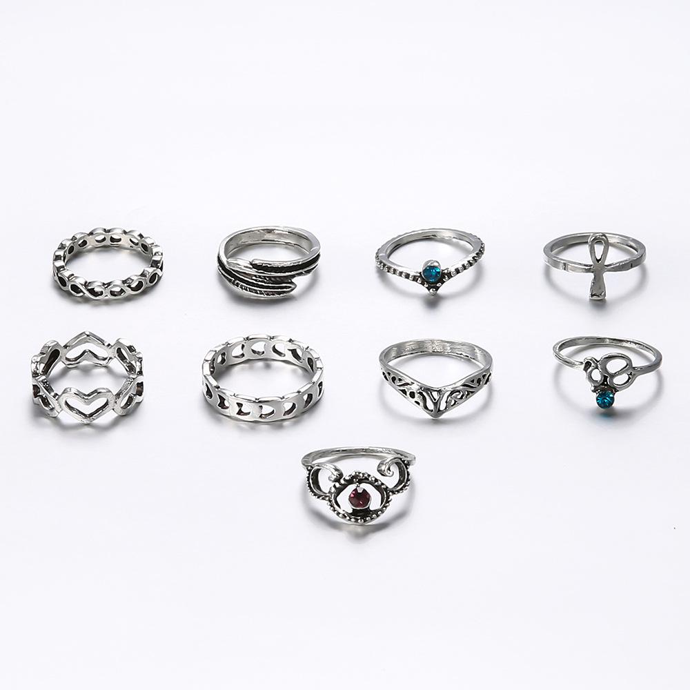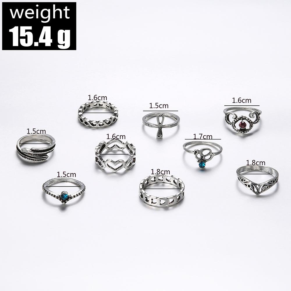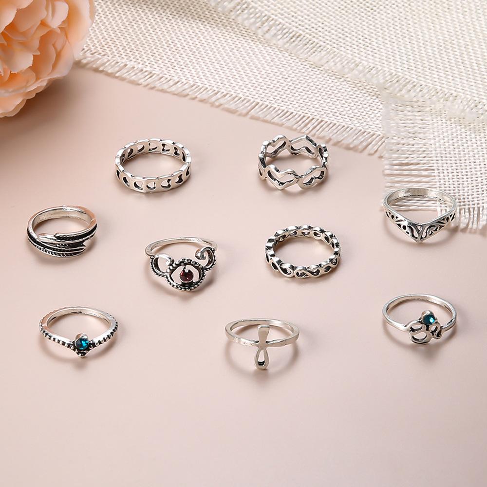 Anillo europeo y americano de comercio exterior nuevo retro con gema incrustada hueco tallado articulado anillo hueco Amor anillo de 9 piezas