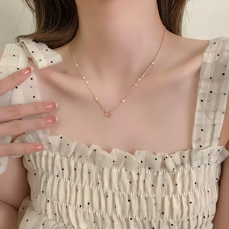 Collar de Amor de Perla Pequeña Simple de Moda Diseño Nicho Femenino de Alta Gama Versátil Cadena Clavícula Accesorios Regalo para Novia