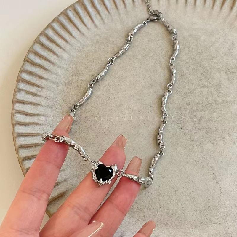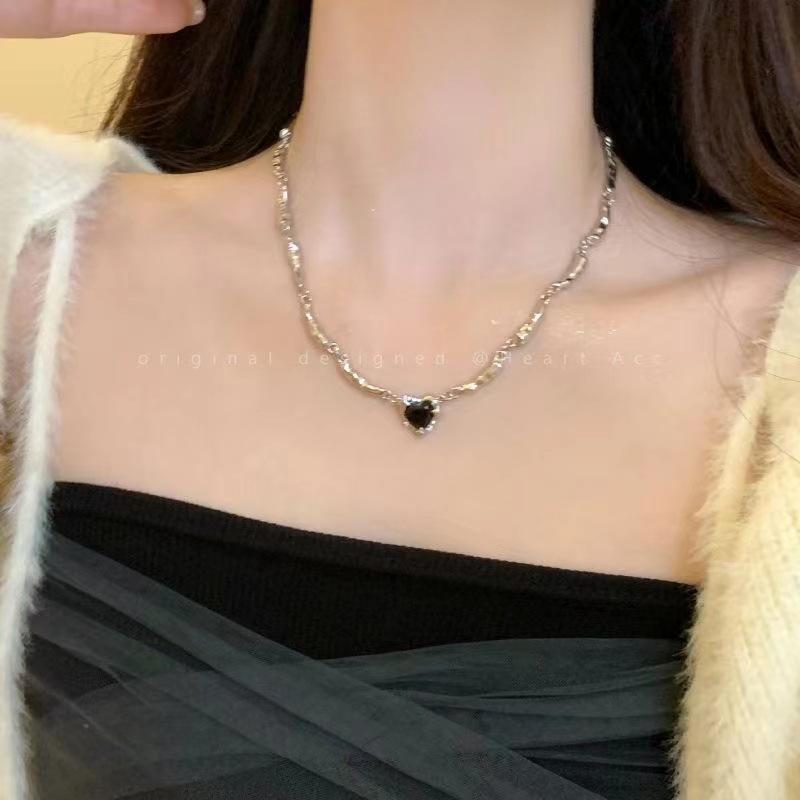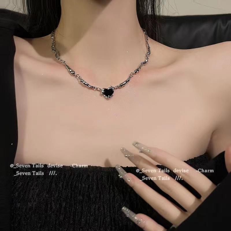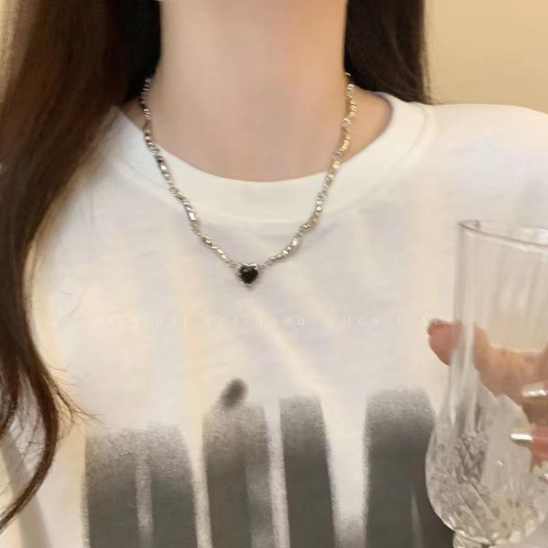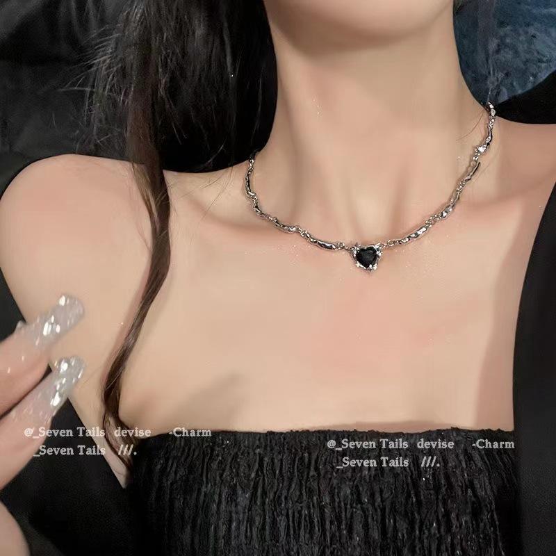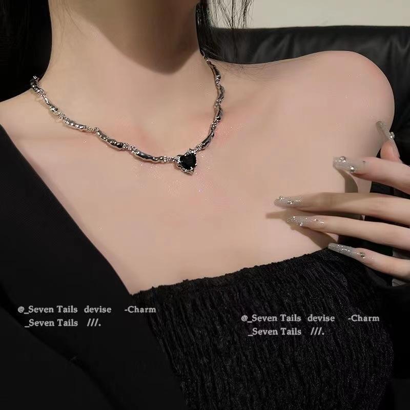 Cadena de clavícula ligera, de lujo, de alta gama, dulce y fresca, con viento frío, exquisito collar de moda de nicho, cadena de cuello de amor negro, estilo hip hop