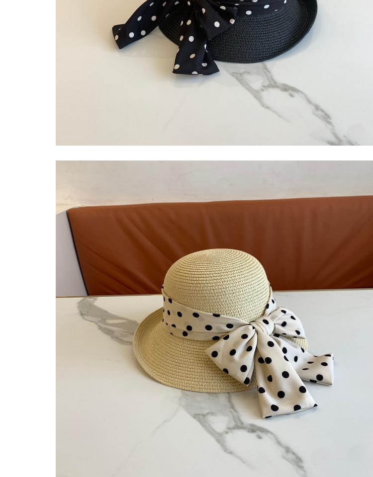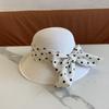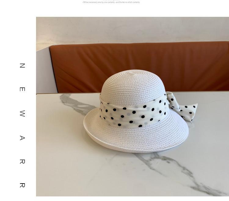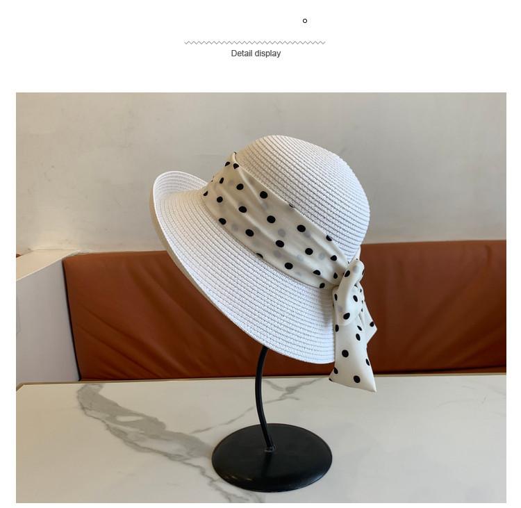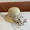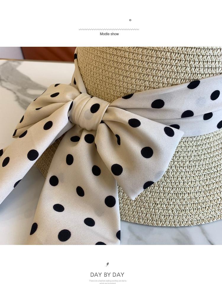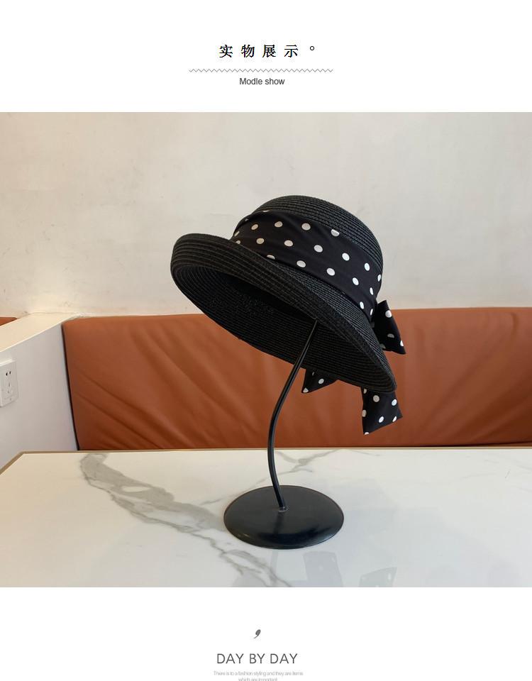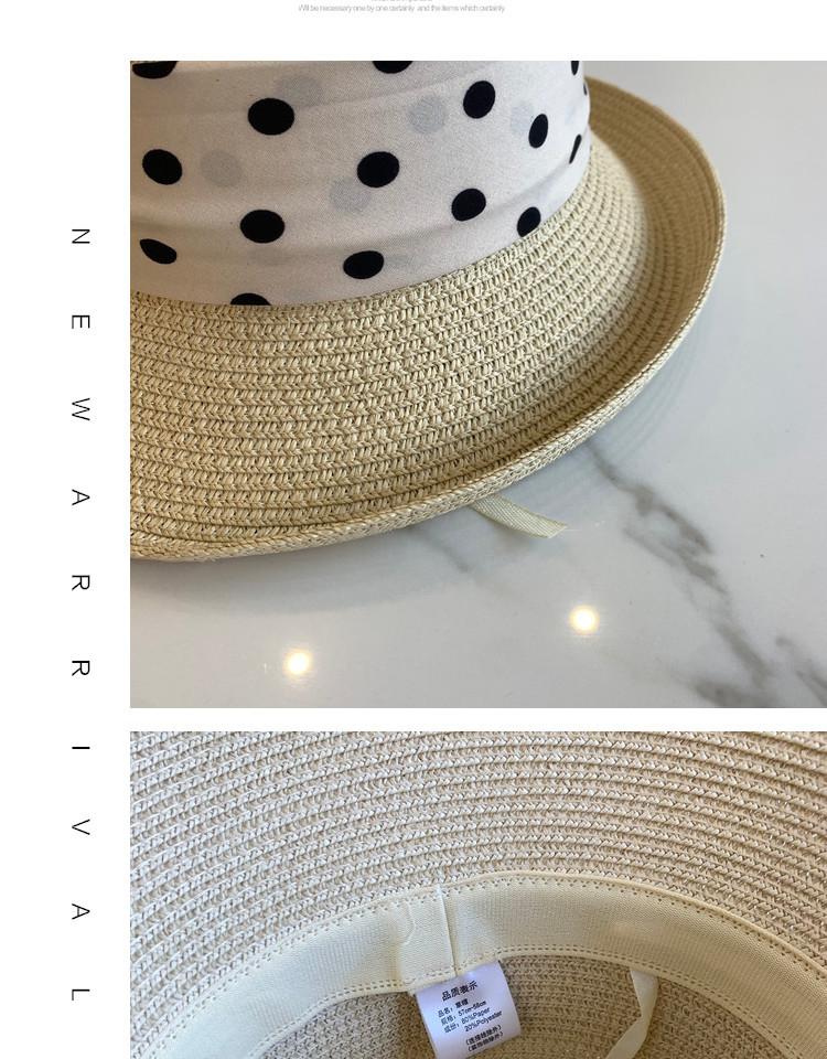 Sombrero de Paja para Mujer Versátil Moda Casual Domo Sombrero Protector Solar Cinta de Lunares Nuevo Verano Sombrero de Playa para Viaje