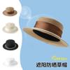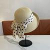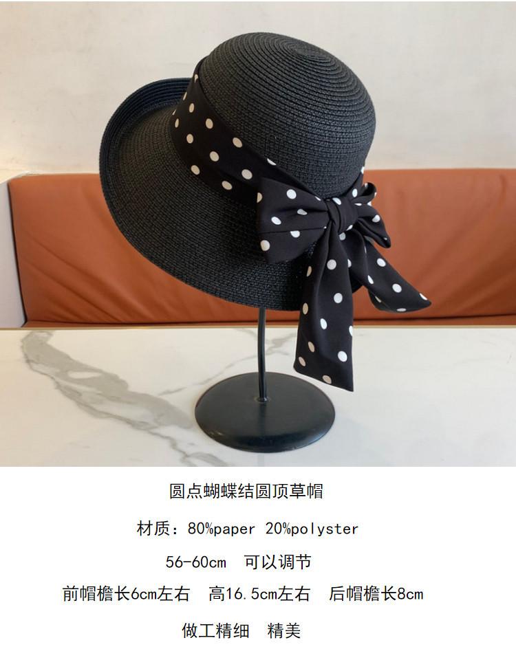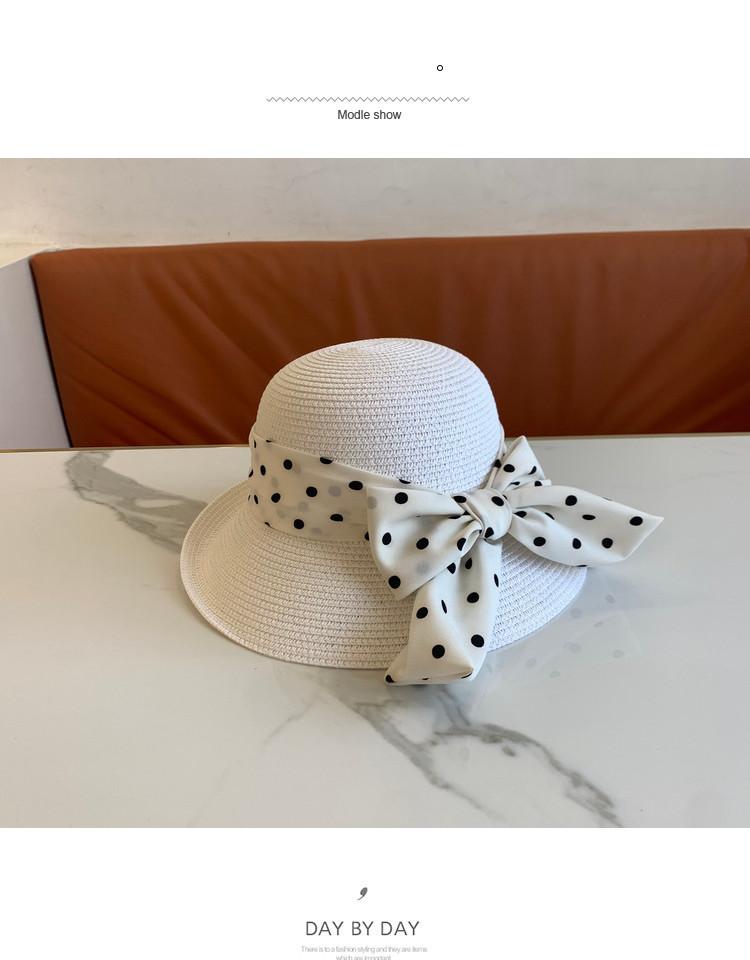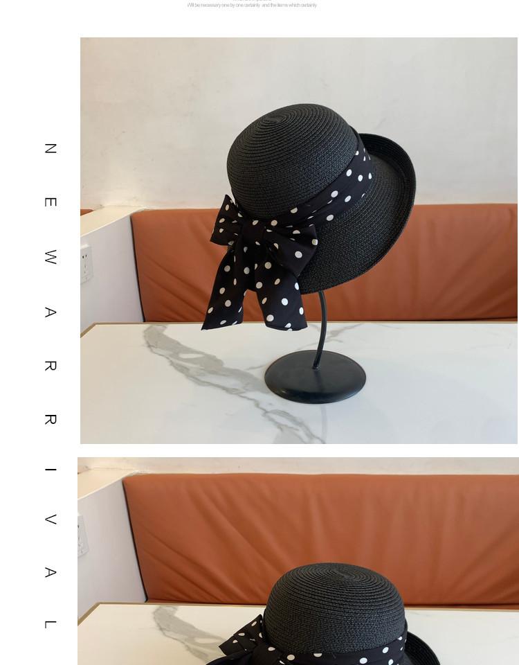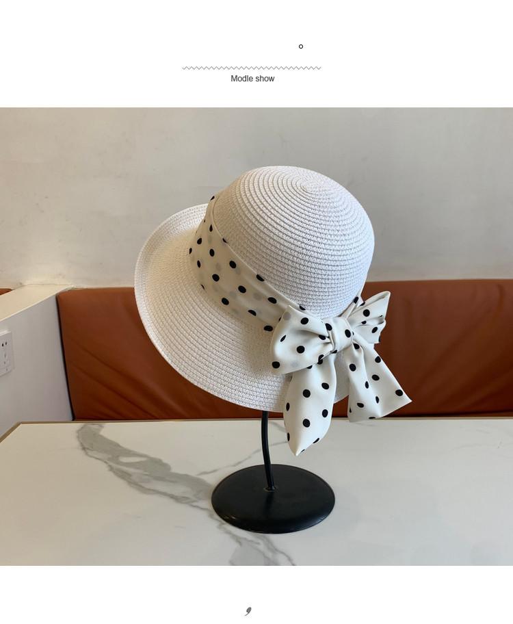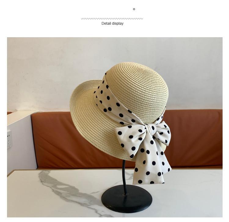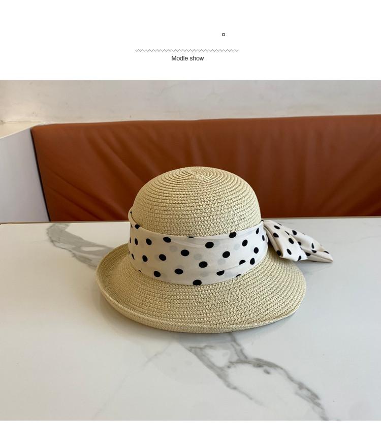 Sombrero de Paja para Mujer Versátil Moda Casual Domo Sombrero Protector Solar Cinta de Lunares Nuevo Verano Sombrero de Playa para Viaje
