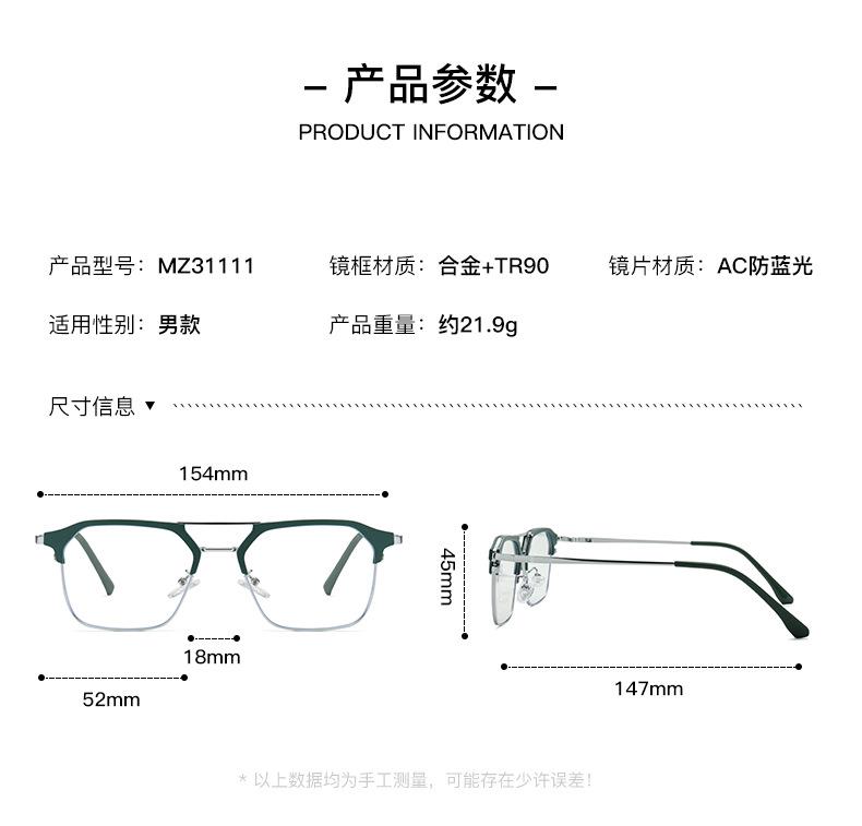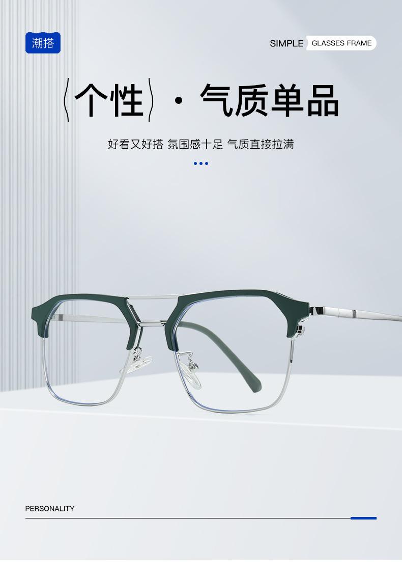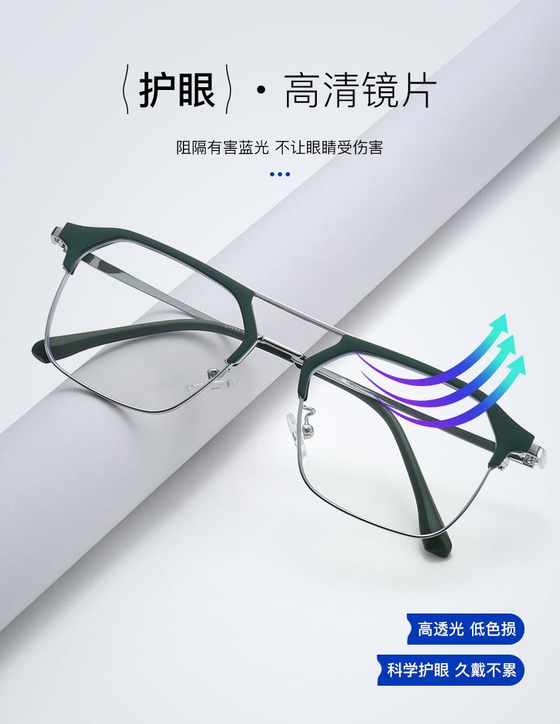 Nuevos Lentes Casuales de Negocios con Montura para Cejas, Lentes Anti-luz Azul, Metal de Doble Puente, Montura para Lentes para Miopía para Hombre con Sentido Avanzado, Montura para Lentes para Mujer