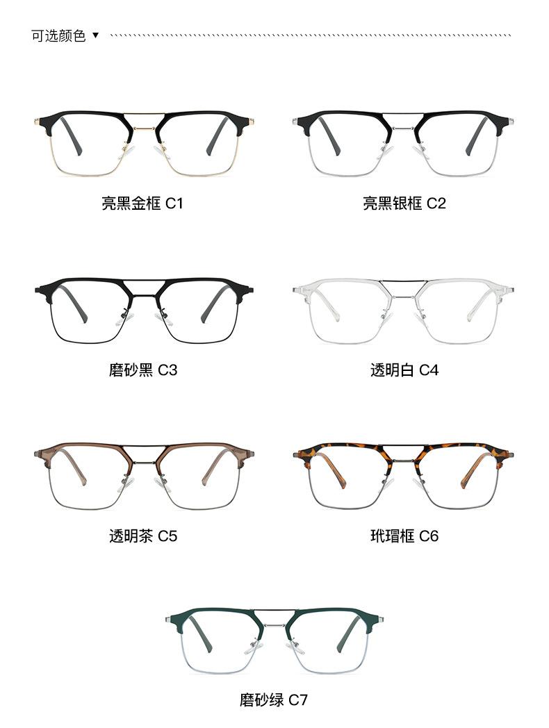 Bright black gold frame C1, Bright Black Silver Frame C2, matte black C3, clear C4, Transparent Tea C5, Hawksb...