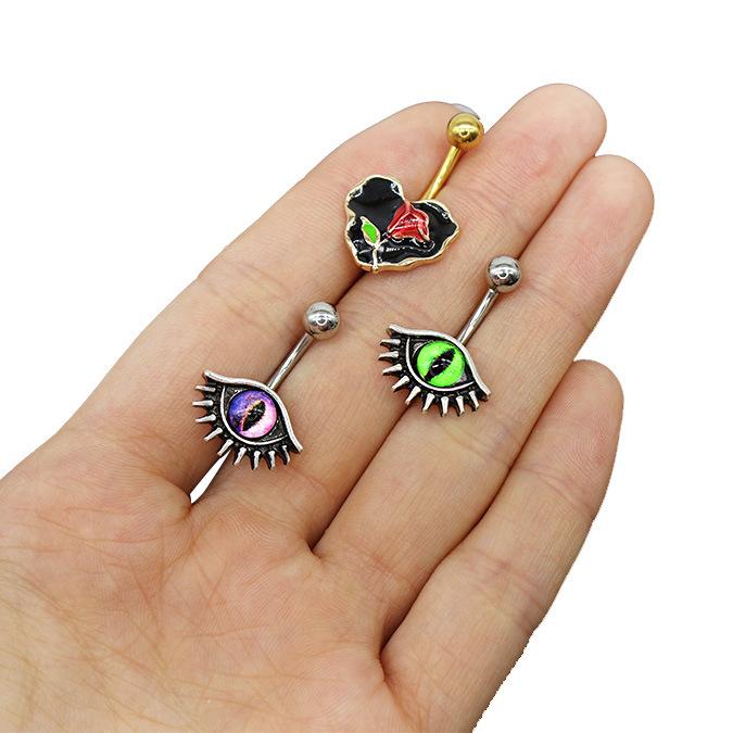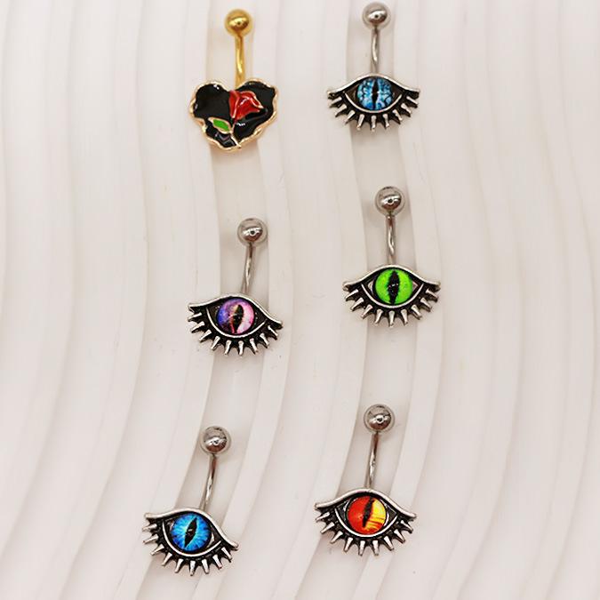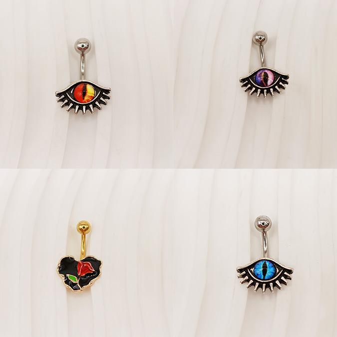 Anillo de ombligo con forma de ojo de buey de diablo transfronterizo europeo y americano de Gaibei, anillo de ombligo con perforación, uña de ombligo, uña de ombligo con rosa, joyería para piercing de ombligo